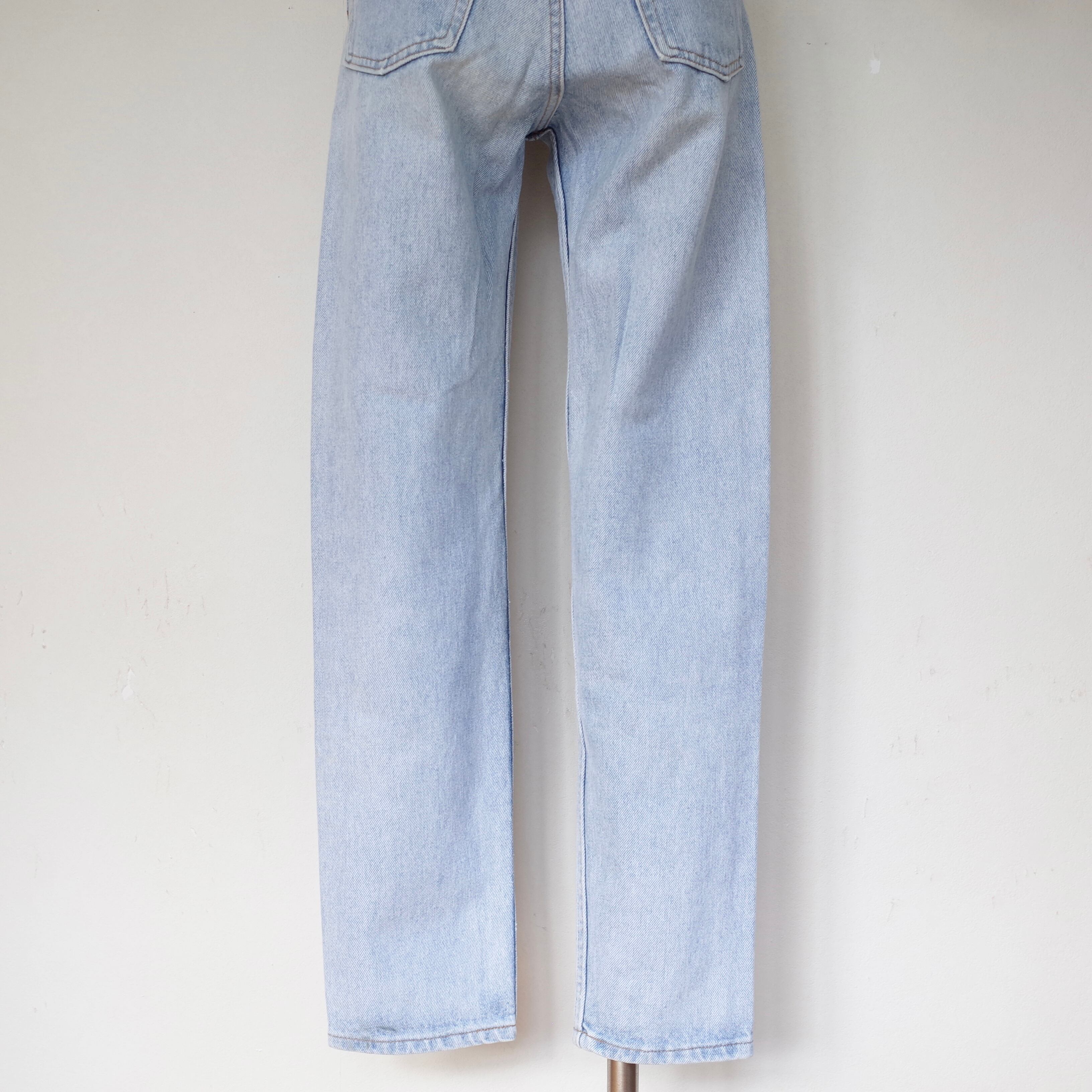 90年代アメリカ製Levi's610-0217です。ジッパーフライのハイウエストジーンズ。股上が深く、ヒップにゆとりを持たせ、裾に向かってテーパードした綺麗なシルエットの一枚。履き込まれた薄いブルーのパンツです。