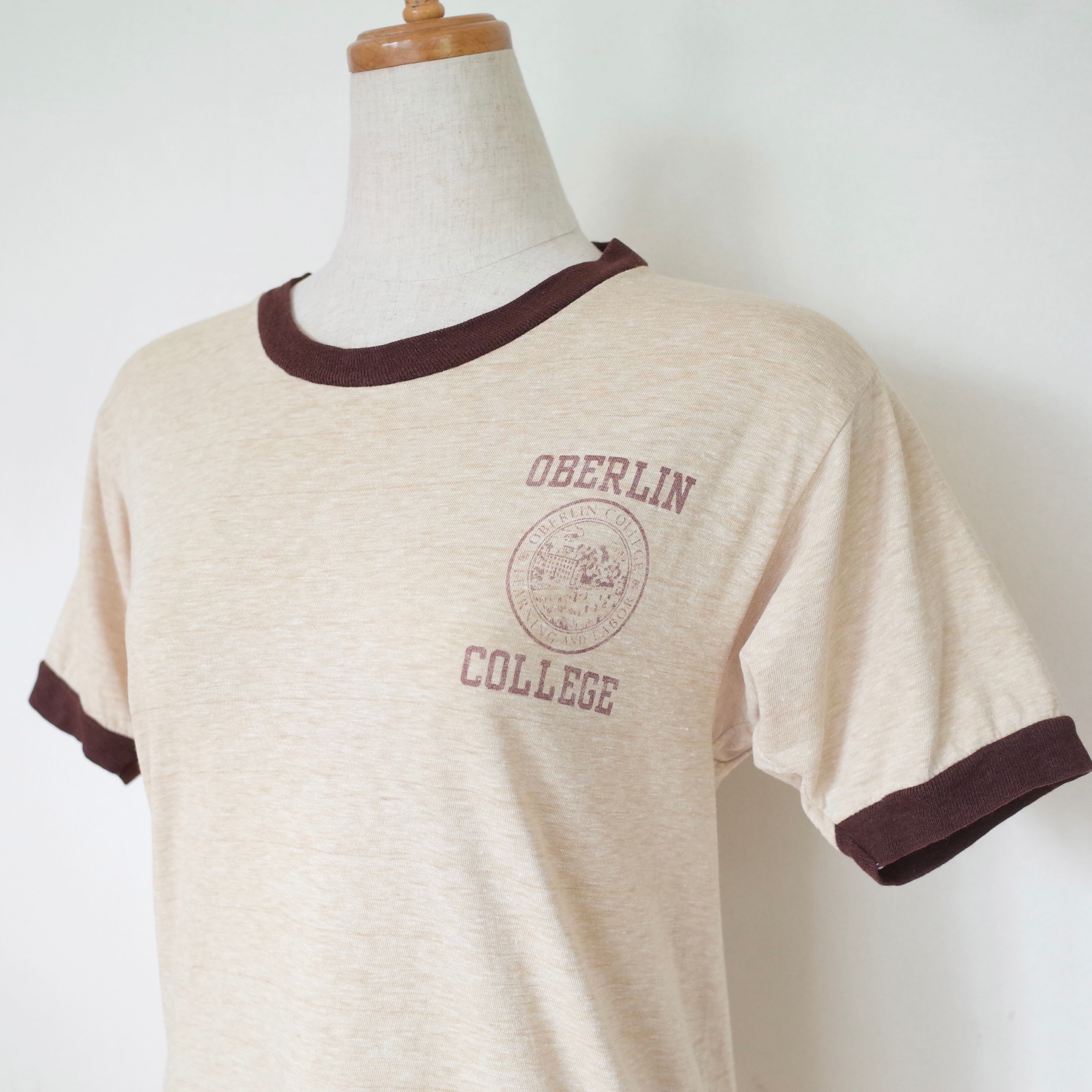 ヴィンテージのカレッジTシャツ。ベージュボディにブラウンのトリムがgoodな配色◎