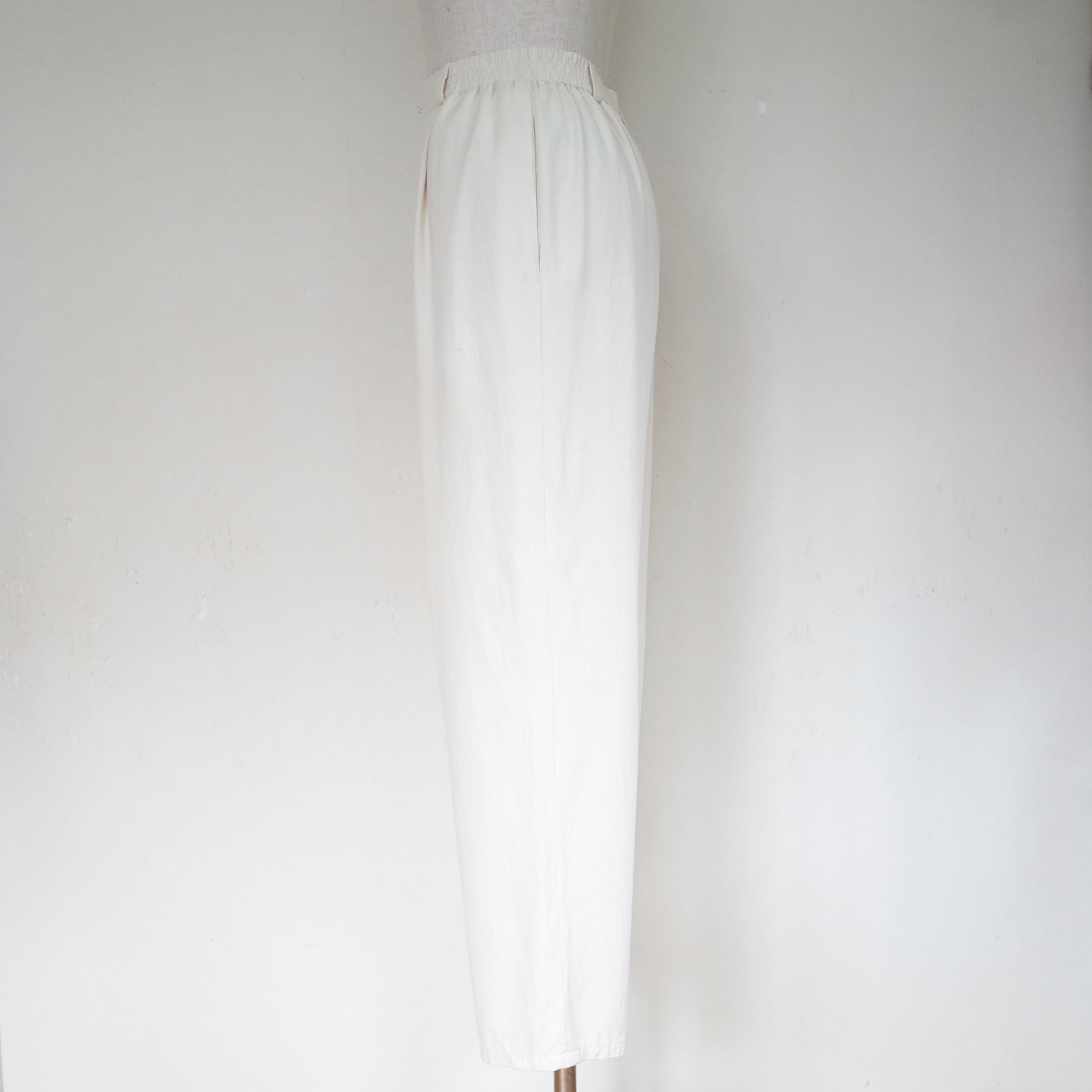 Liz claibornのシルクイージーパンツ。シルク100%ですが、リネンのような凹凸のあるしっかりとした素材感。ポリエステルのイージーパンツよりも涼しく、ナチュラルな雰囲気です。柄のシャツと合わせたり、Tシャツでも◎楽ちんですが、ちゃんとして見えるパンツです。