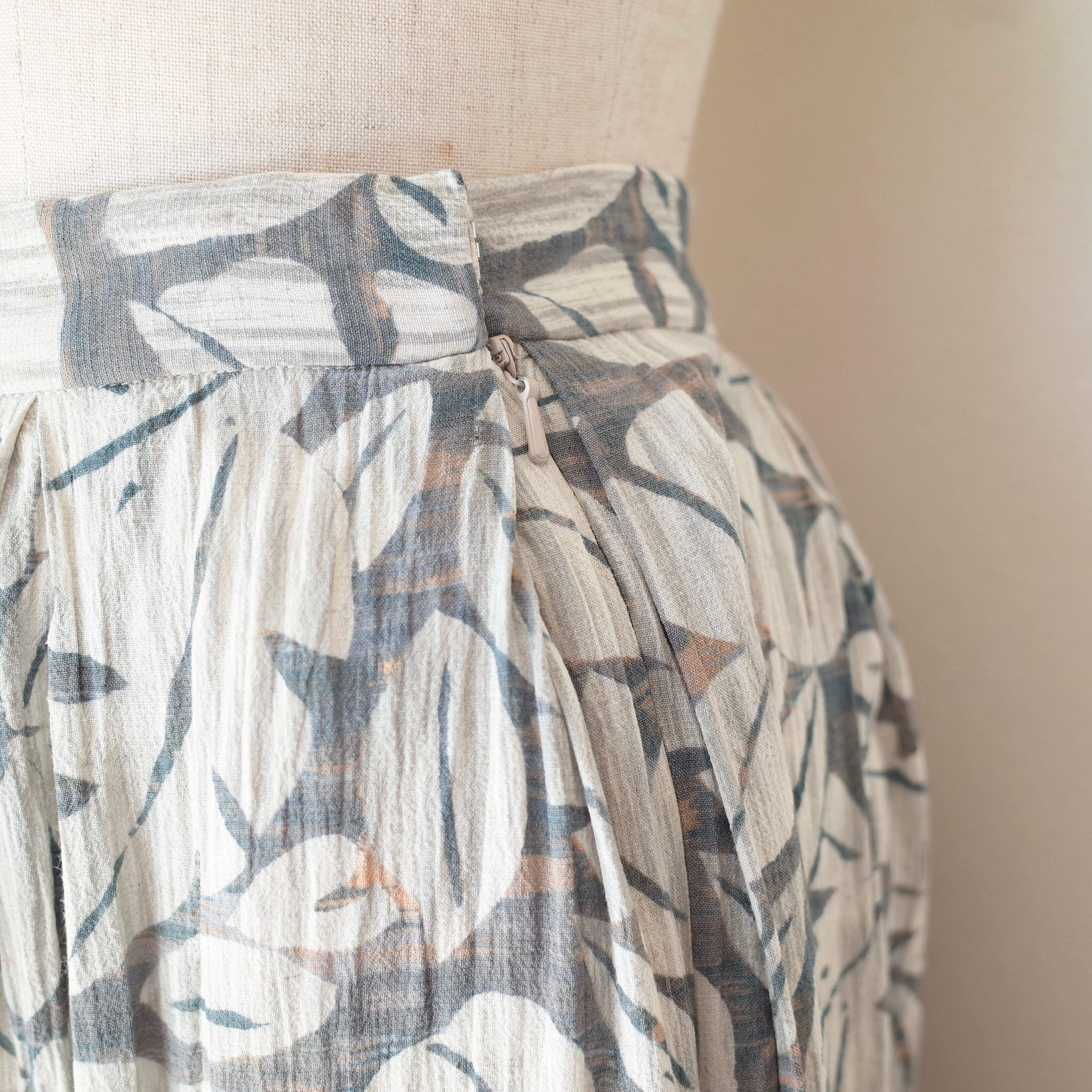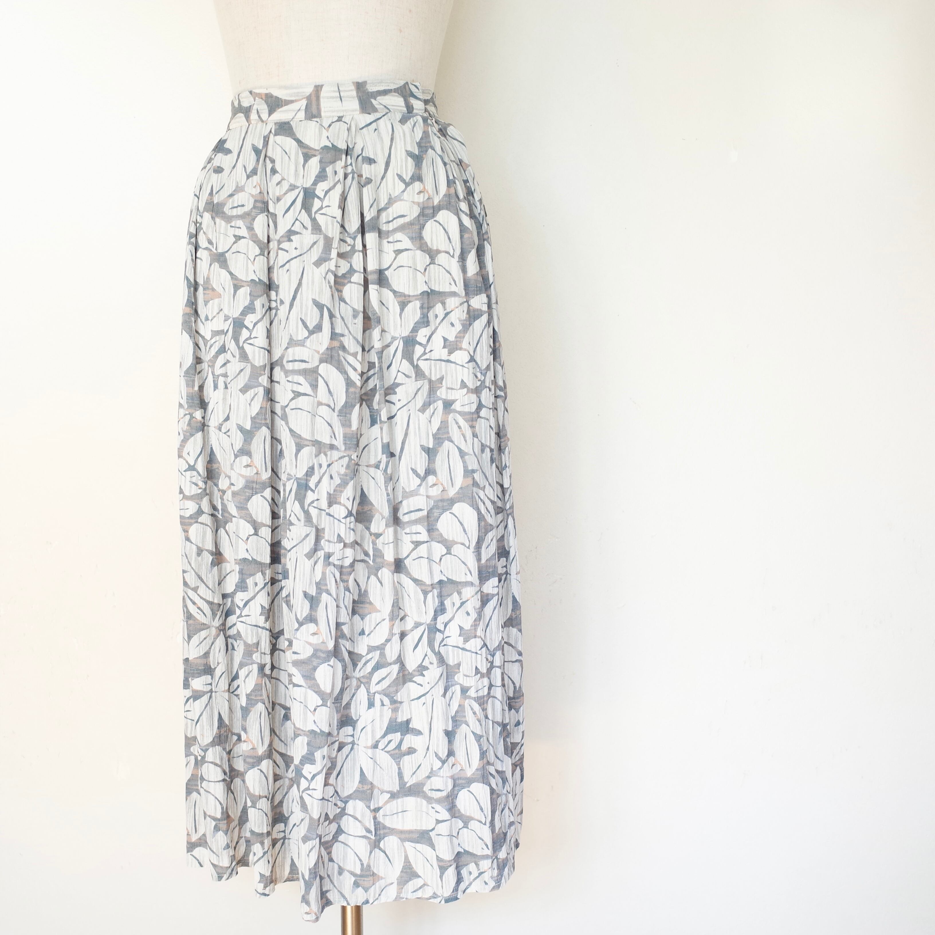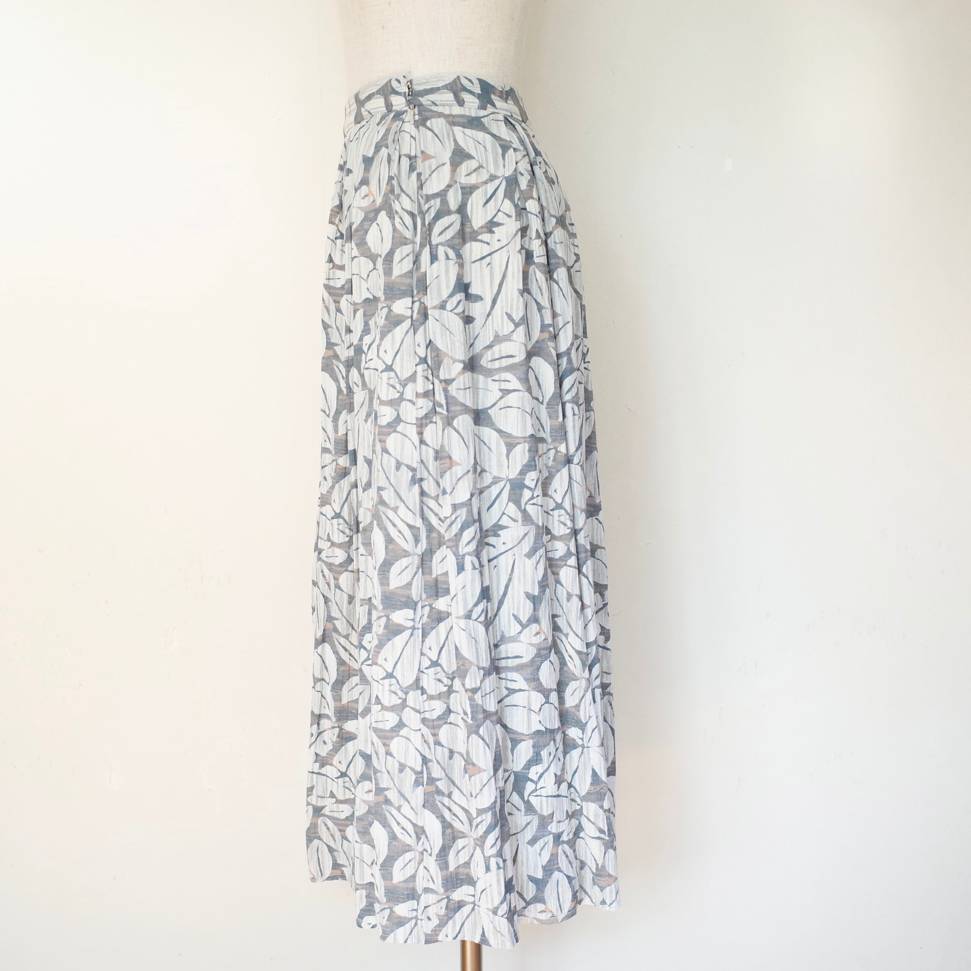 JH Collectiblesのボタニカル柄ロングスカート。リネン混のレーヨン素材でザラっとした中にも軽やかさが引き立つ透け感のある素材感。シックな配色のボタニカルプリントも◎裏地付きです。
