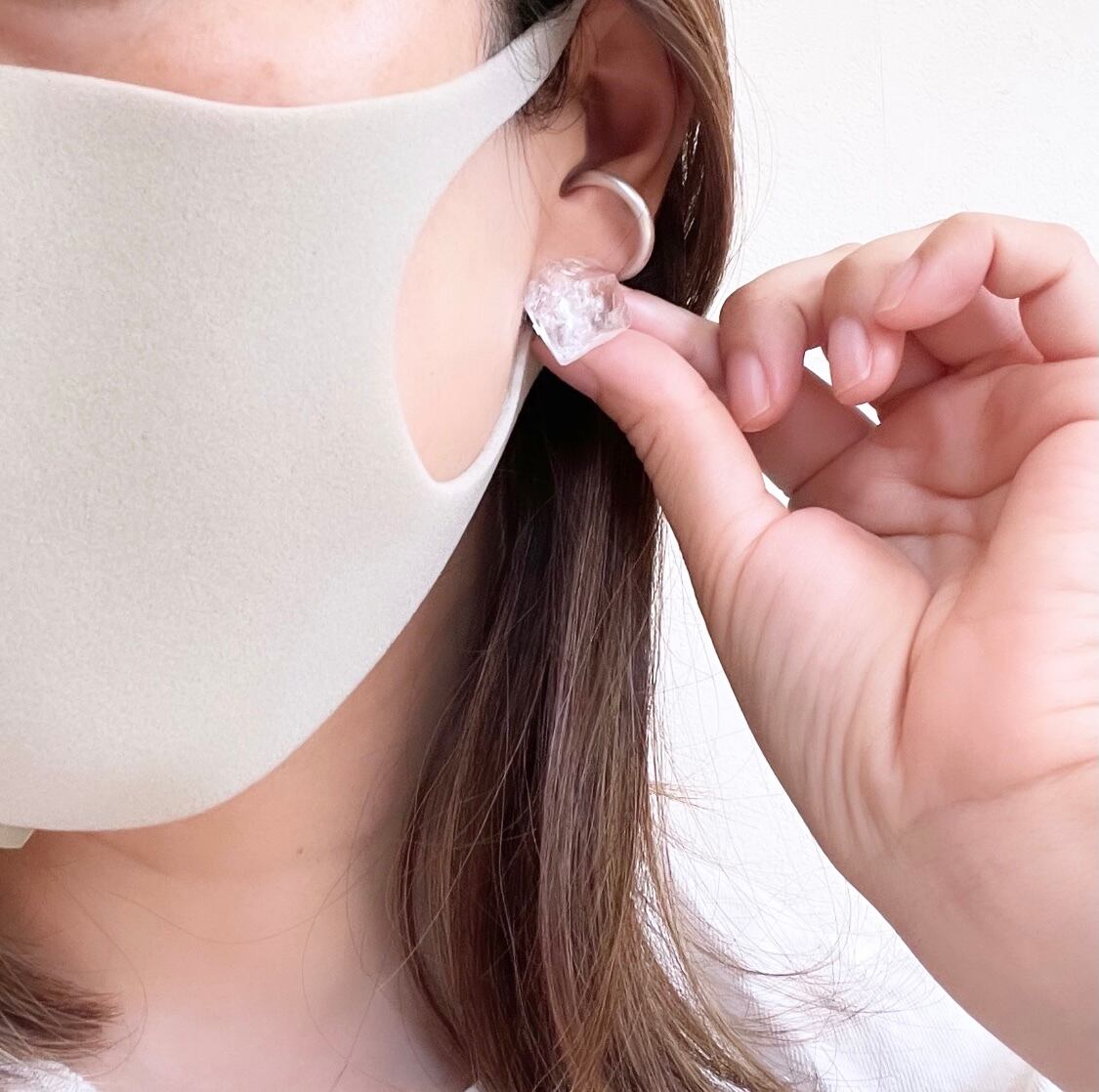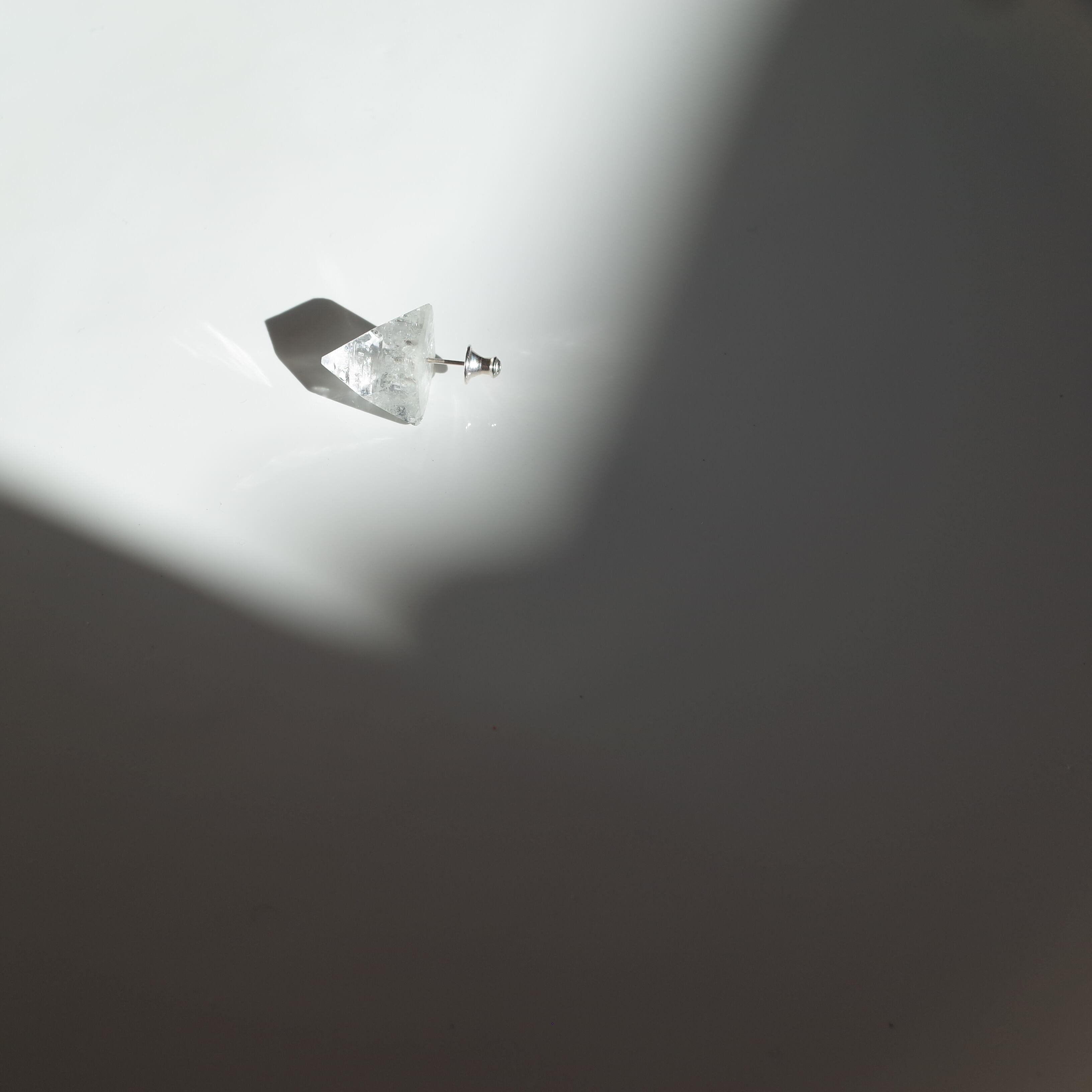 天然石を使用したherのピアスです。大きめの先が尖ったアポフィライトが存在感あります。こちらは片耳ピアスとなります。