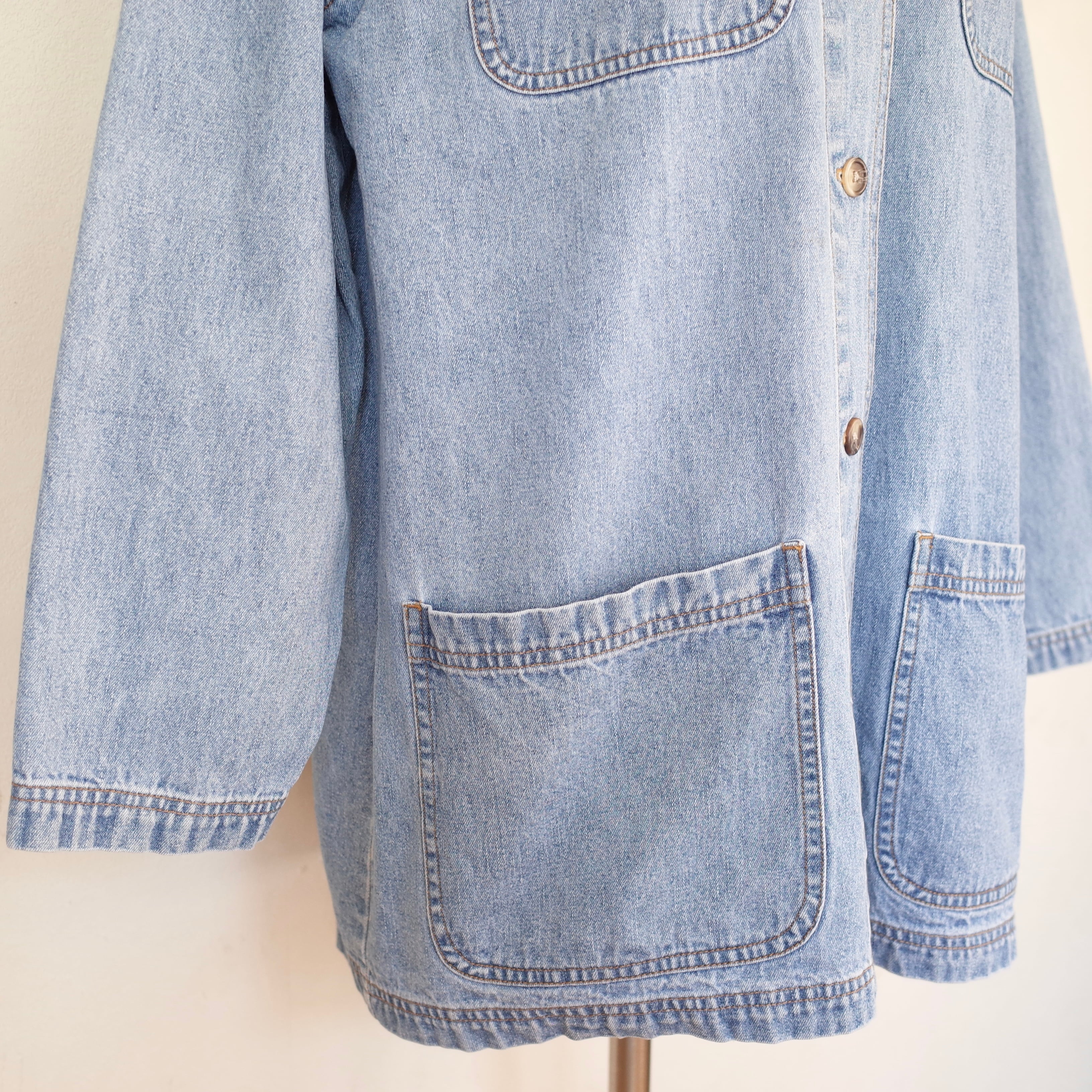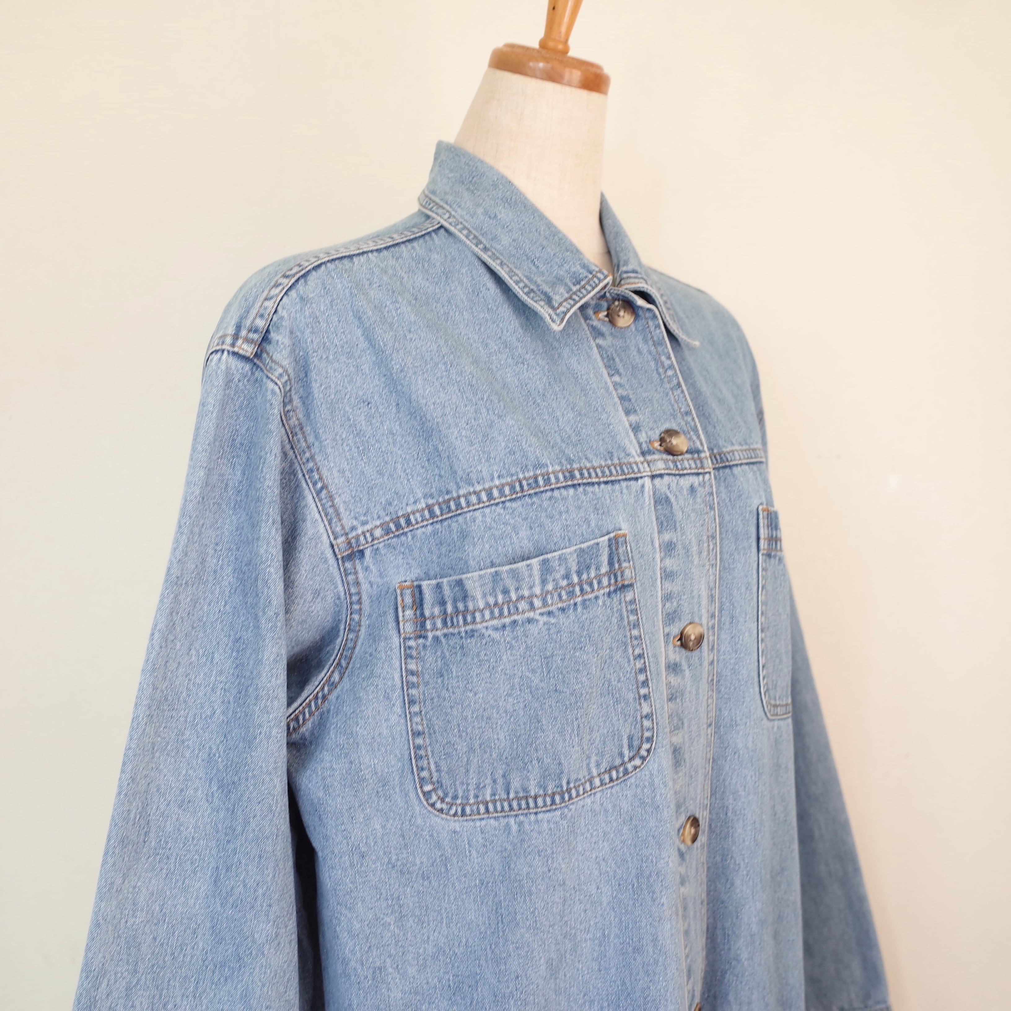 デニムのカバーオール。ゆったり羽織れるサイズ感なので、薄手のものだけでなくスウェットやニットなどインナーを調節することで様々な期間に着用できるのも魅力のひとつです。ワンピースやロングスカートとのスタイリングも◎