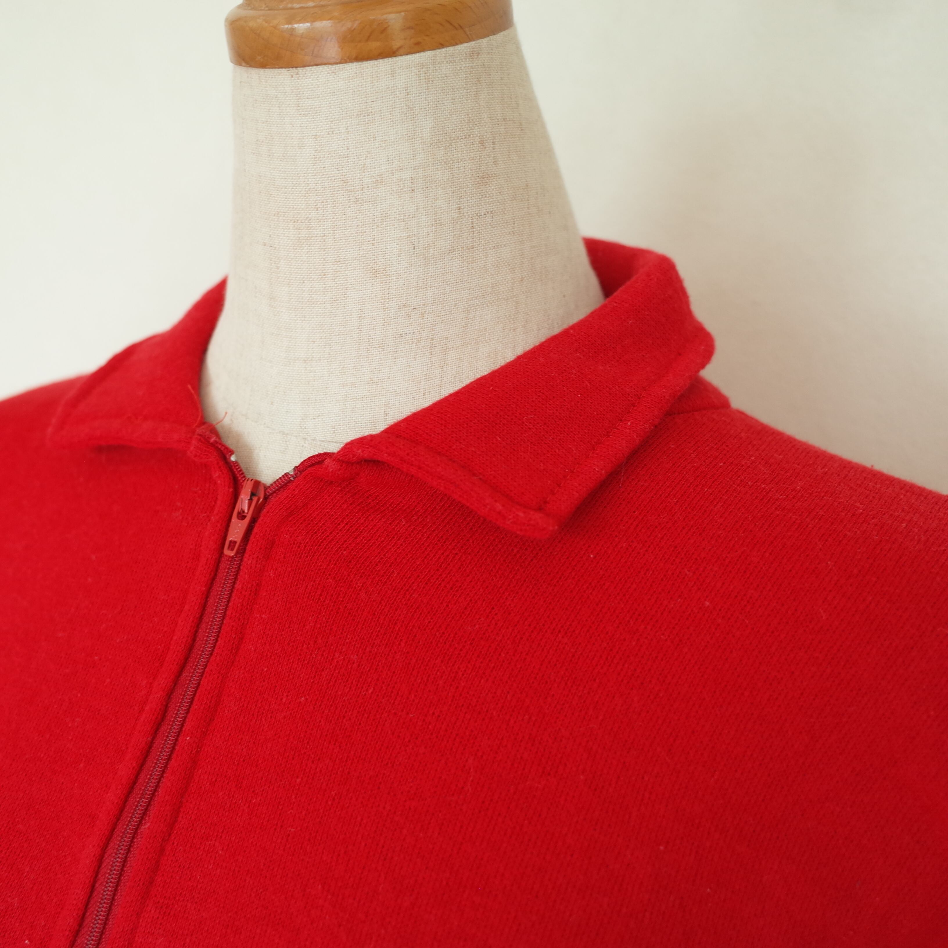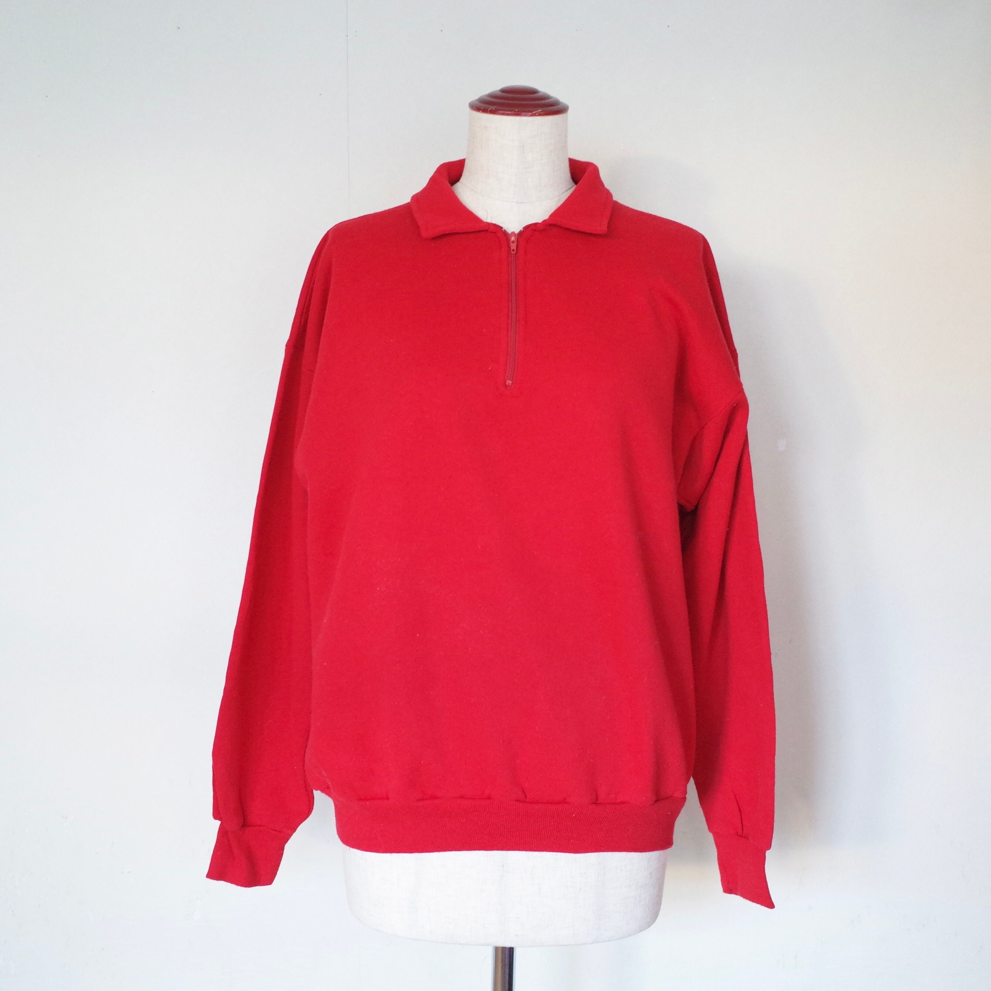 アメリカ製のハーフジップスウェット。ボディは80年代後期のTULTEXです。オールド感漂うハーフジップは最近人気のカタチ。パキッとした赤で、カラーコーディネートを楽しんで頂ける一着です。