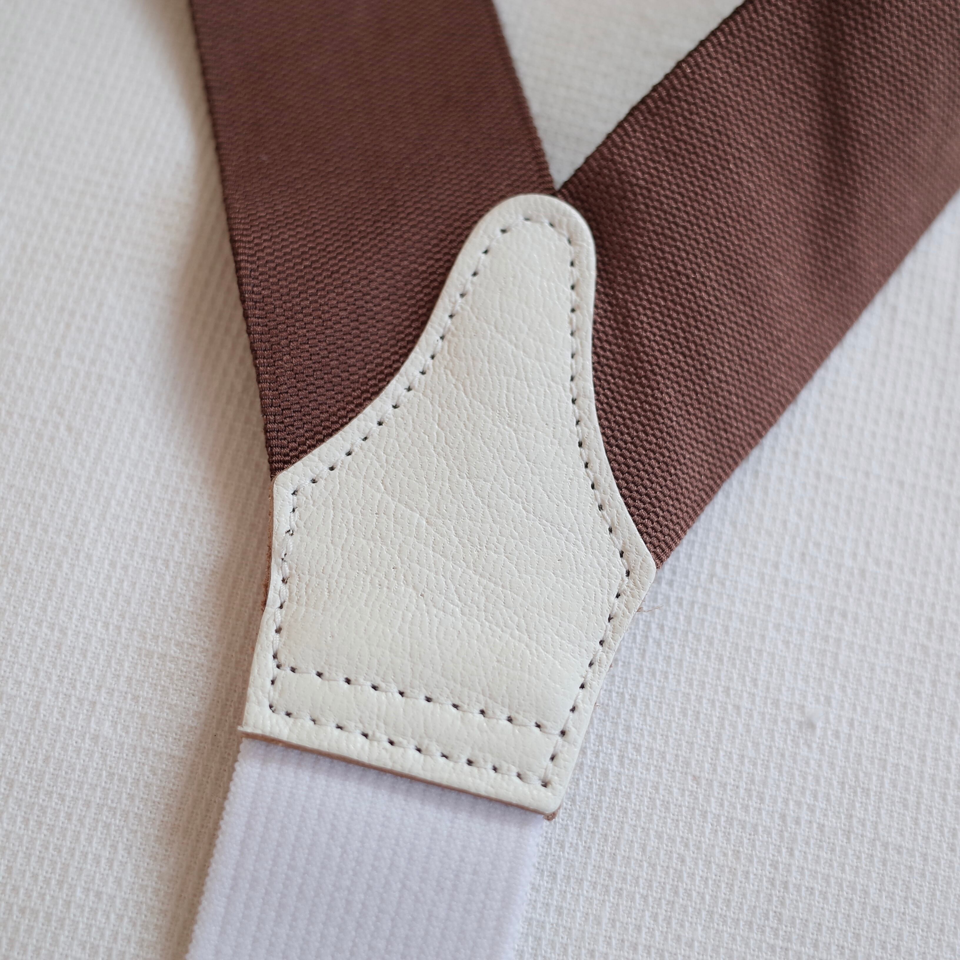 アルバート・サンストンは1820年創業のイギリス老舗メーカー。国王、大統領、ハリウッドスターをはじめとする世界中のVIPに愛用されています。創業からずっと地元イギリスで熟練の職人たちによって1点1点丁寧に制作されています。大切に継承されてきた伝統的なサスペンダー。ホワイト×ブラウンの配色が◎ボタンで留めるタイプです。
