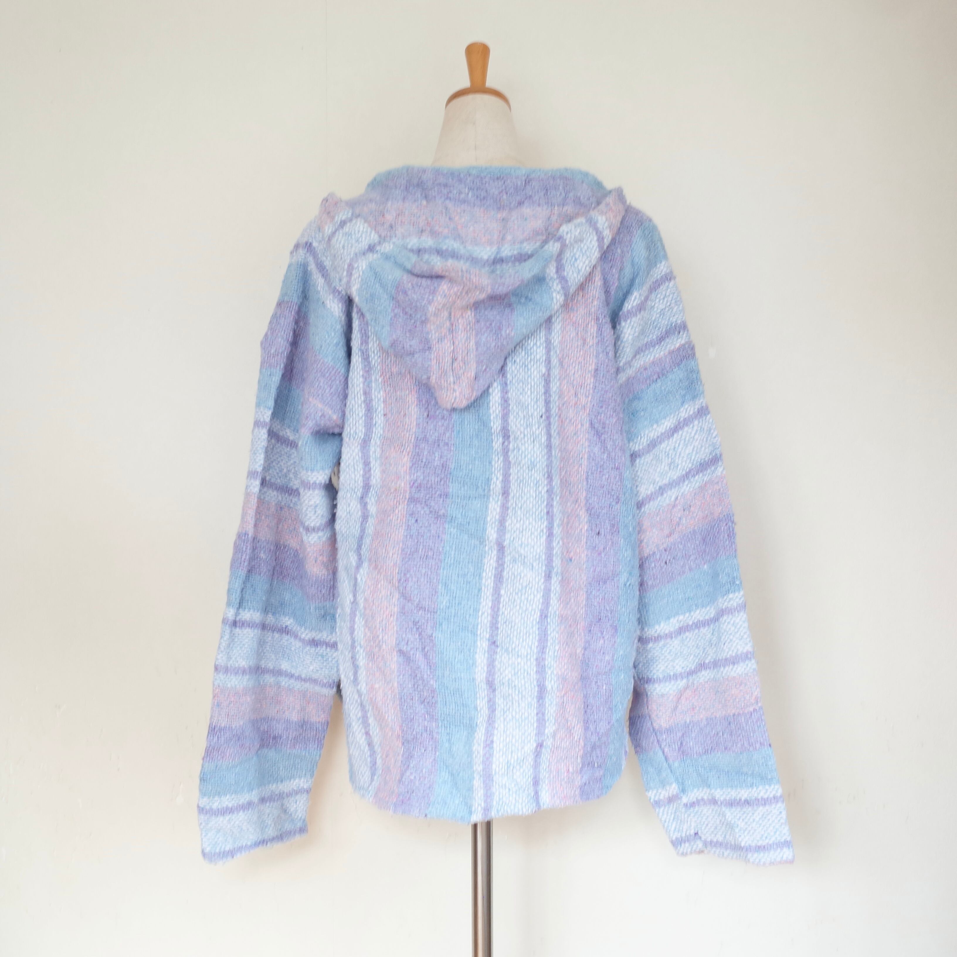 ヒッピー&サーフのアイコン、メキシカンパーカー。最近ではストリートブランドやハイブランドからも出ています。シャツをインしたり、コートのインナーに仕込めば、程よい抜け感の演出も◎かわいい配色で、ユニセックスで着用頂けるサイズ感です。