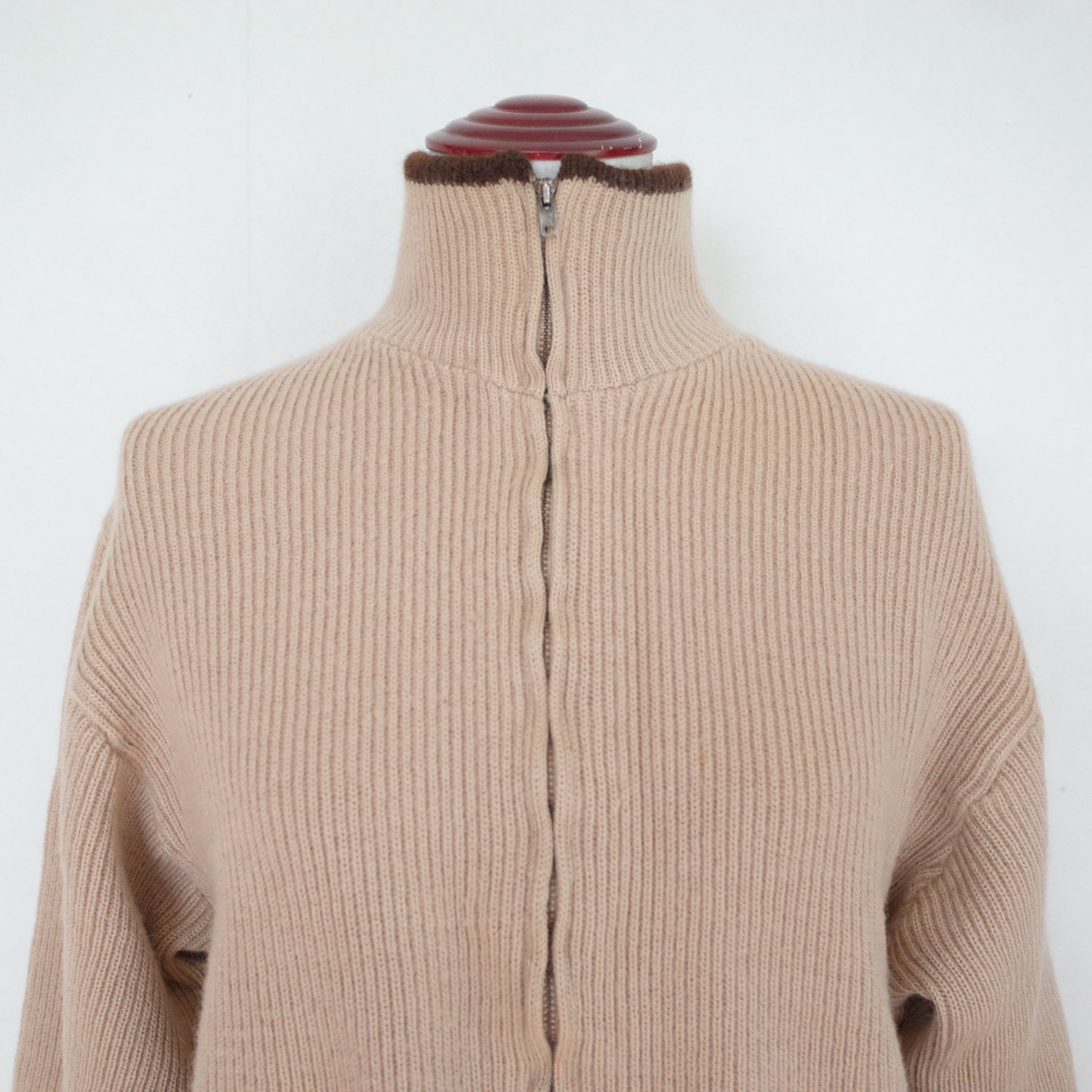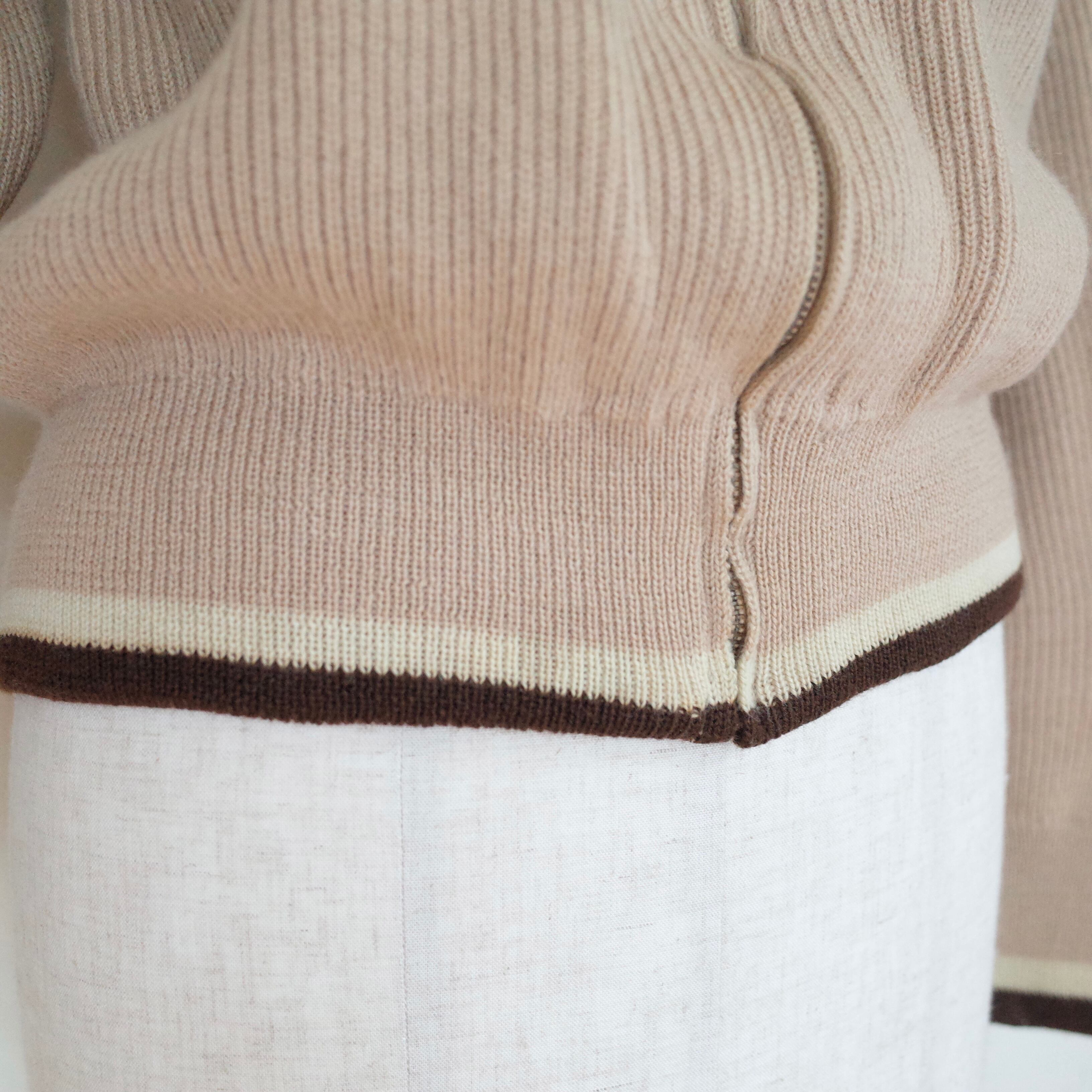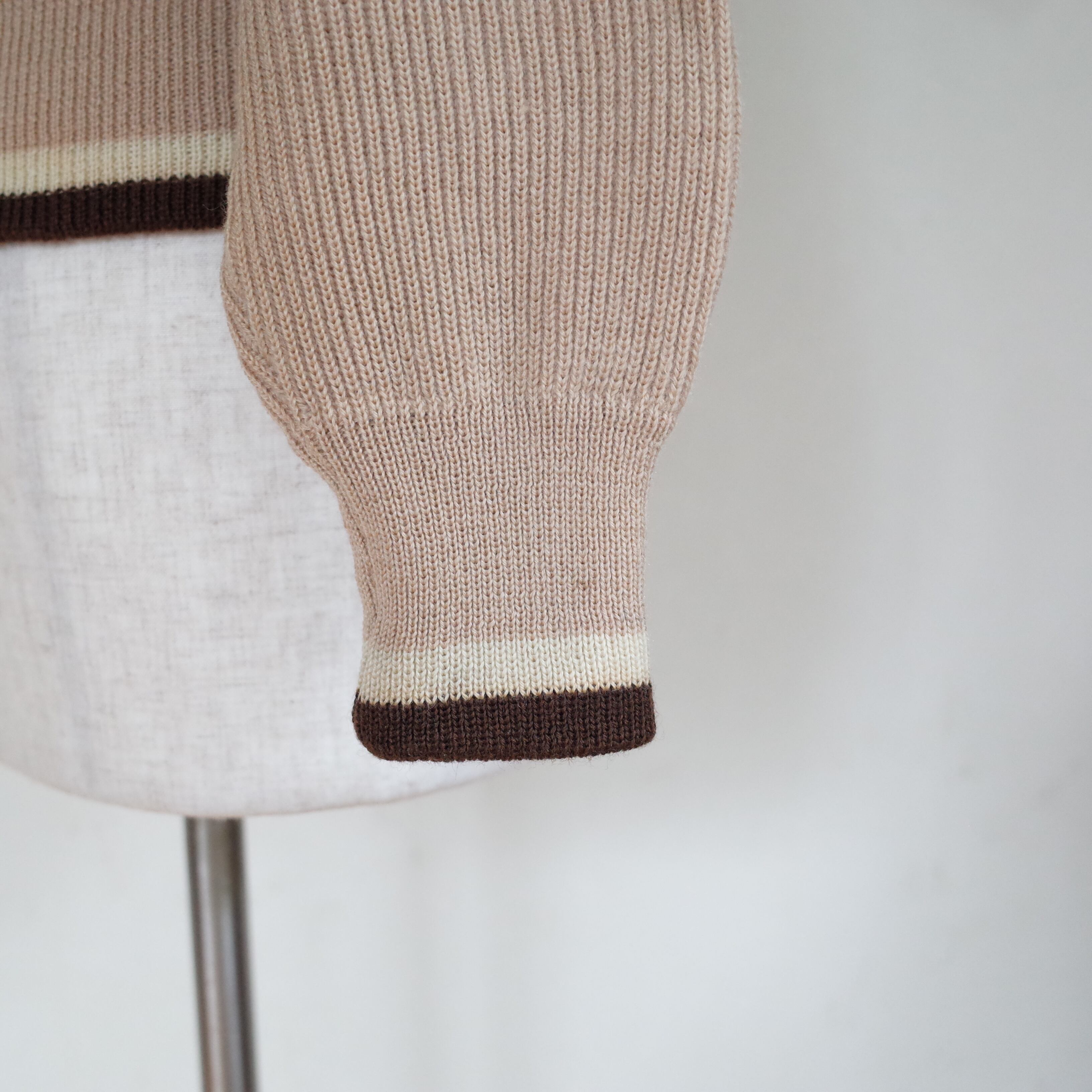 50-60年代製アバランチのヴィンテージジップアップセーターです。しっかり目の詰まった、肉厚のリブ。ベージュのボディにグラデーションラインが全体を締めてくれます。カタチや雰囲気が抜群な一着です。