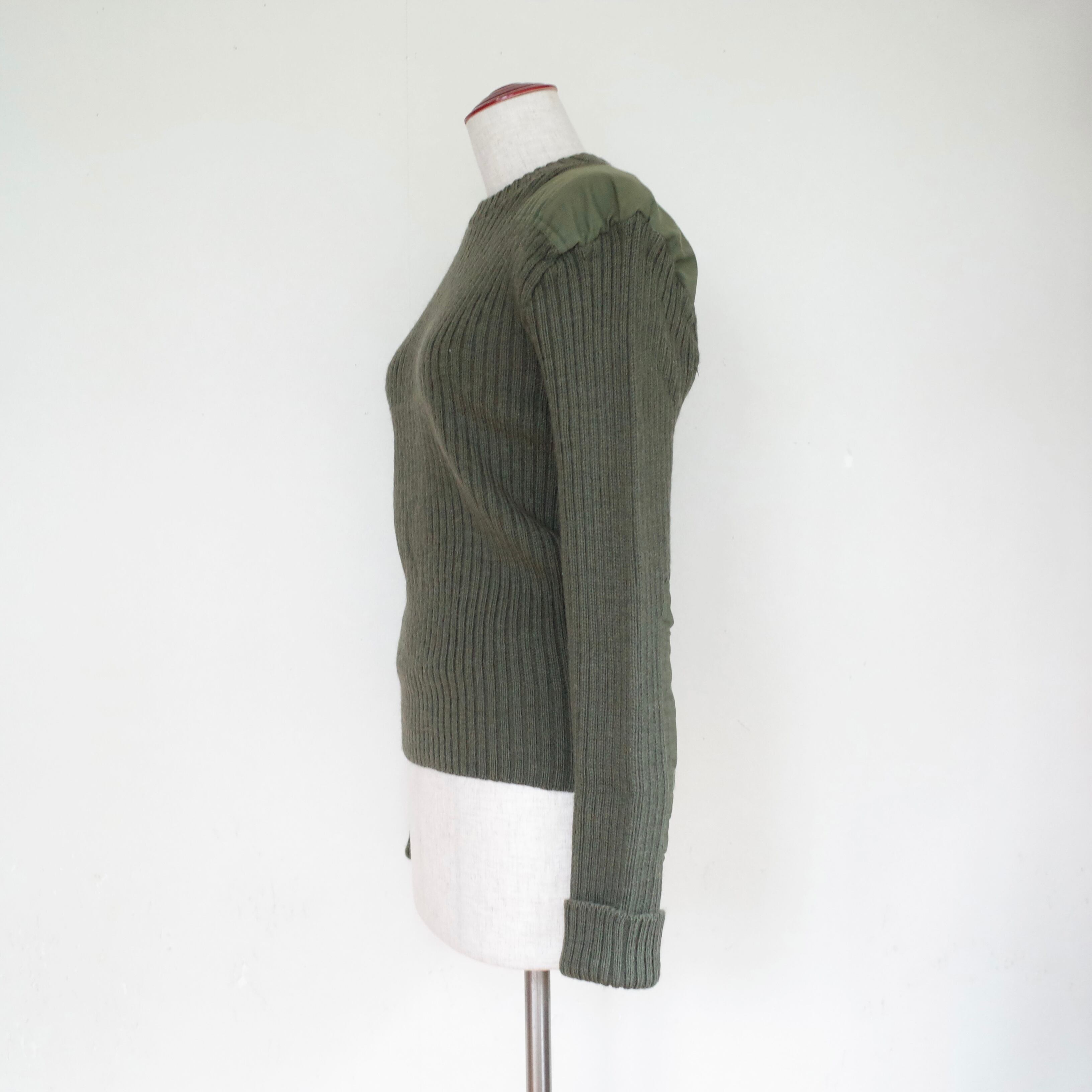 イギリス軍のコマンドセーターです。体にフィットするような太めのリブ。肩と肘には補強のための別生地があしらわれているのも特徴のひとつです。機能性を重視した軍物ですが、ロングスカートやワイドパンツと合わせたコーディネートも◎
