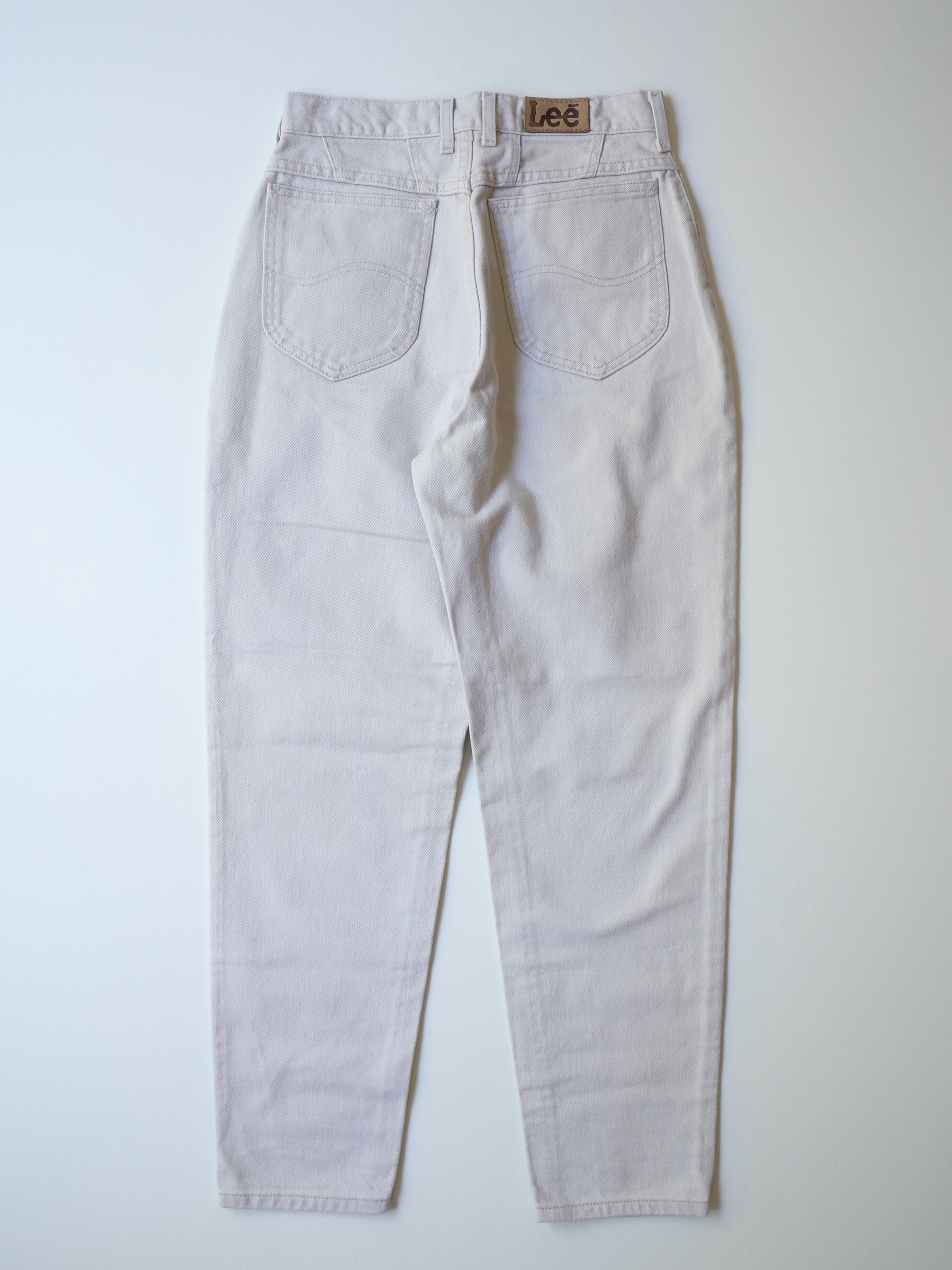80〜90年代アメリカ製Leeのテーパードカラーデニムパンツです。足長に見える綺麗なテーパードシルエット。ライトなグレージュの色味も味のある一本です。Leeならではの穏やかな曲線を描いたバックポケットがシルエットの綺麗さをより際立たせてくれます。Levi'sとはまたひと味違ったLeeのカラーデニムもワードローブのバリエーションに取り入れたい一着です。