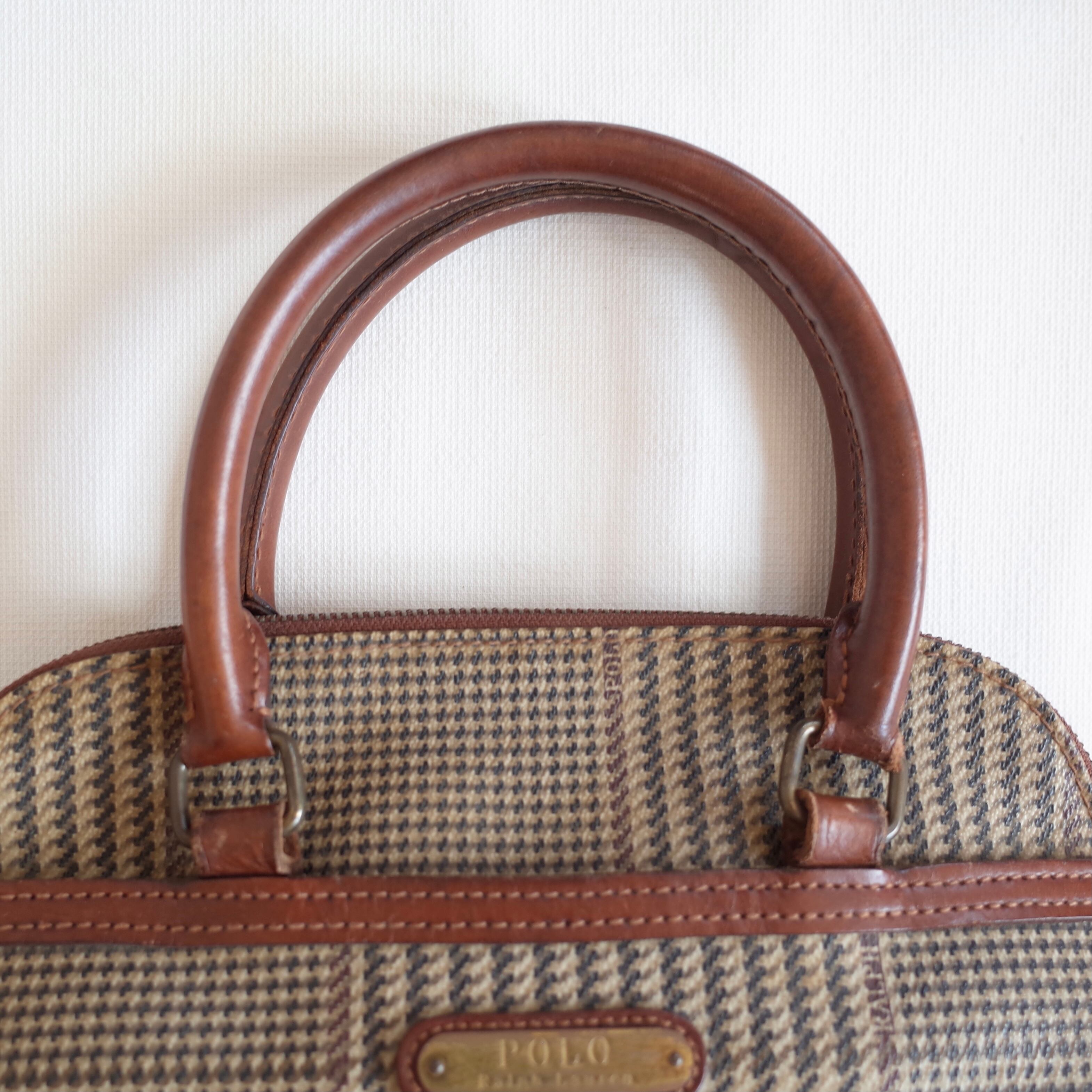 80年代頃のPolo Ralph Laurenの千鳥格子柄バッグです。調節可能なショルダー付きなので、肩からかけてショルダーバッグとしてもお使い頂けます。