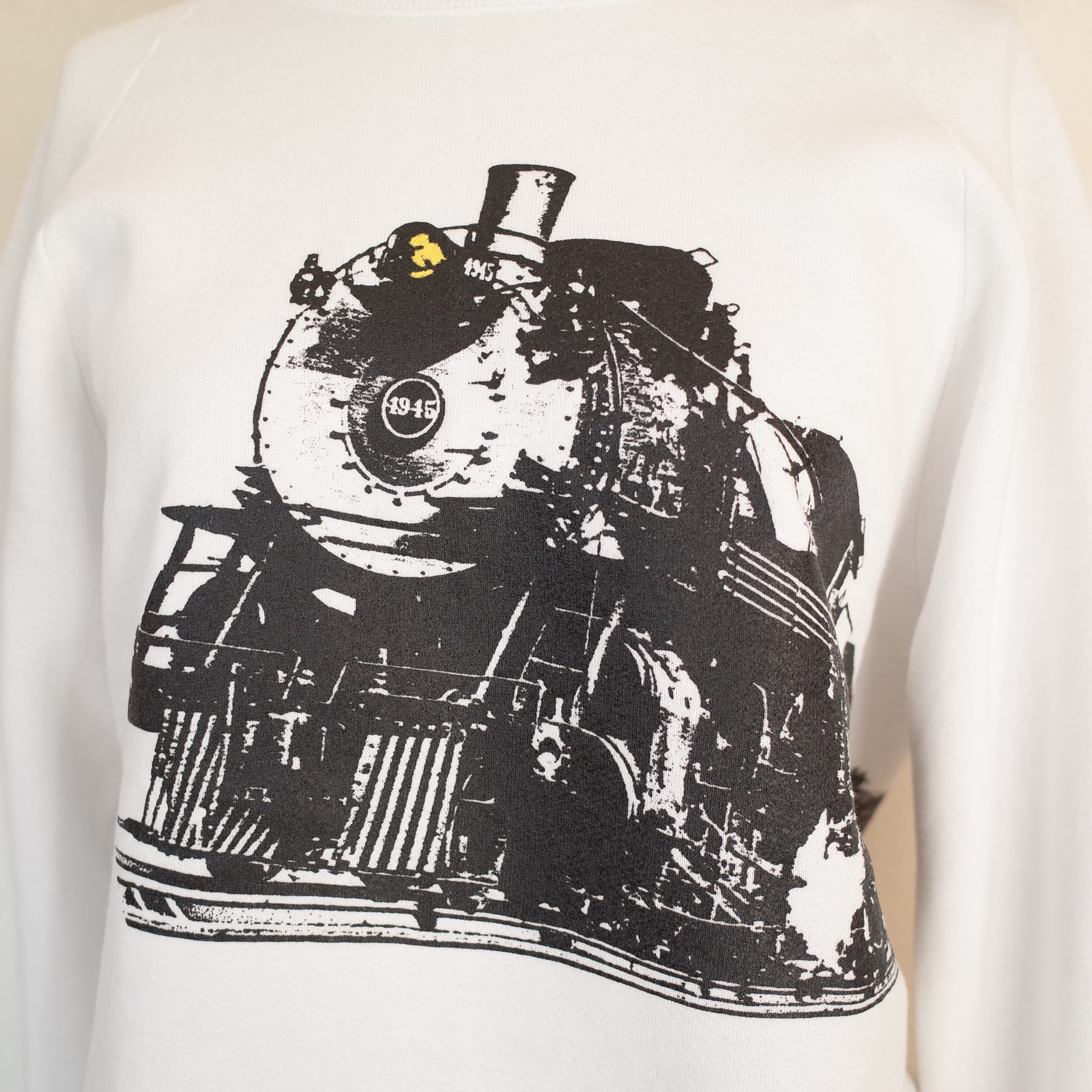 90年代アメリカ製FRUITS OF THE LOOMのスウェット。両面プリントでフロントには汽車の前側のイラスト。バックには後ろ姿が描かれています。ユニセックスで着用頂けるサイズ感です。