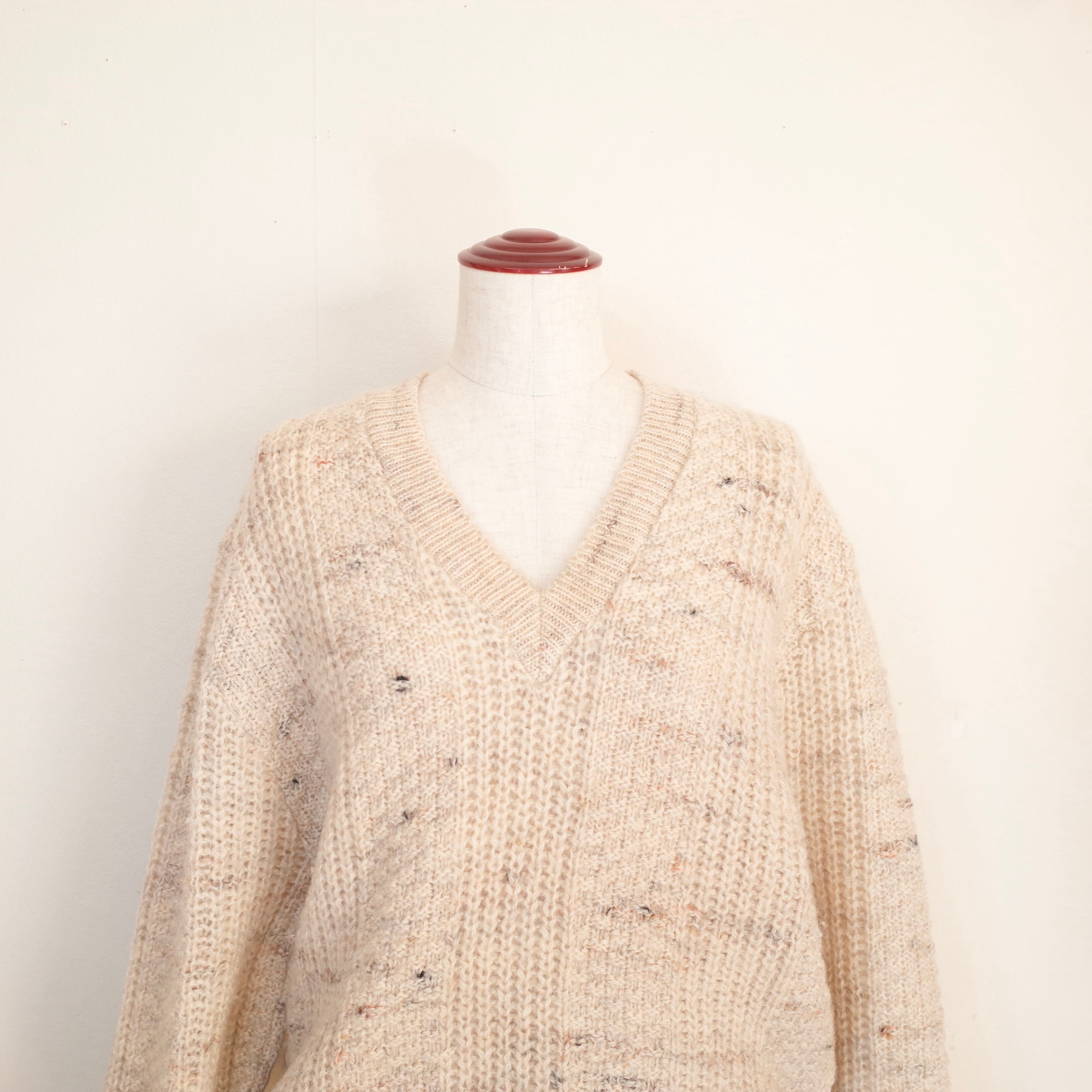 70年代アメリカ製PENDLETONのセーター。深めのVネックがかわいい一着。アイボリー地に所々ブラウンやイエローなどの糸も編み込まれています。年代物のPENDLETONオリジナルは雰囲気がありながらも今っぽさも兼ね備えたアメリカらしいセーター。ユニセックスで着用頂けるサイズです。