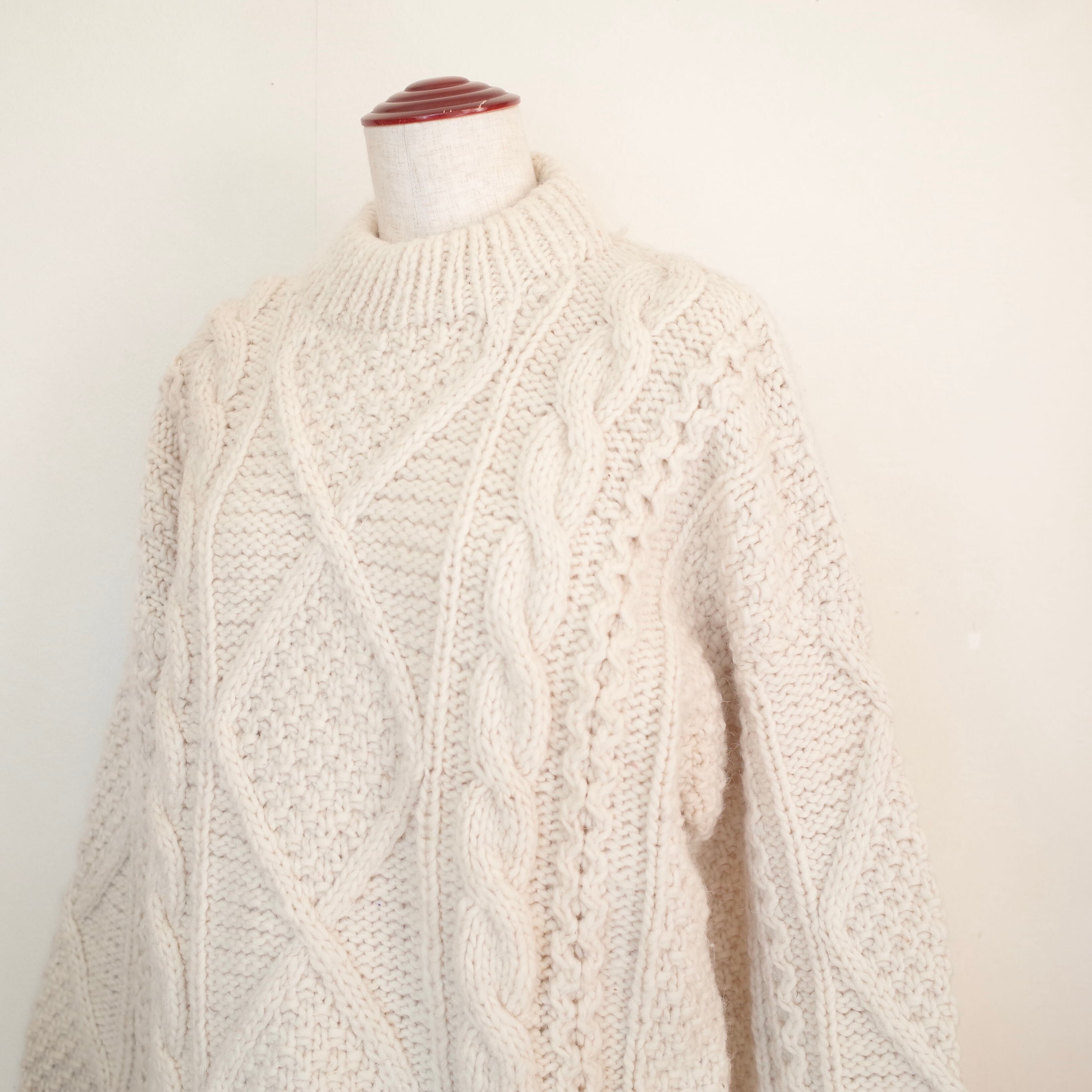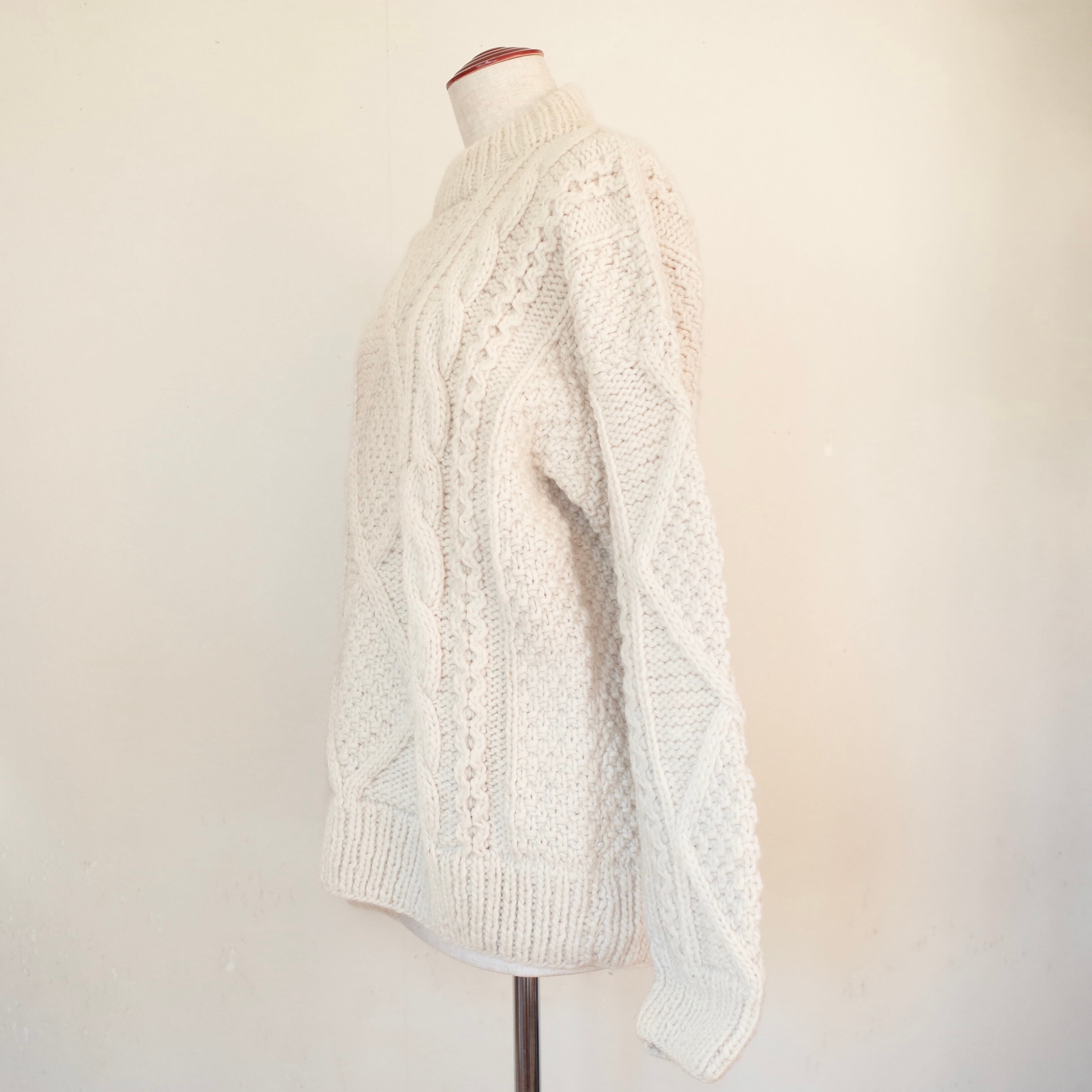ハンドニットのフィッシャーマンセーター。ユニセックスで着用できる程よいオーバーサイズのボリューム感、肩の落ち具合、詰まった襟、そしてケーブル編みのバランスが良い納得の一枚。質の良いウールのものだけをセレクトしています。毎年気分で着方を変えながら長く愛用できる冬定番のニットです。