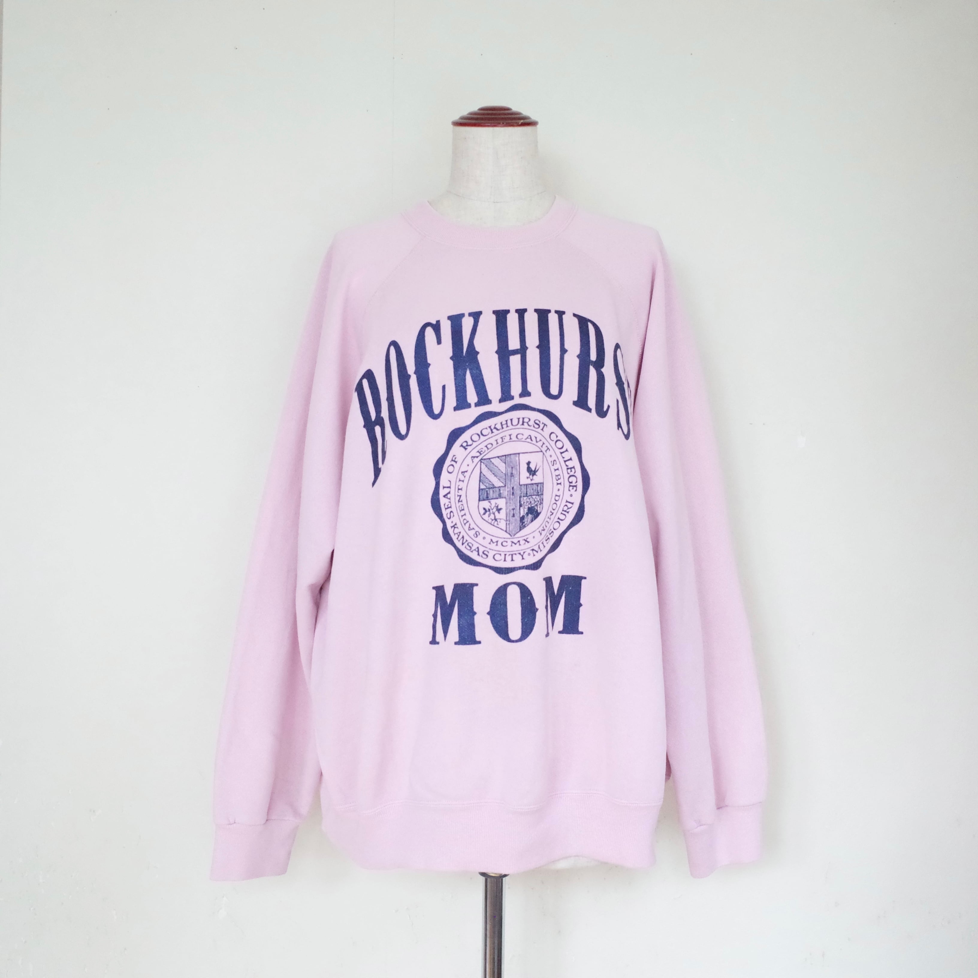 アメリカ・ロックハースト大学のカレッジスウェット。珍しいピンクカラー。ユニセックスで着用出来るサイズ感です。
