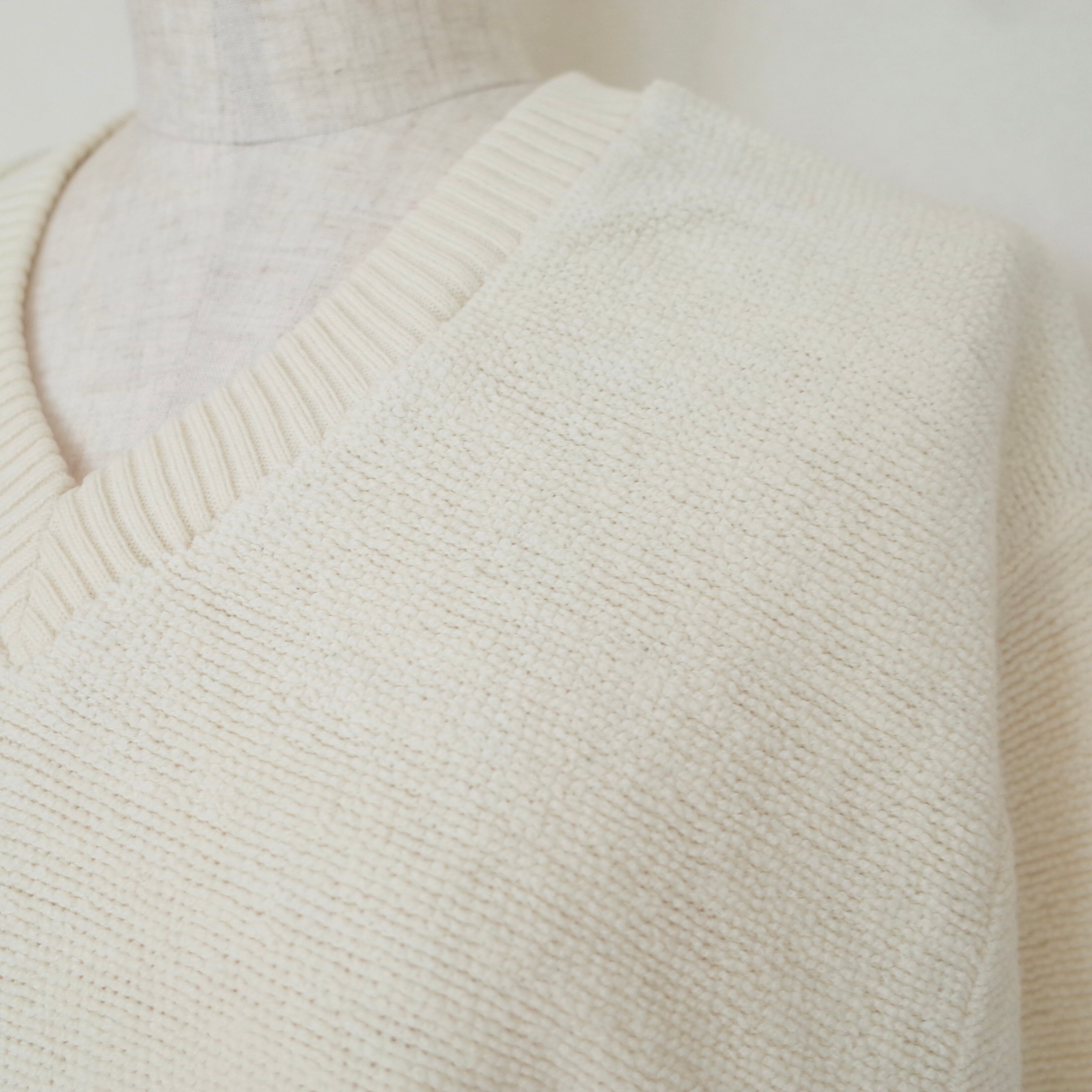 アメリカ製アクリル素材のVネックニット。シンプルなプルオーバータイプで、パイル地のような風合い。さらっとした着心地でウールのチクチク感が苦手な方にもおすすめなアクリルニットです。