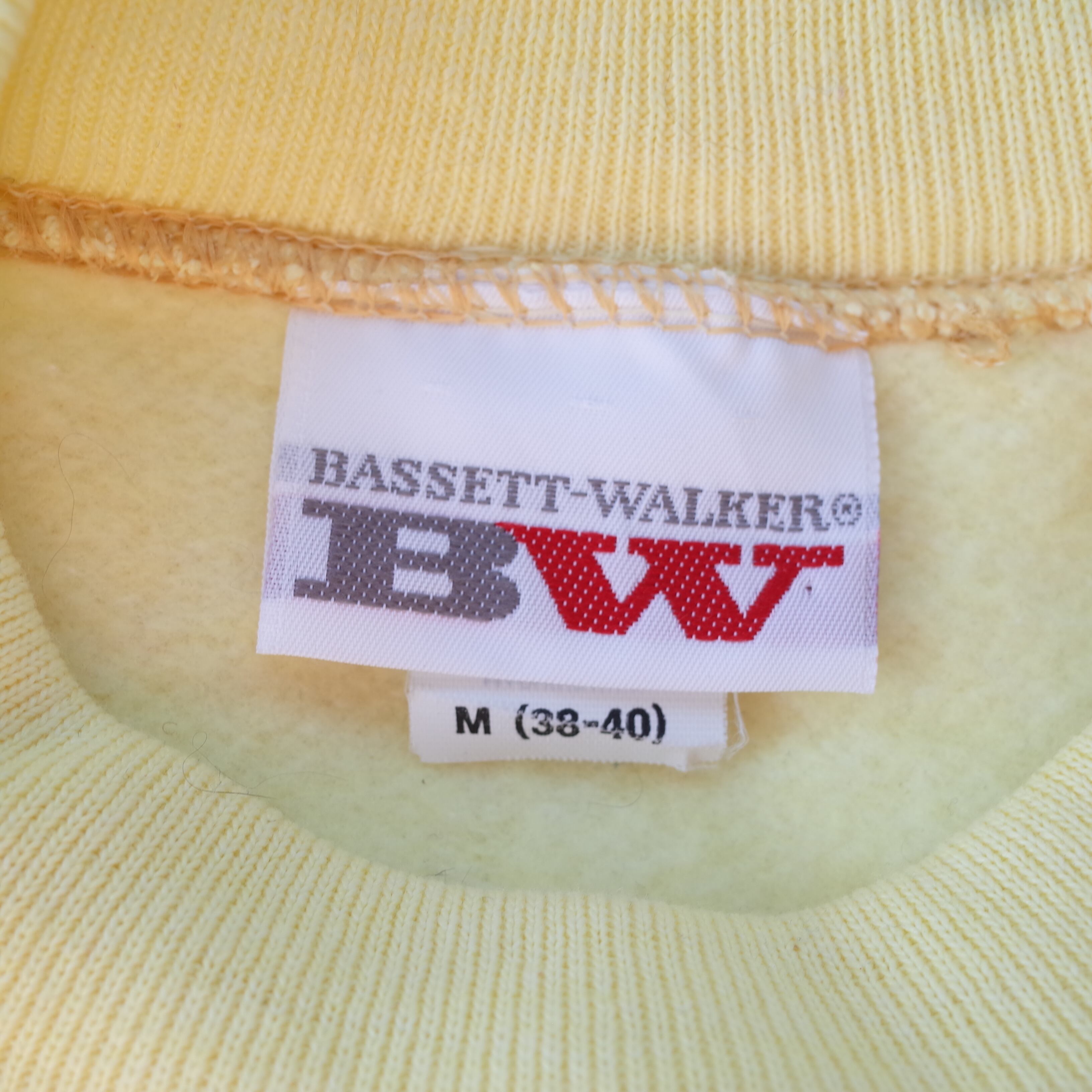 80年代アメリカ製優しいパステルイエローが鮮やかな無地スウェット。ボディはBASSETT-WALKERです。古き良きアメリカらしいカラーの一枚です。
