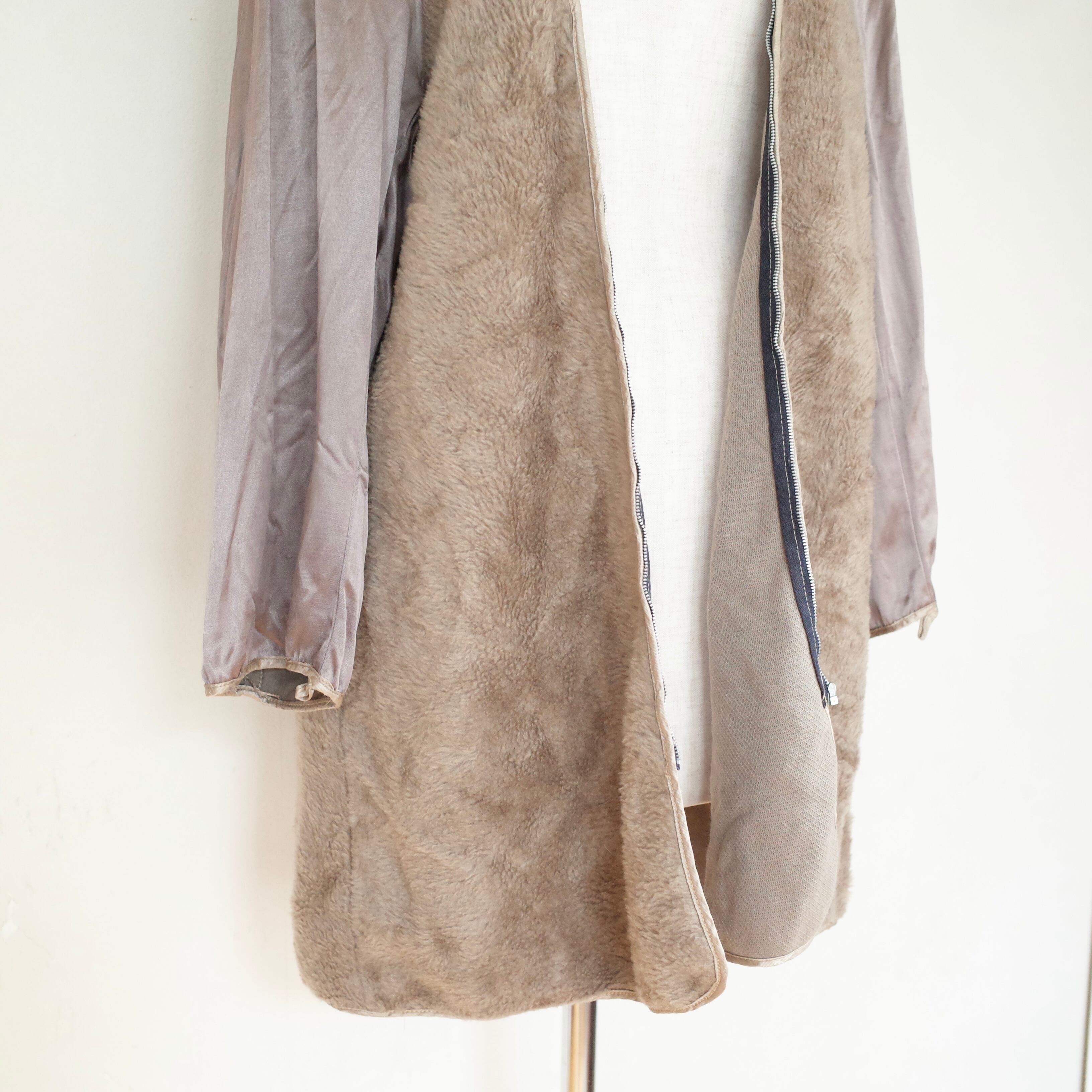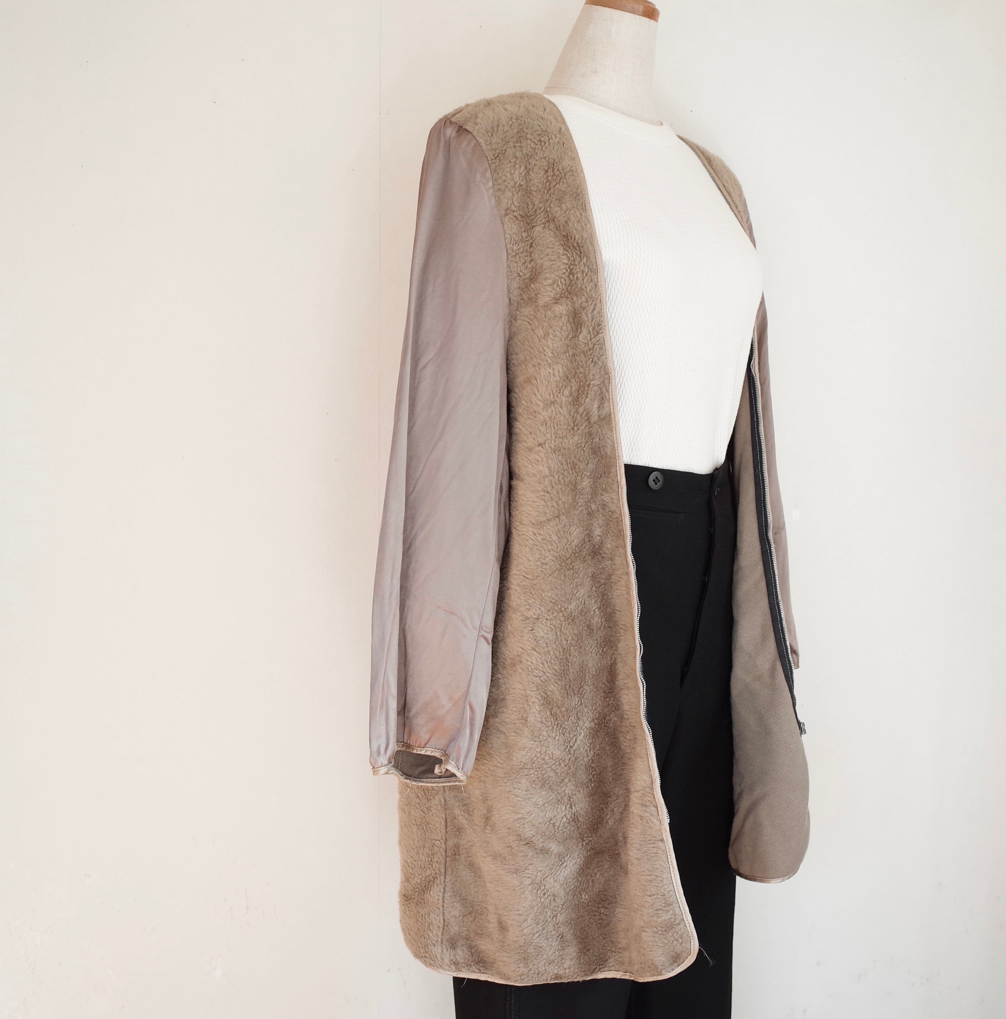 〜80年代頃のヴィンテージコートライナーです。身頃がボアで、袖はサテン生地になっています。その名の通り、本来はトレンチコートやステンカラーコートのライナーになりますが、最近ではミリタリー系ライナージャケットと同じようにライトアウターとして羽織るのも◎
