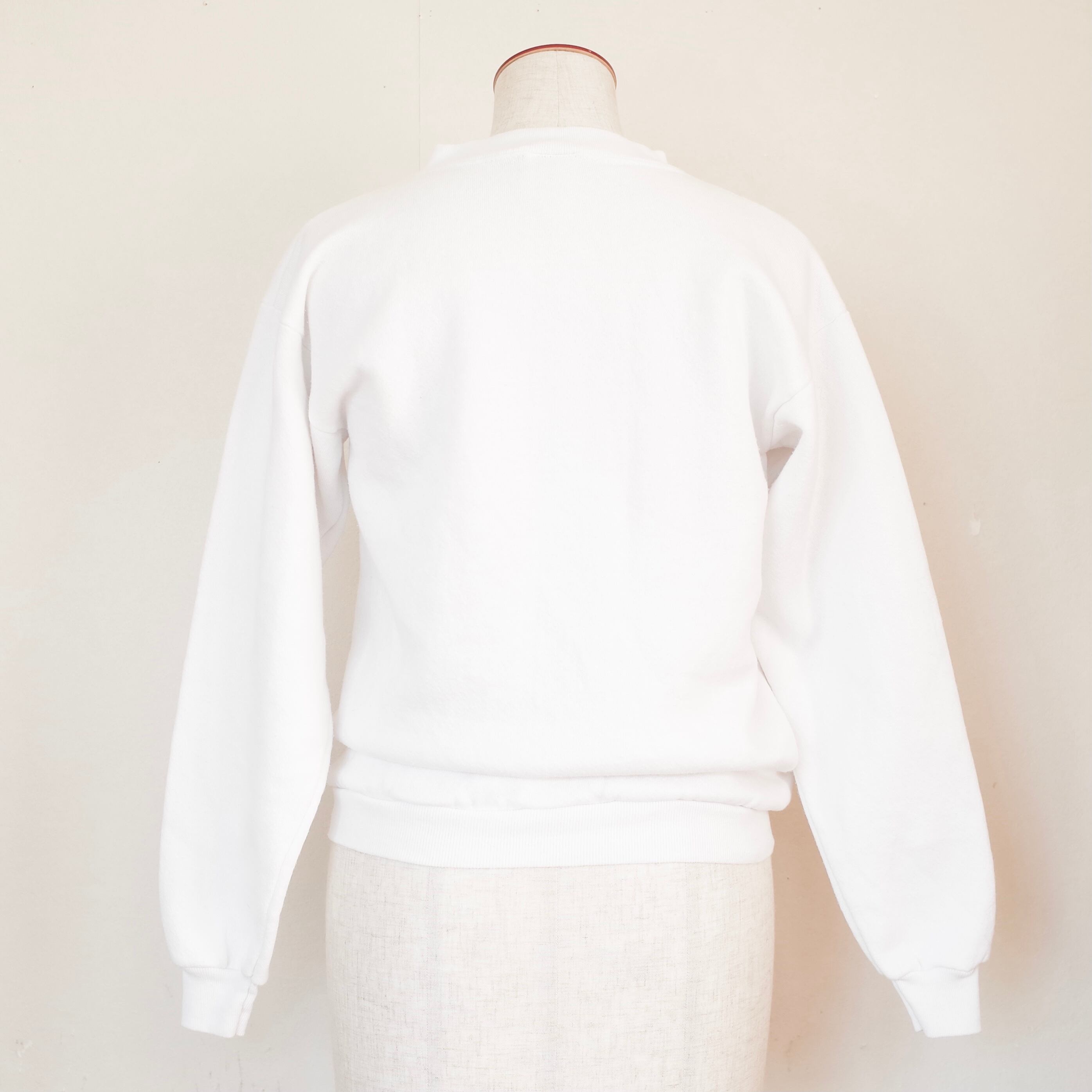 90年代頃のアメリカ製、ホワイトの無地スウェット。ボディはDisneyで、タグには『The Hunchback of Notre Dame』(ノートルダムの鐘)と書いてありますが、プリントのない無地のスウェットです。ドロップショルダーで、袖口のリブがキュッと締まったカタチのいいデザインです。