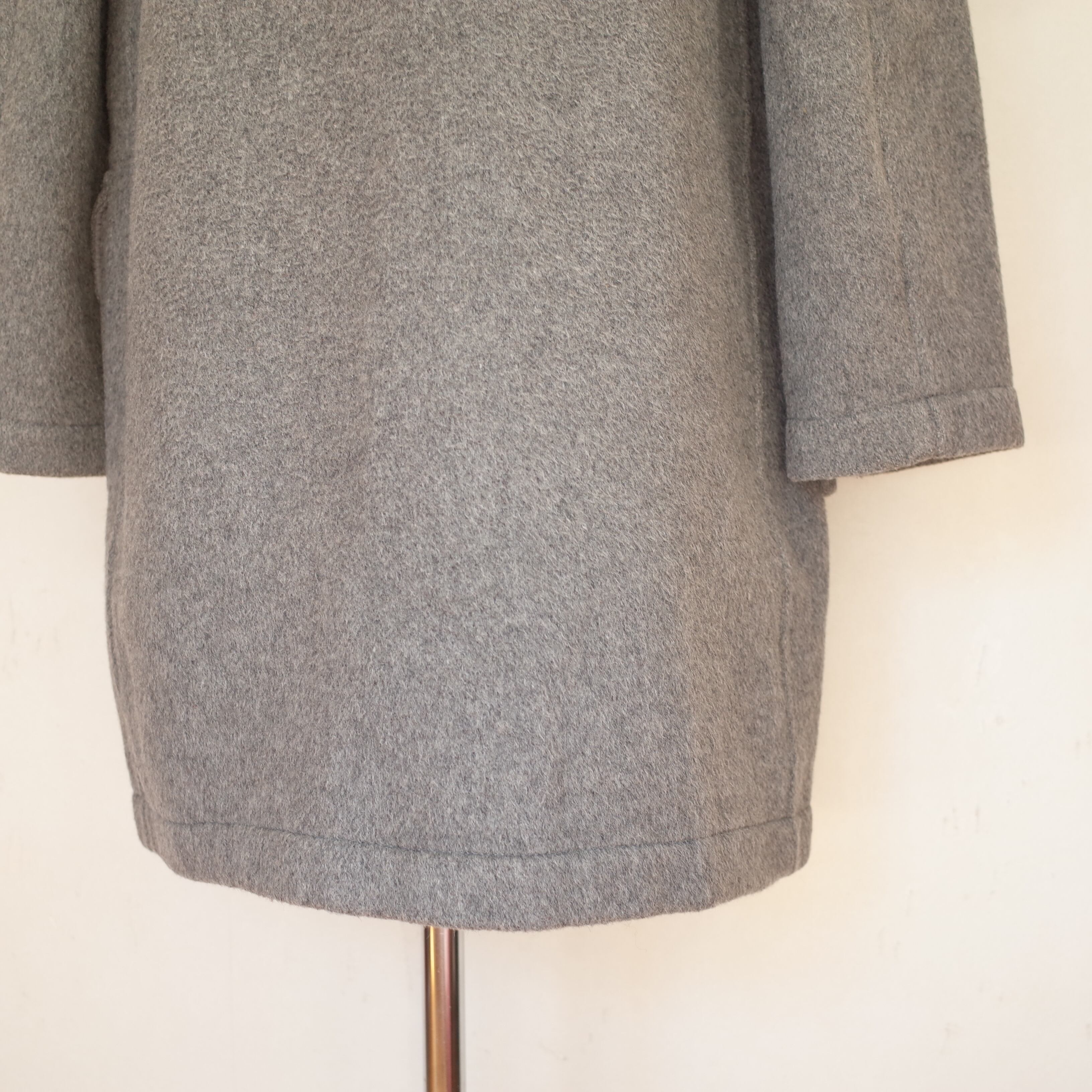70年代イングランド製Gloverallのダッフルコート。グローバーオールは、1951年創業のイギリスを代表するアウターウェアのブランド。最高クラスの素材と英国職人の技術を駆使して、それまで防寒着としか見られていなかったダッフルをファッションアイテムとして昇華させました。時代を超えて愛される、古き良き老舗のダッフルコートです。こちらは内側がグリーン×オレンジのチェック柄になっています。