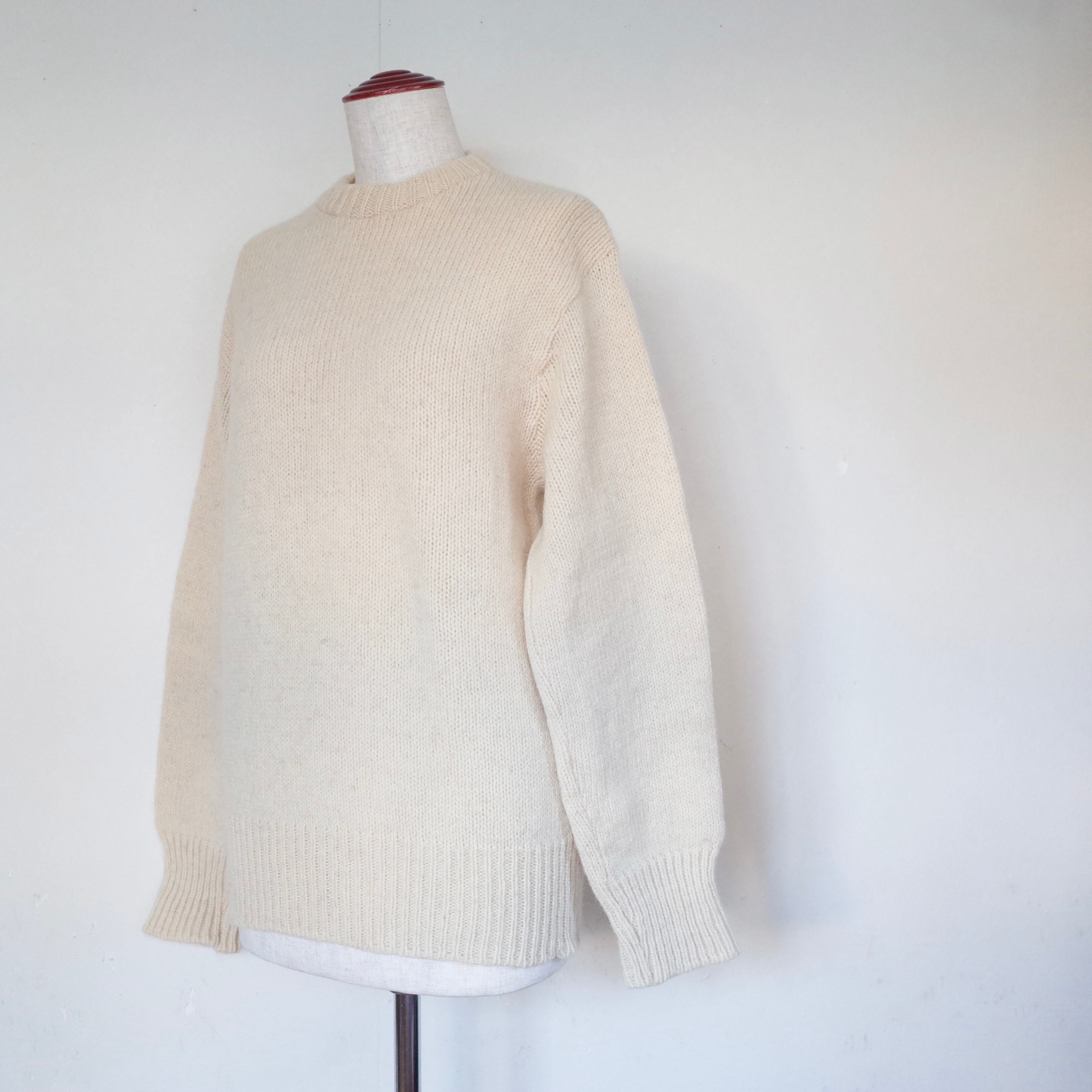 ノルウェーのヴィンテージセーターです。首周りや裾や袖口の長めのリブがヴィンテージらしい質のいい一枚。シンプルですが、着た時のサイズ感やカタチが抜群です。