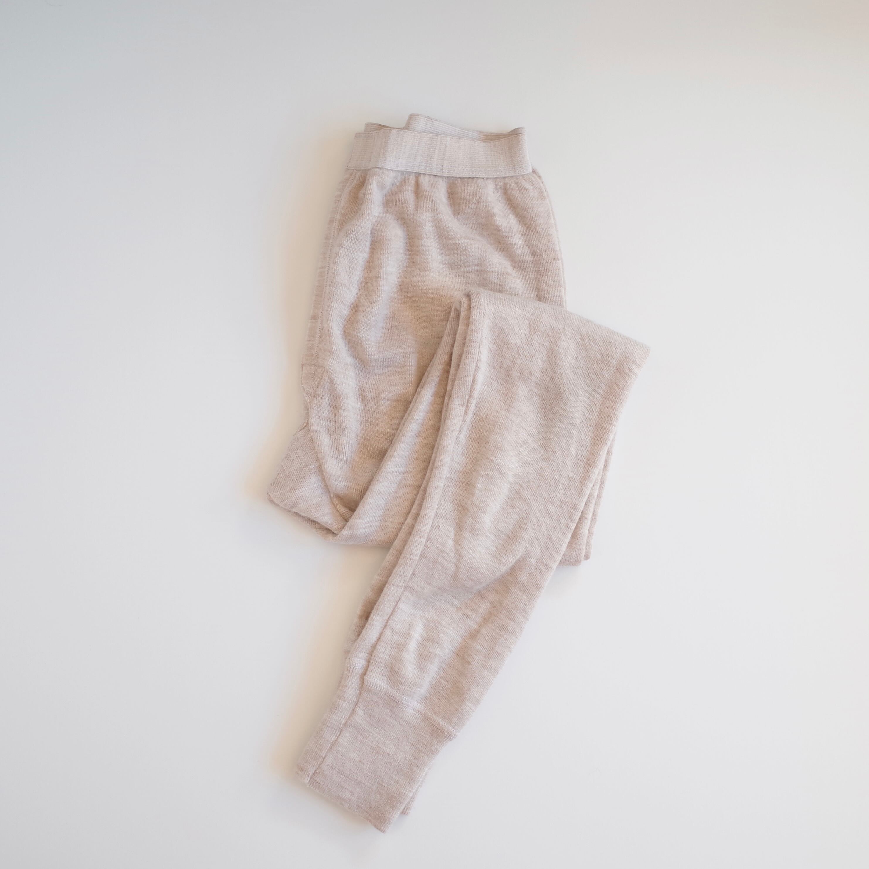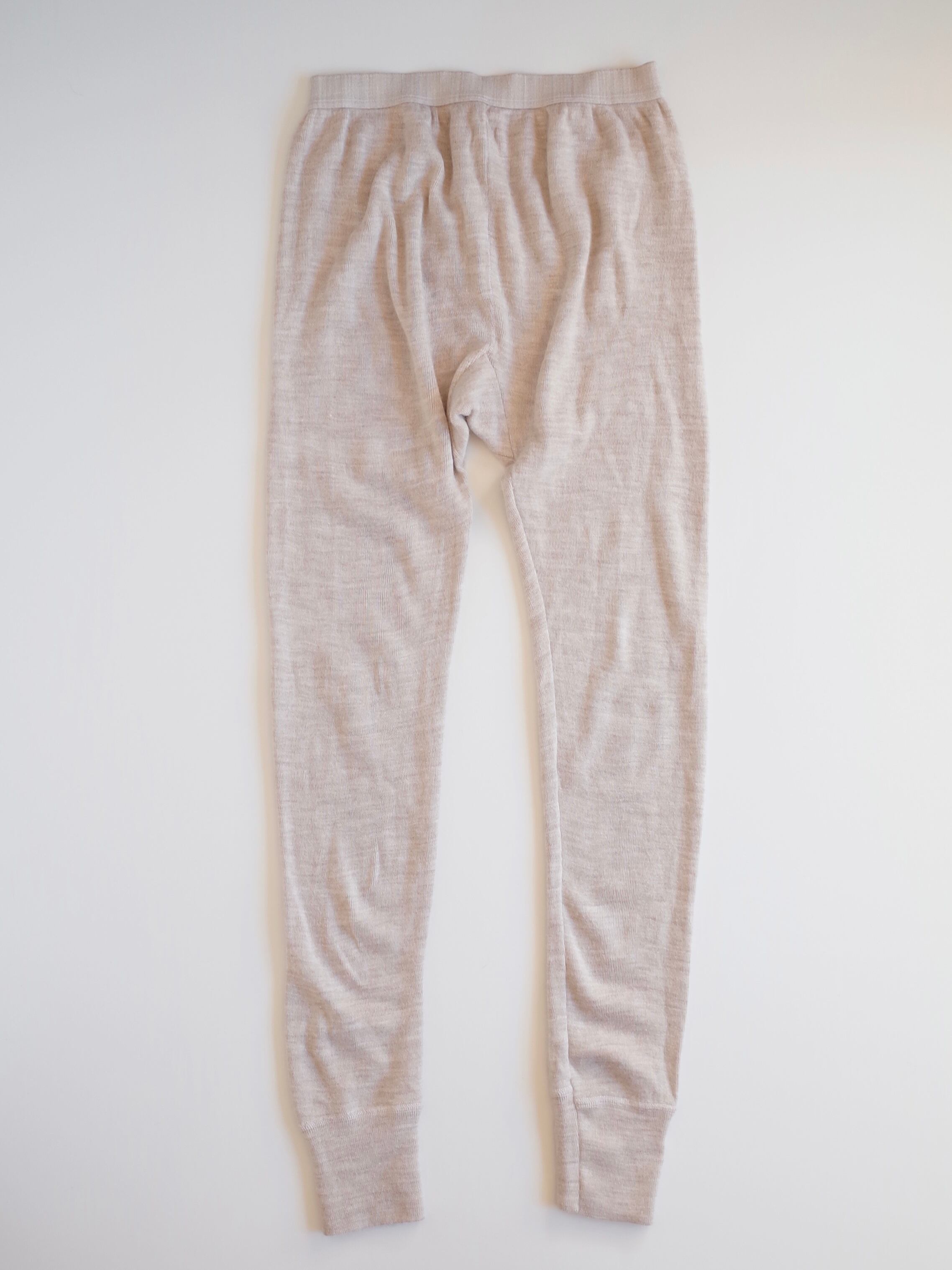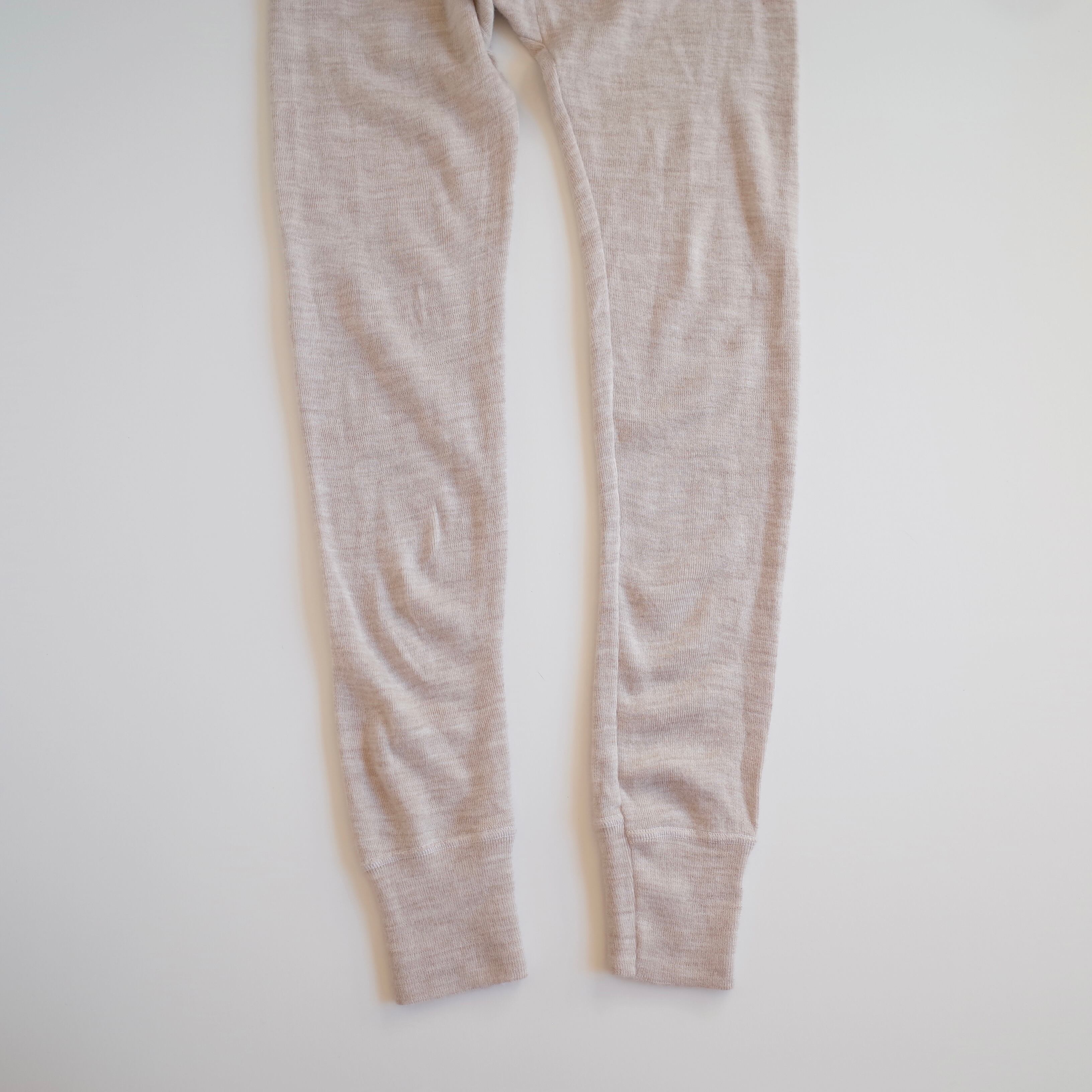ウールのアンダーパンツ。ボトムの下に履くと防寒対策ばっちりな一枚。ワンピースやスカートの下から覗かせても可愛いしっかりとした素材感です。