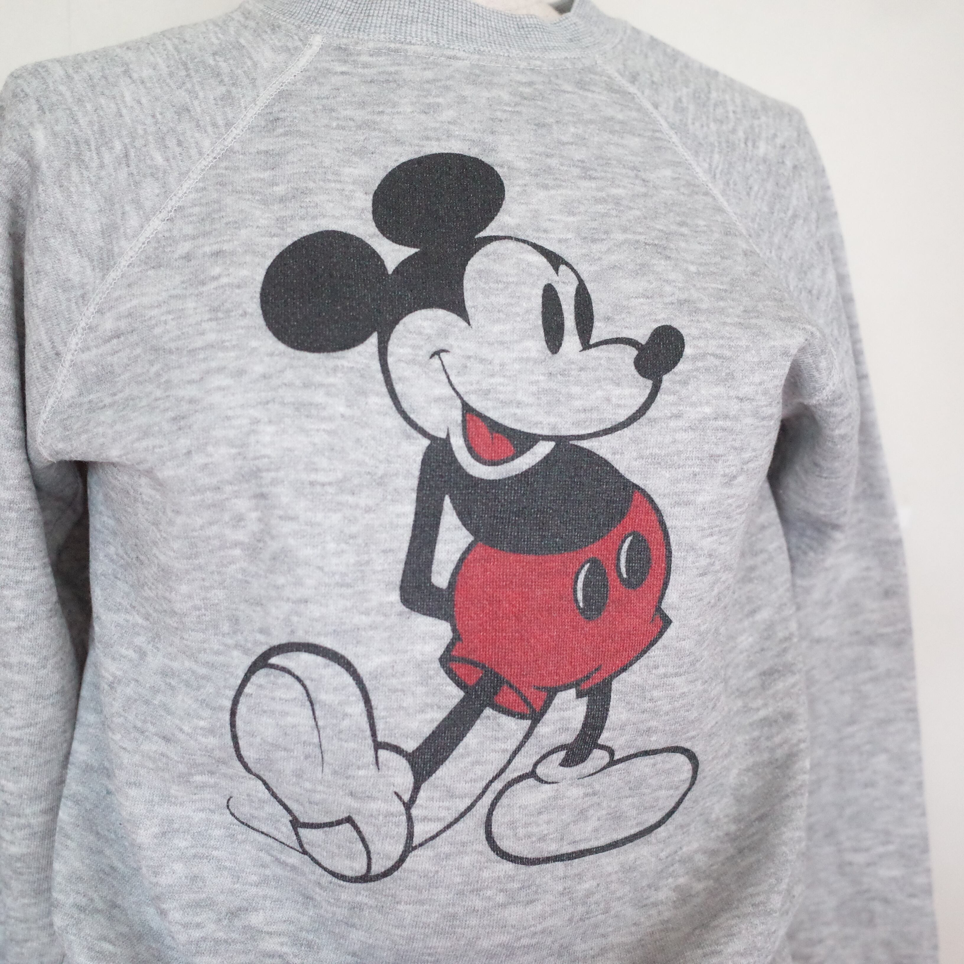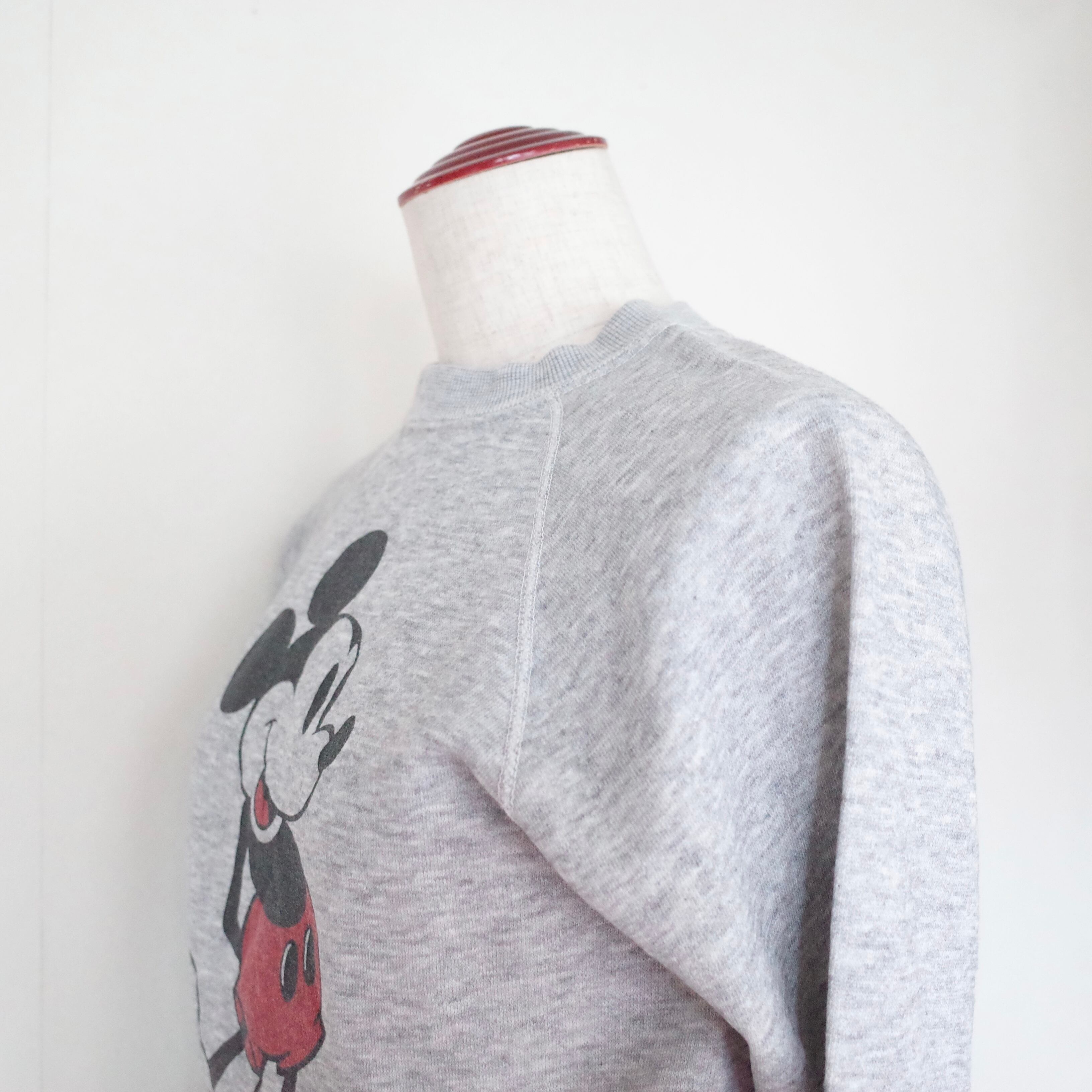 1980年代製ミッキーマウスがプリントされたスウェット。着込まれくたっとした霜降りグレーの感じがヴィンテージらしい雰囲気が出ています。サイズも良いのでお探しの方おすすめです。