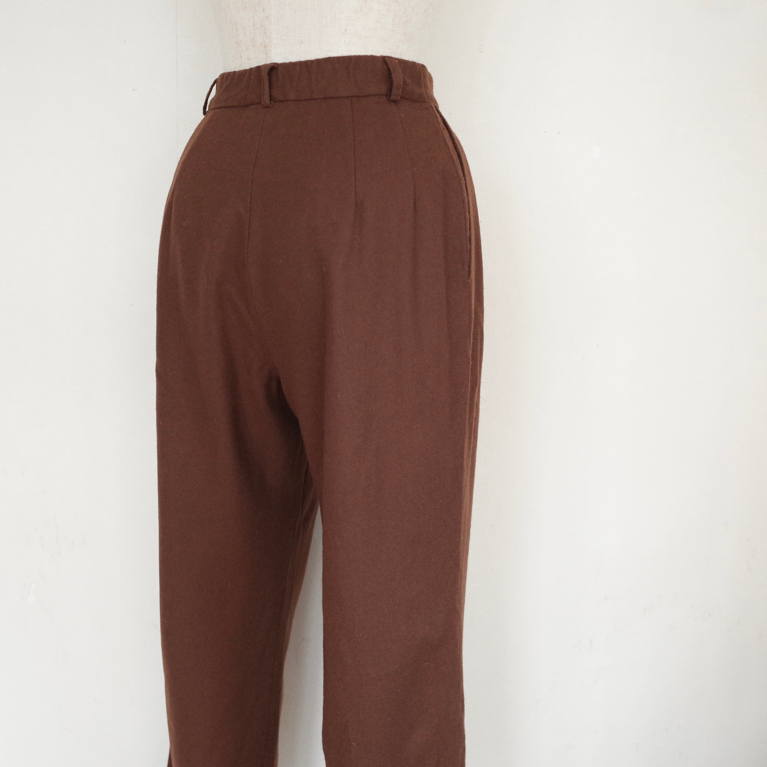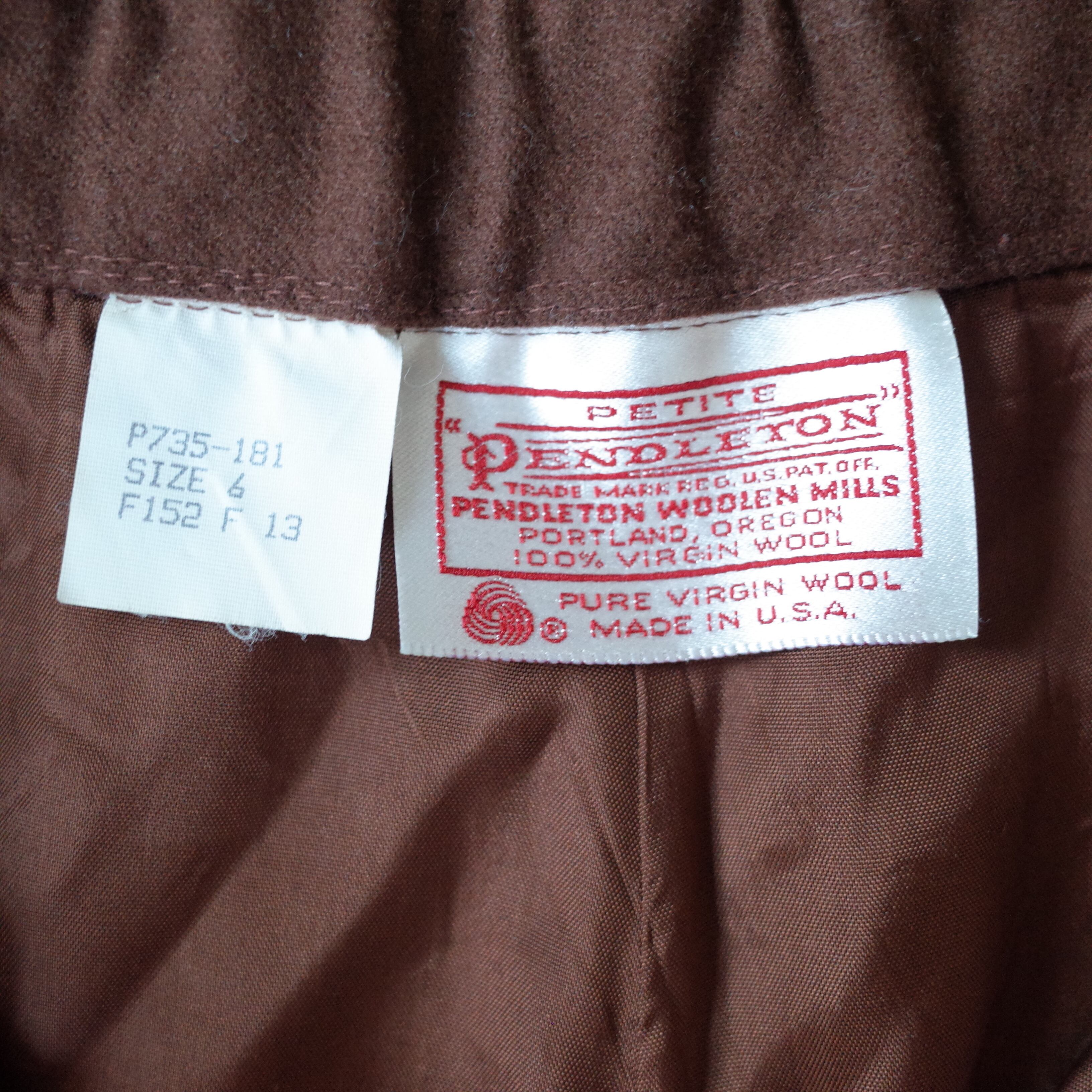 70〜80年代アメリカ製PENDLETONのウールタックパンツです。やや太めのストレートレングスにウエストは後ろ半分がゴムになっているので履き心地の良い一着。裏地付きです。ジャケットやニットなど、スタイリングにも取り入れやすいペンドルトンのパンツです。