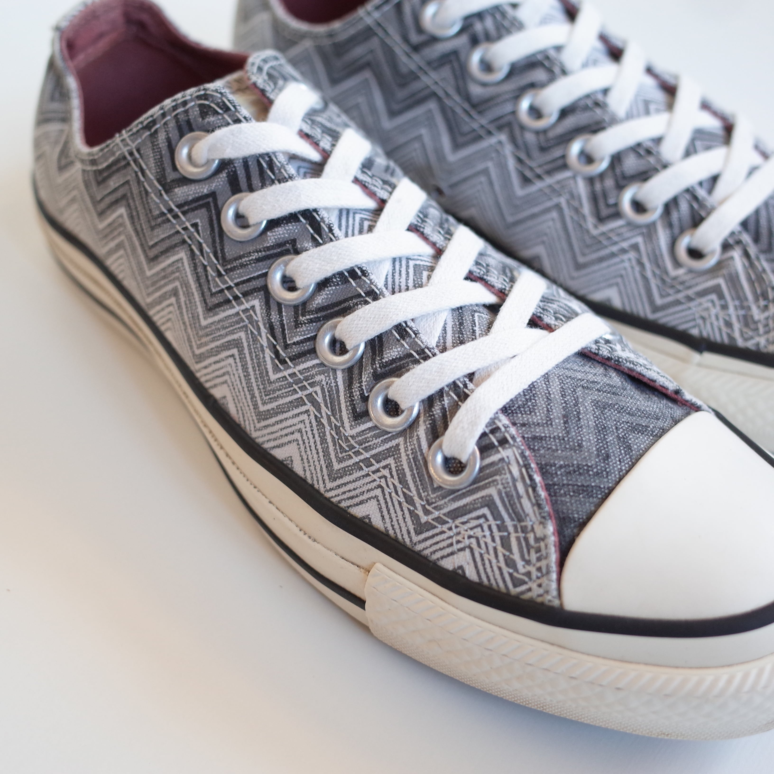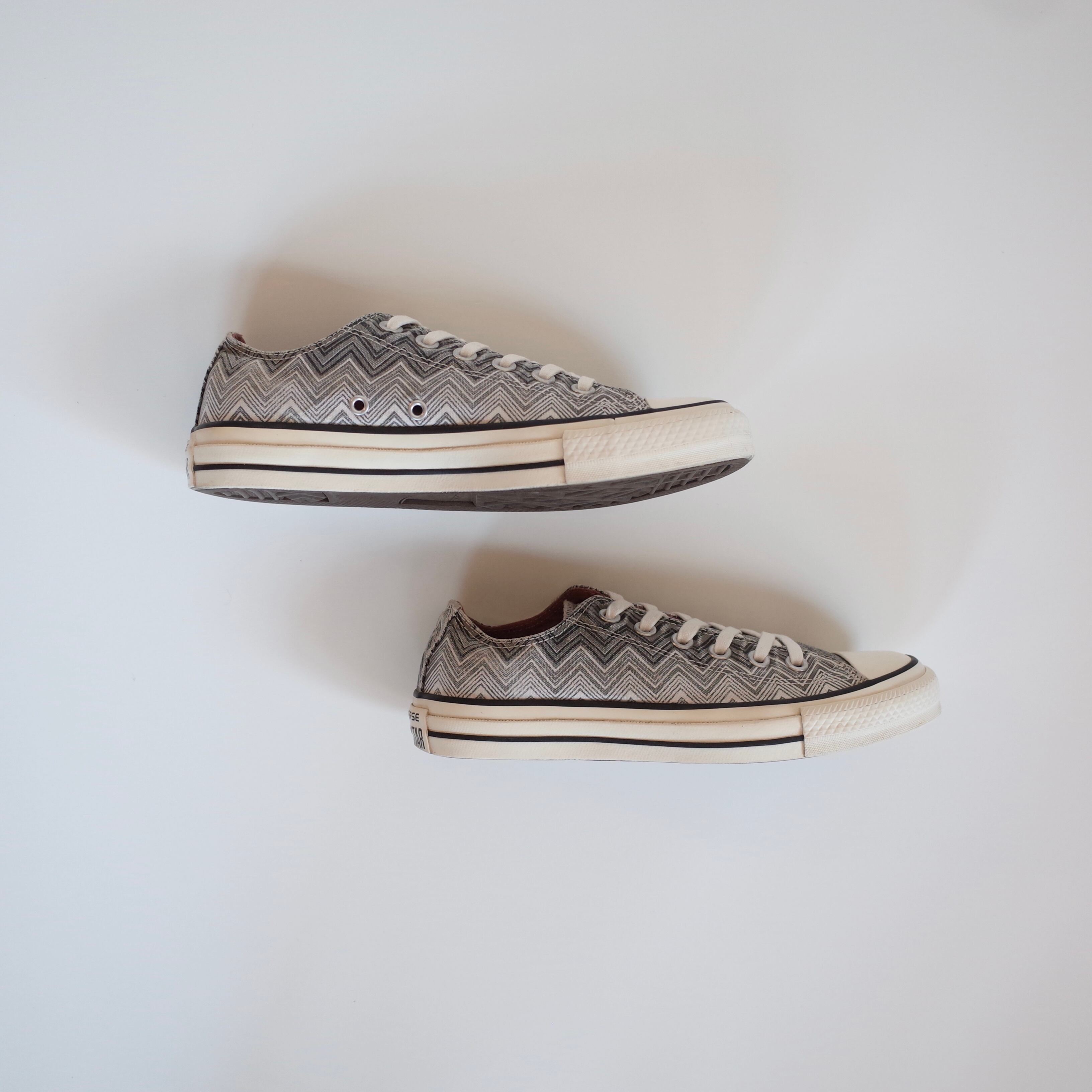 2010年春夏にスニーカーのカプセルコレクションとして登場したミッソーニ(MISSONI)とのコラボ。MISSONIらしい幾何学模様のテキストパターンがアッパーに採用されたラグジュアリーな一足。日本未入荷の海外限定モデルです。