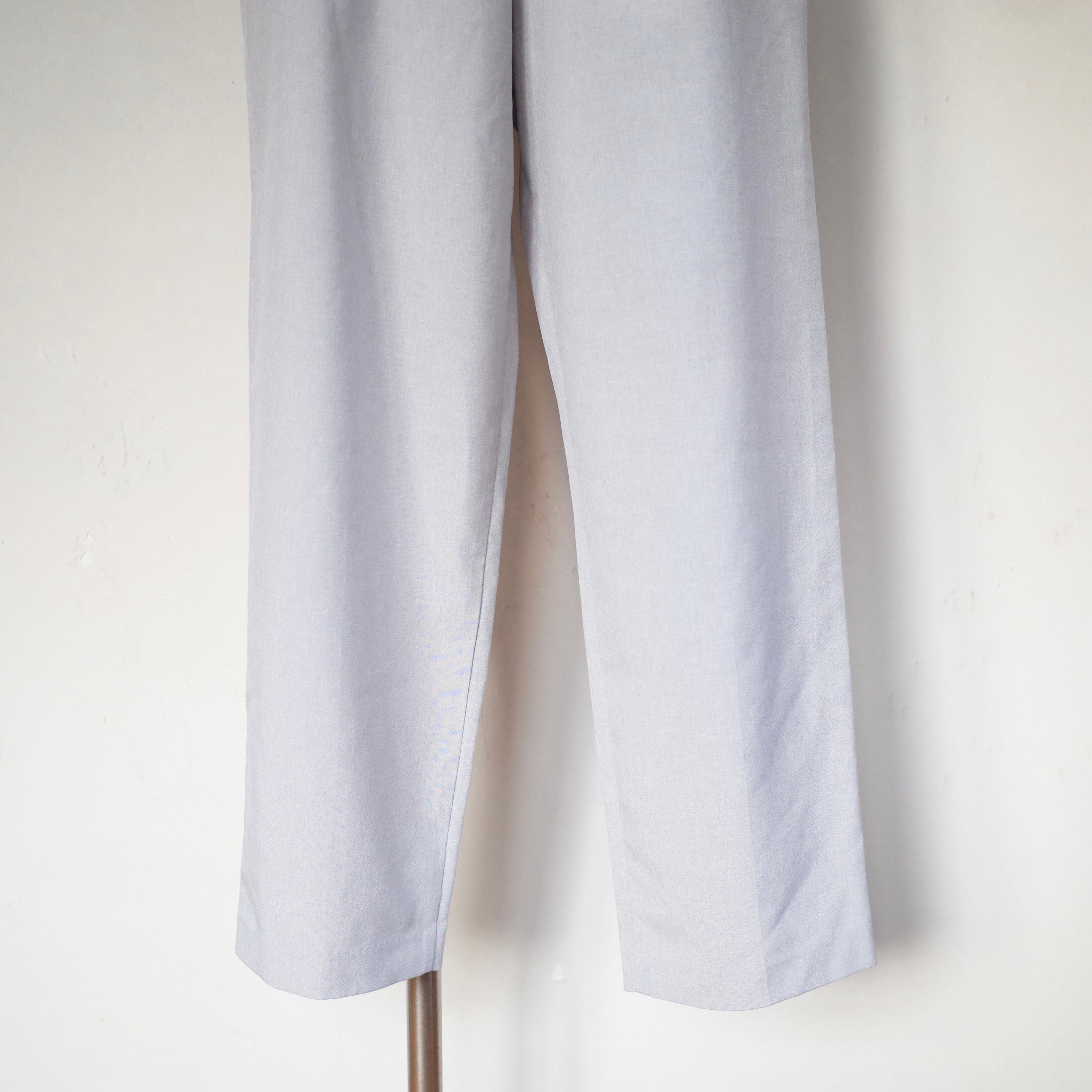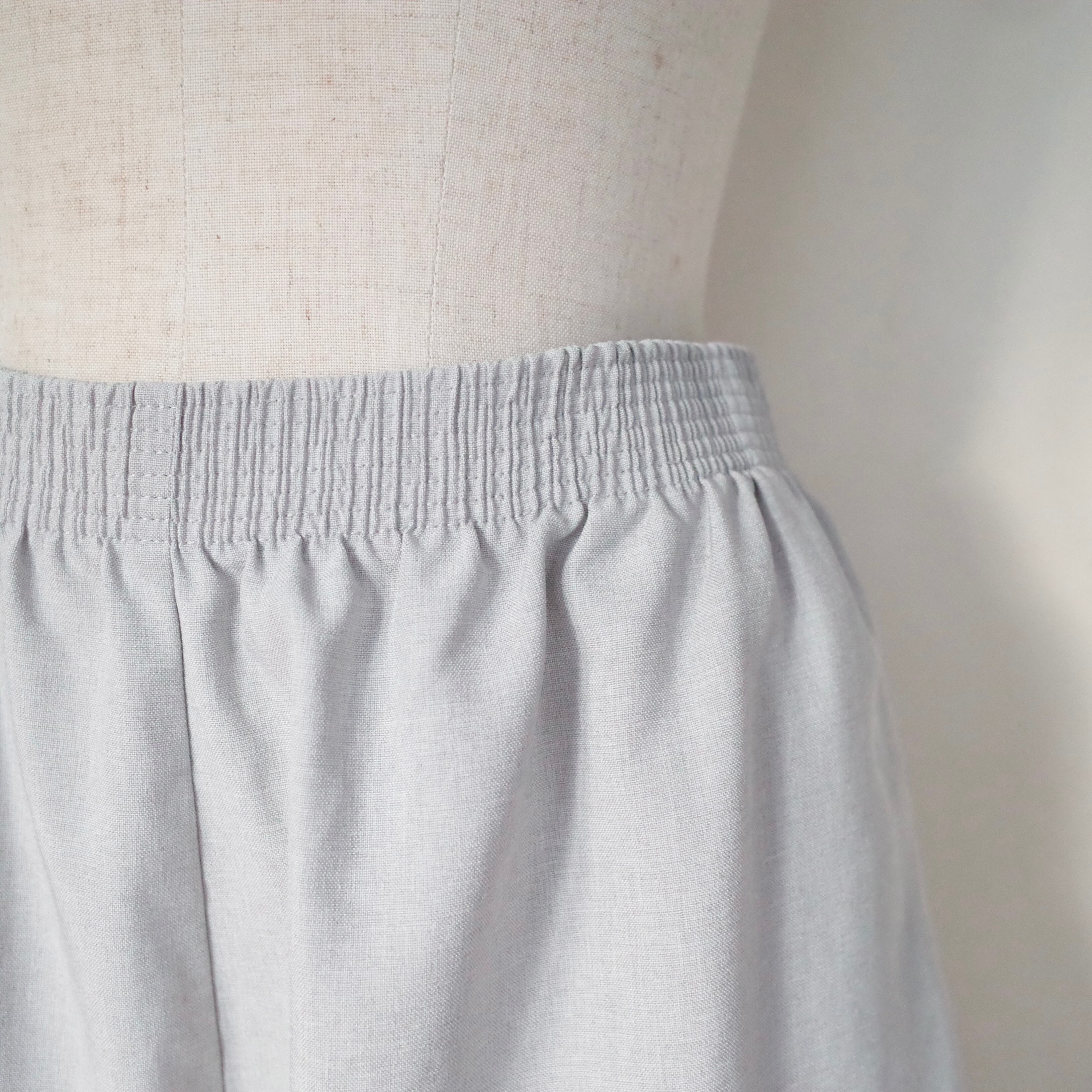 使い勝手の良い、ライトグレーカラーのイージーパンツ。薄手でサラッとした生地感です。ウエストはゴムで楽ちんな履き心地の為、お家でのリラックスウェアとしても◎コーディネート次第では綺麗目にも着用頂ける万能なパンツです。
