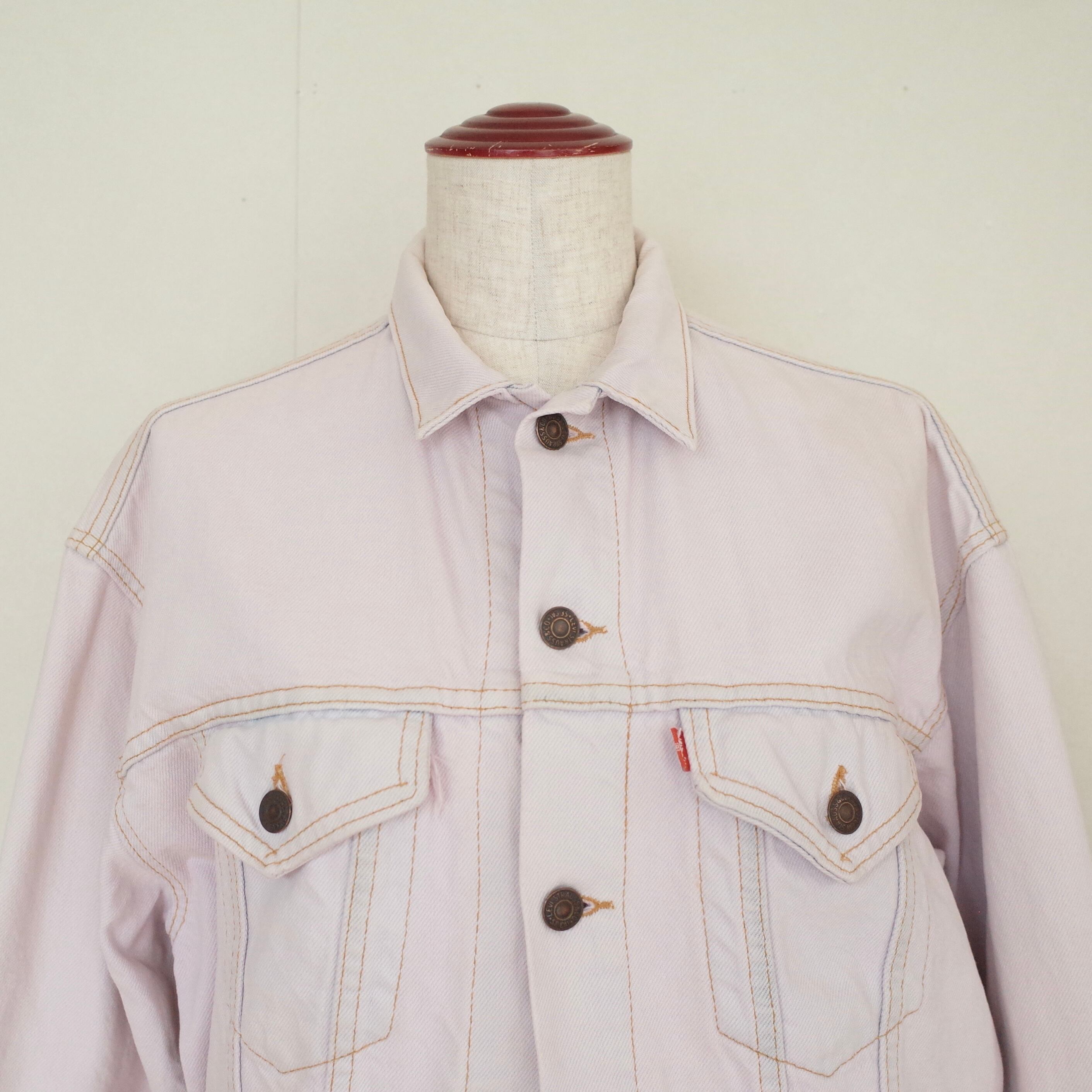 Levi'sのデニムジャケット。後染めされたような薄いピンクの可愛らしいカラーです。