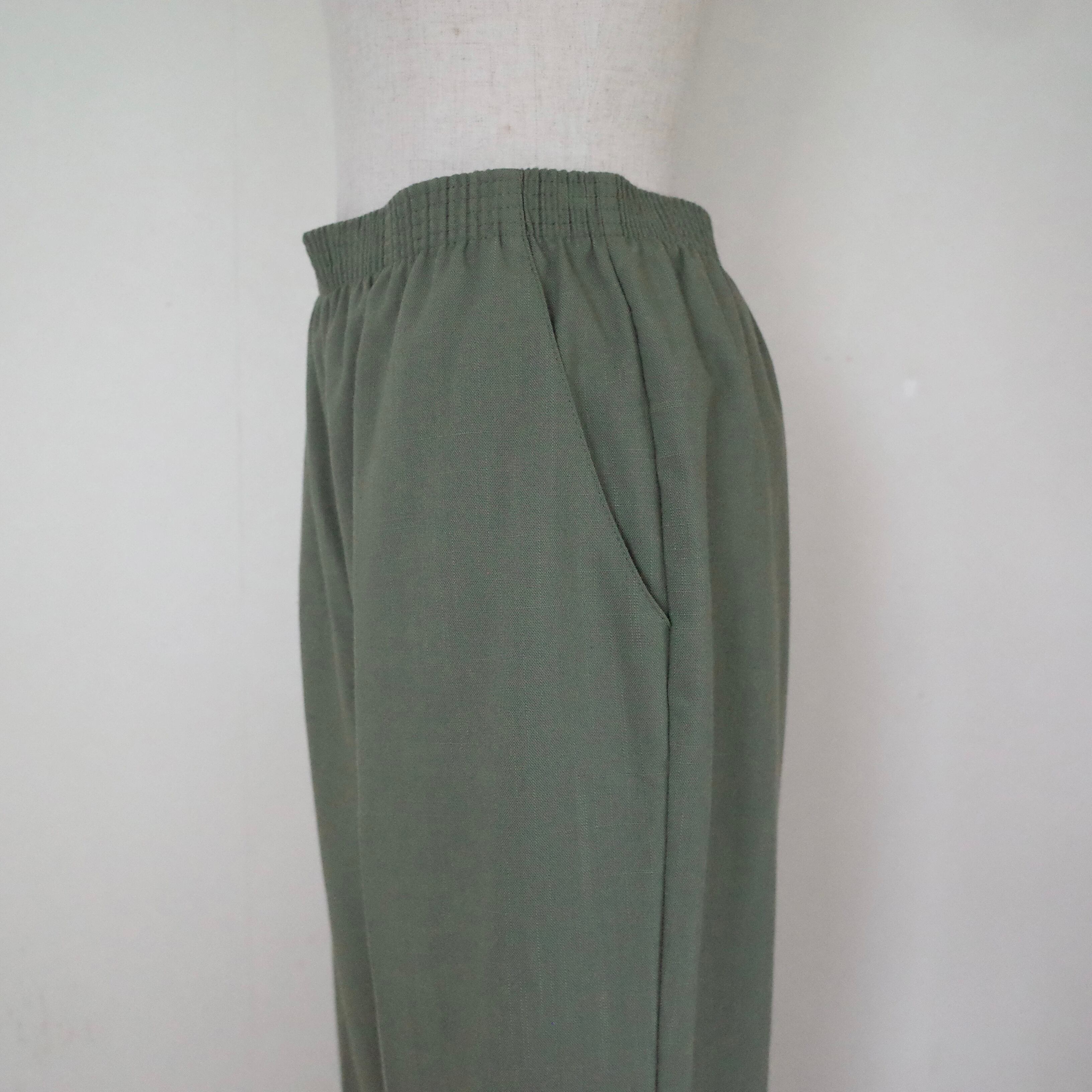 使い勝手の良い、アースカラーのイージーパンツ。薄手でサラッとした生地感です。ウエストはゴムで楽ちんな履き心地の為、お家でのリラックスウェアとしても◎コーディネート次第では綺麗目にも着用頂ける万能なパンツです。