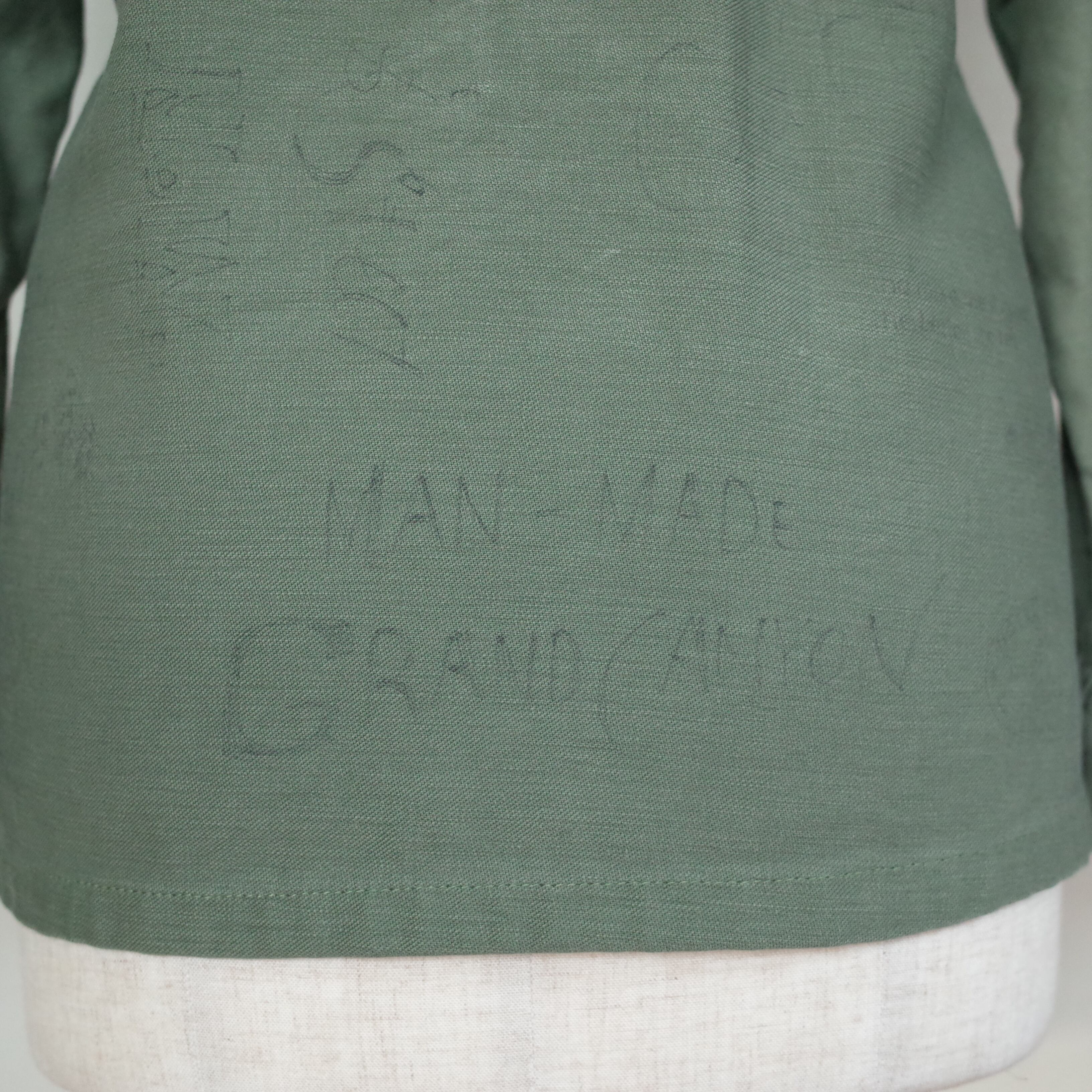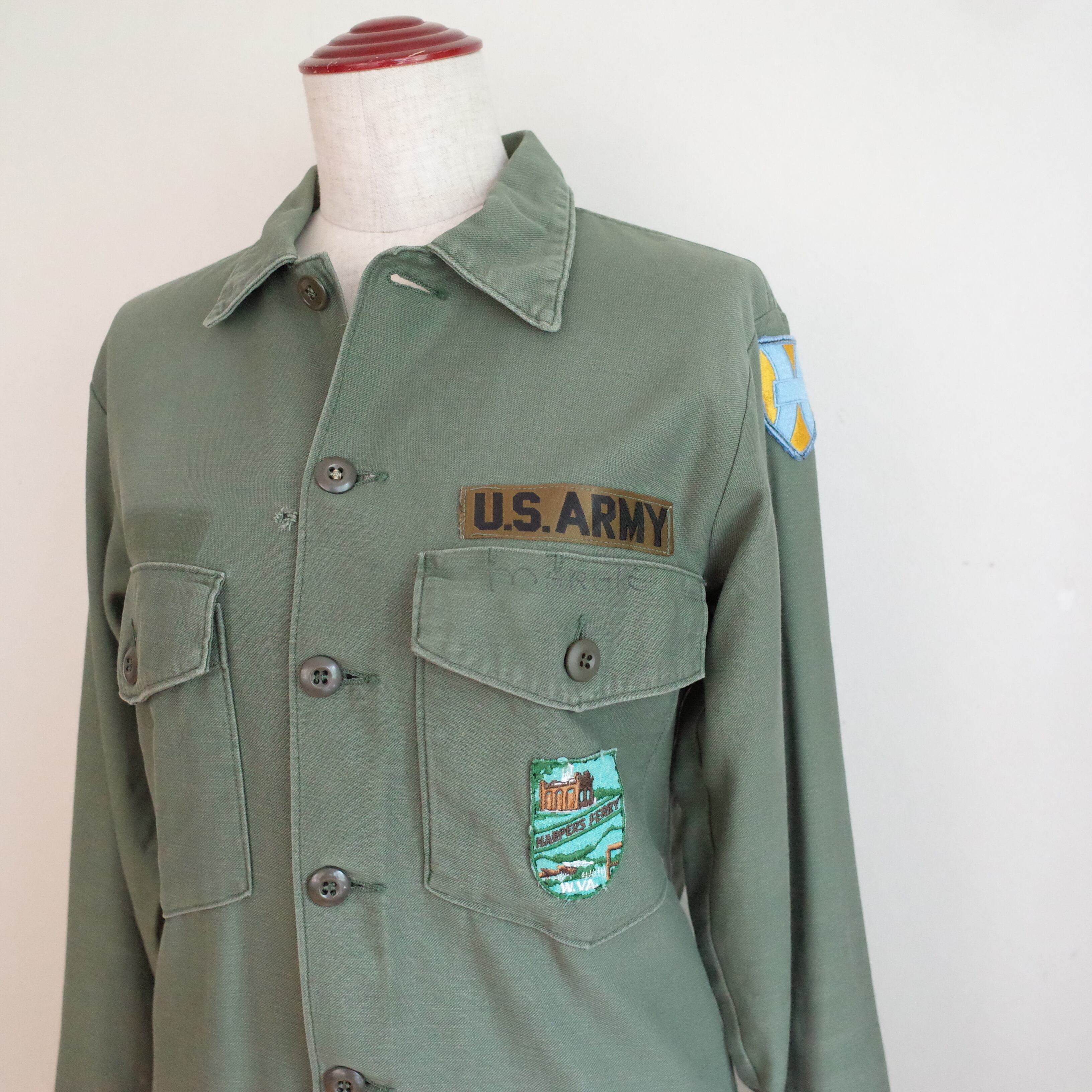 U.S.ARMYのミリタリージャケット。ワッペンが貼られていたり、刺繍や絵が描かれていたり。ジャケットに落書きをしたような遊び心溢れる一着。世界に一枚だけの味のあるジャケットです。