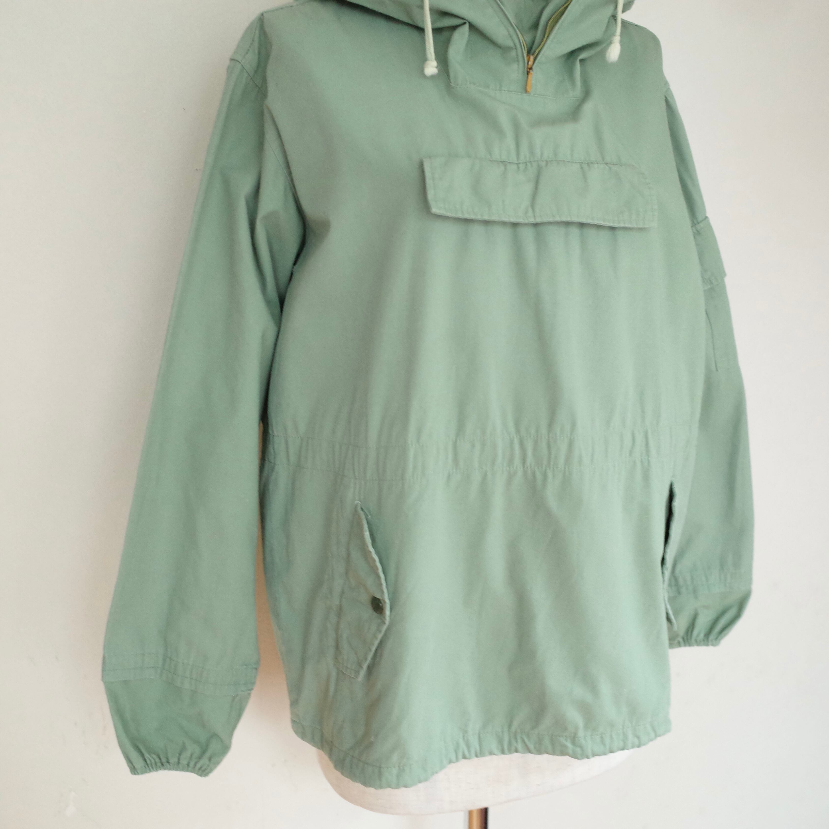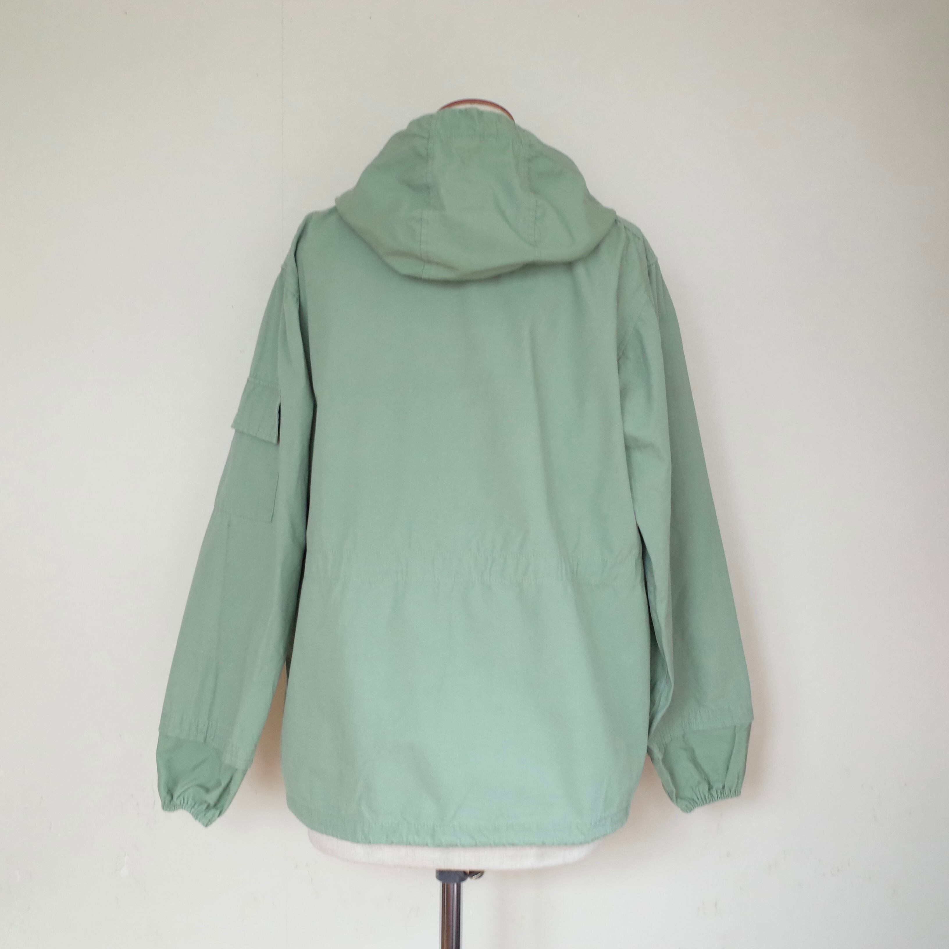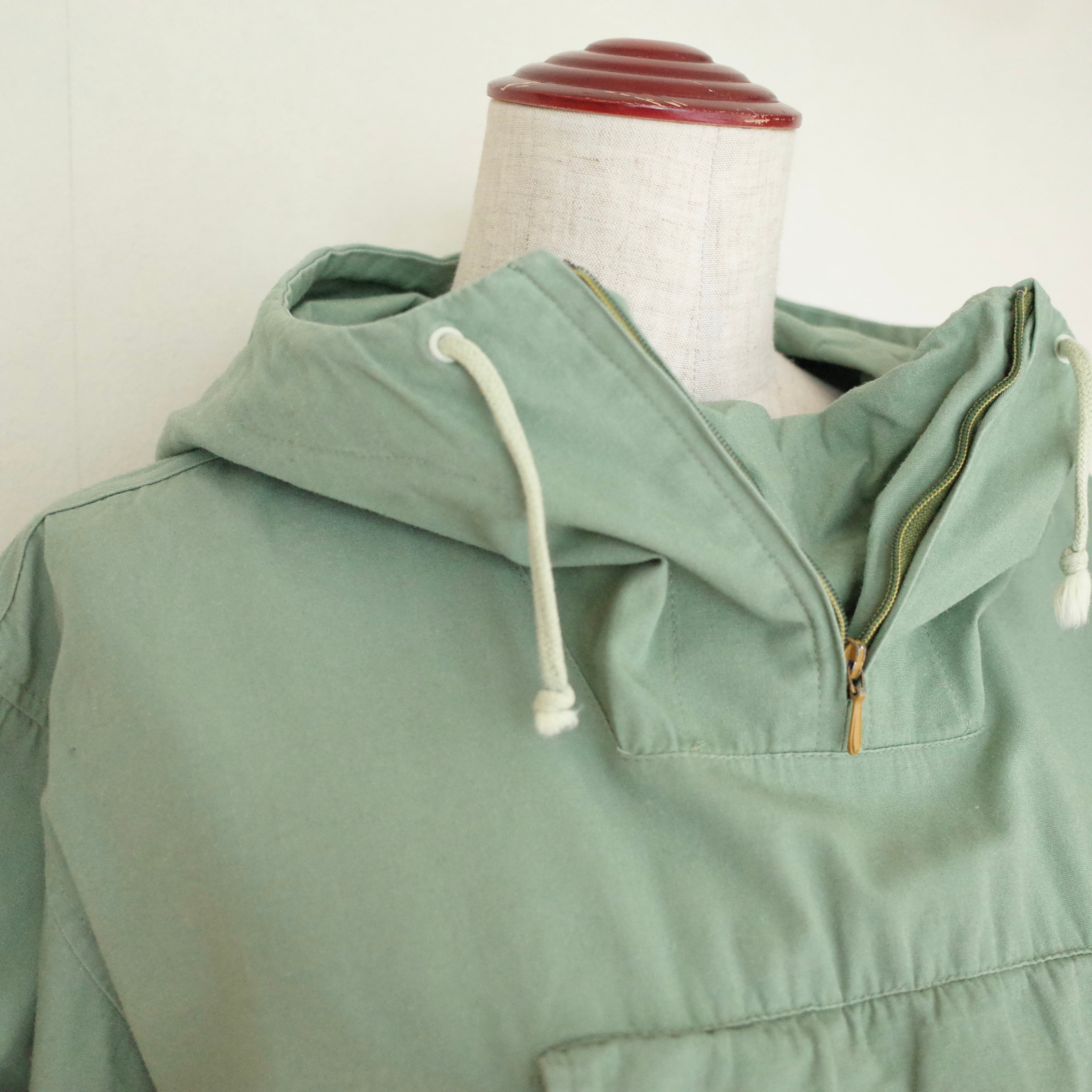 80年代頃のフィッシングフェアのアノラックパーカー。コットンポリのようなしっかりとした薄手の生地感で、袖口にはゴムが入っています。ウエストと裾は絞れるようになっていて、ポケットもたくさんついた機能的なアノラックパーカー。春のジャケットとして活躍してくれる一枚です。