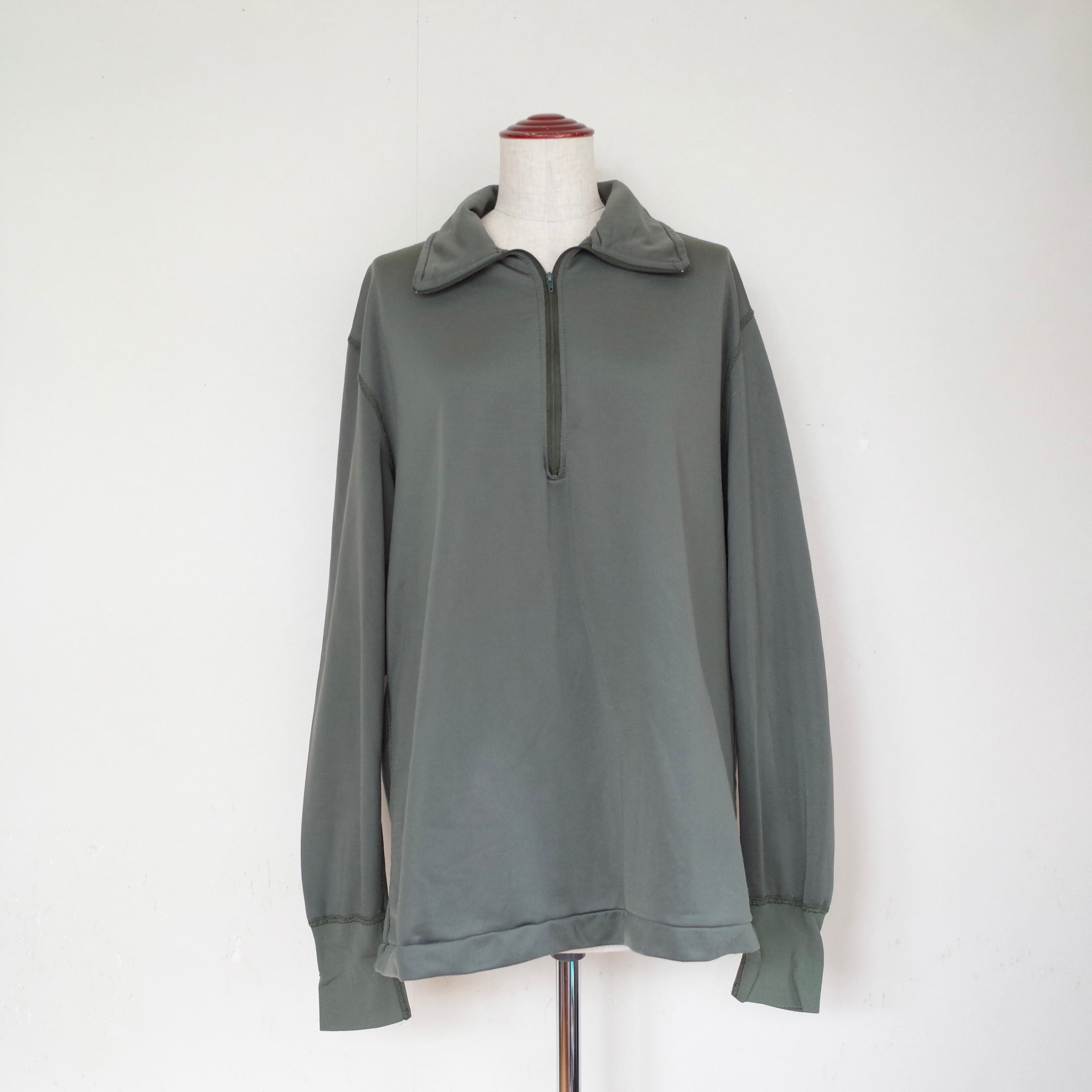 2003年納品のU.S.ARMYのスリーピングシャツ。ポリエステルのジャージ素材で、ハーフジップになっています。時代とともに機能性やデザイン性が幾度となくアップデートされた無骨で頼れるミリタリーアイテムをデイリーユースに。こちらはユニセックスで着用頂けるサイズ感です。