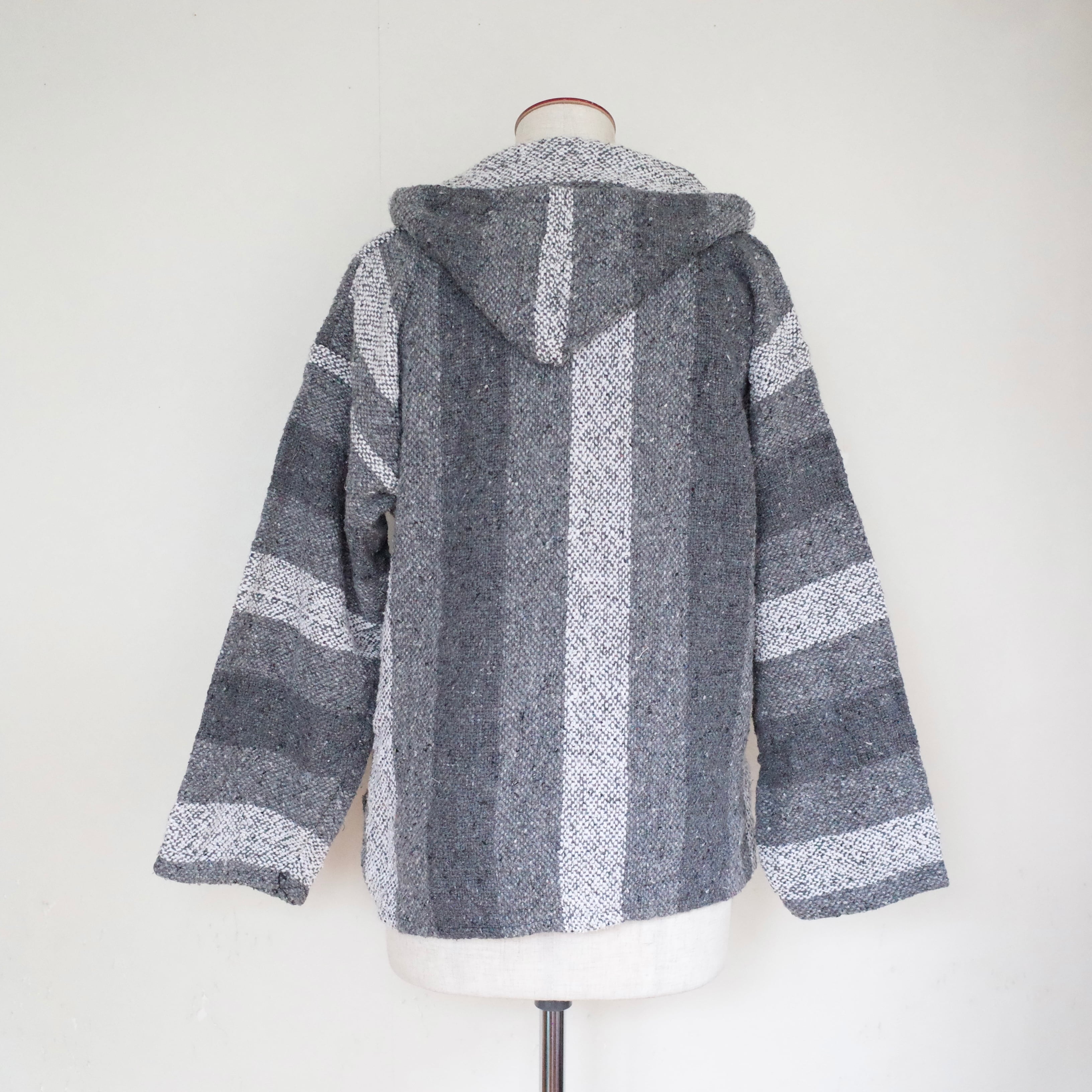 ヒッピー&サーフのアイコン、メキシカンパーカー。最近ではストリートブランドやハイブランドからも出ています。シャツをインしたり、ジャケットのインナーに仕込めば、程よい抜け感の演出も。こちらはグレートーンのシックな配色のメキパです。