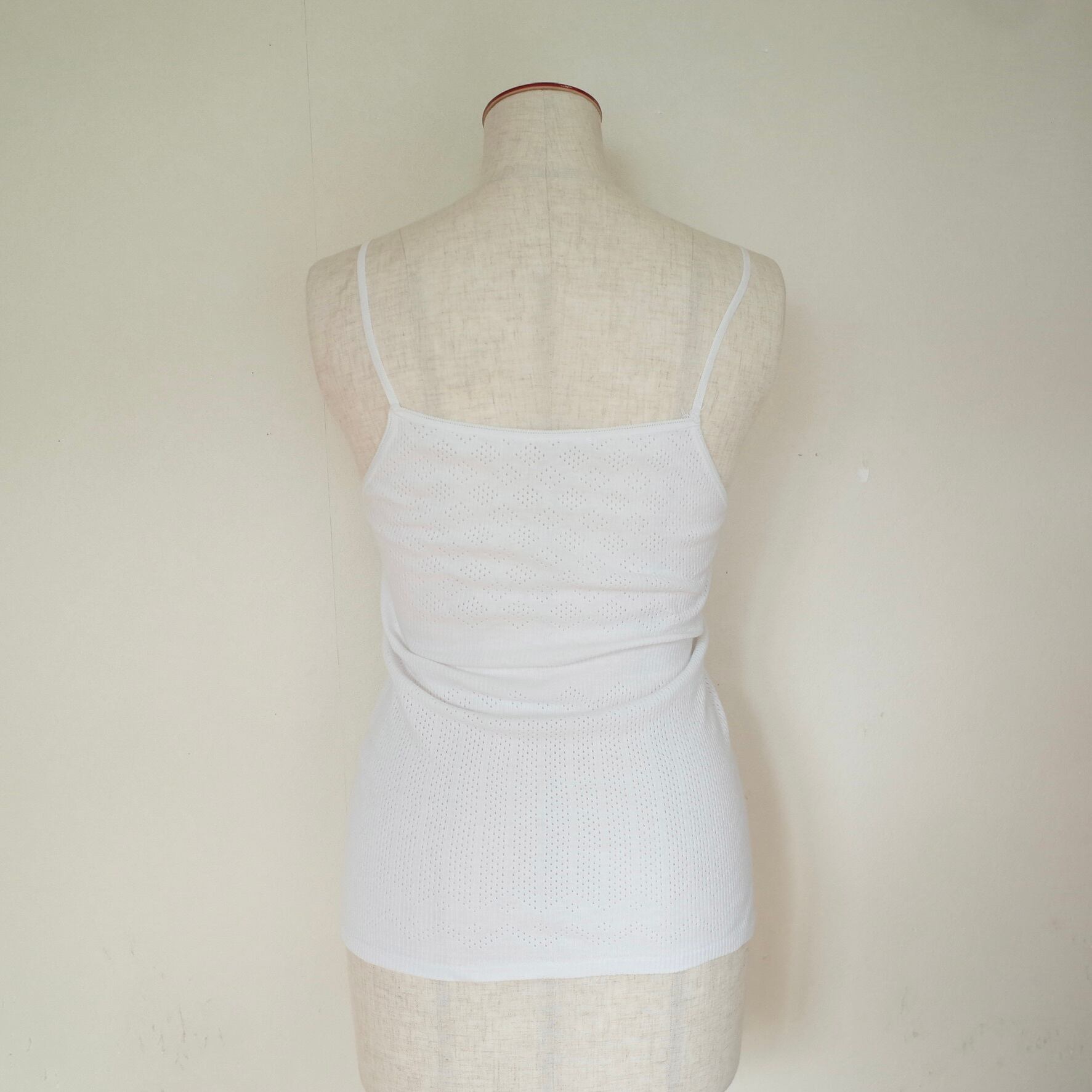 フランス製ピュアコットン素材のキャミソール。薄手で柔らかく、肌触りの良い素材感。伸縮性のあるリブ編みで体に優しくフィットするデザインです。インナーとしてはもちろん、雰囲気が良いのでシャツを羽織っても◎