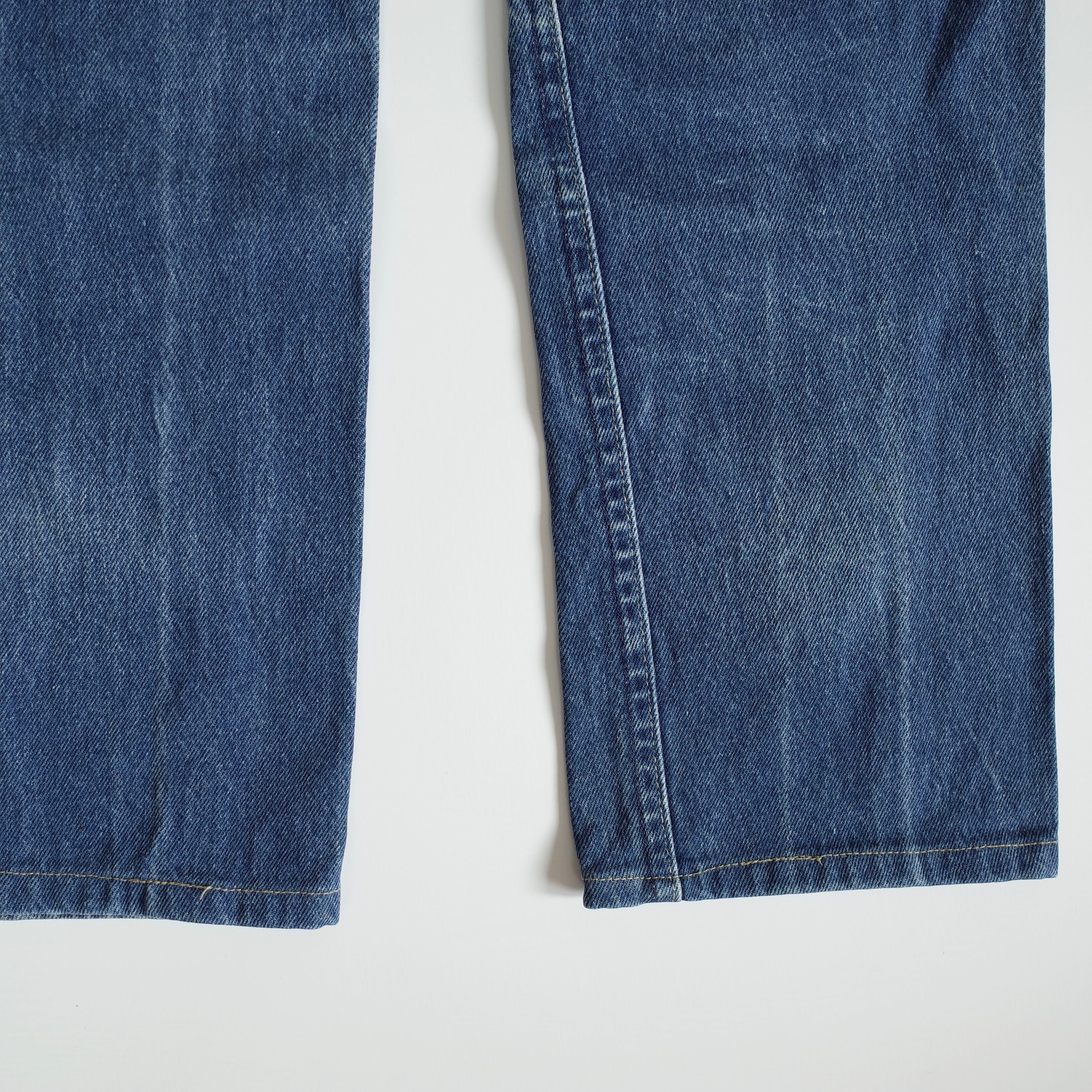 80〜90年代アメリカ製Leeのストレートデニムパンツ。Leeならではの穏やかな曲線を描いたバックポケットがシルエットの綺麗さをより際立たせてくれます。こちらはブルーの色落ち具合も良く、雰囲気ある一本です。Levi'sとはまたひと味違ったLeeのデニムもワードローブのバリエーションに取り入れたいデニムです。