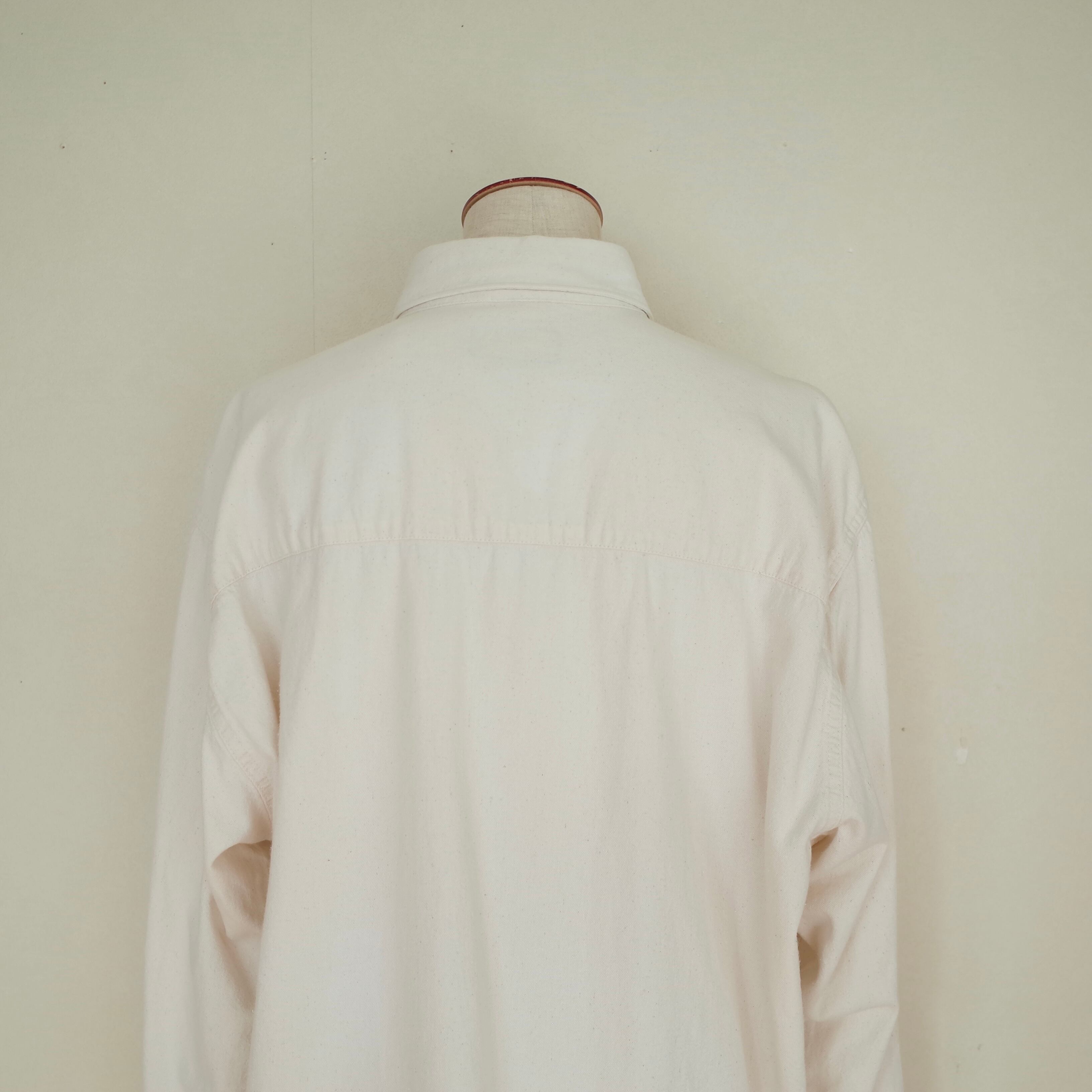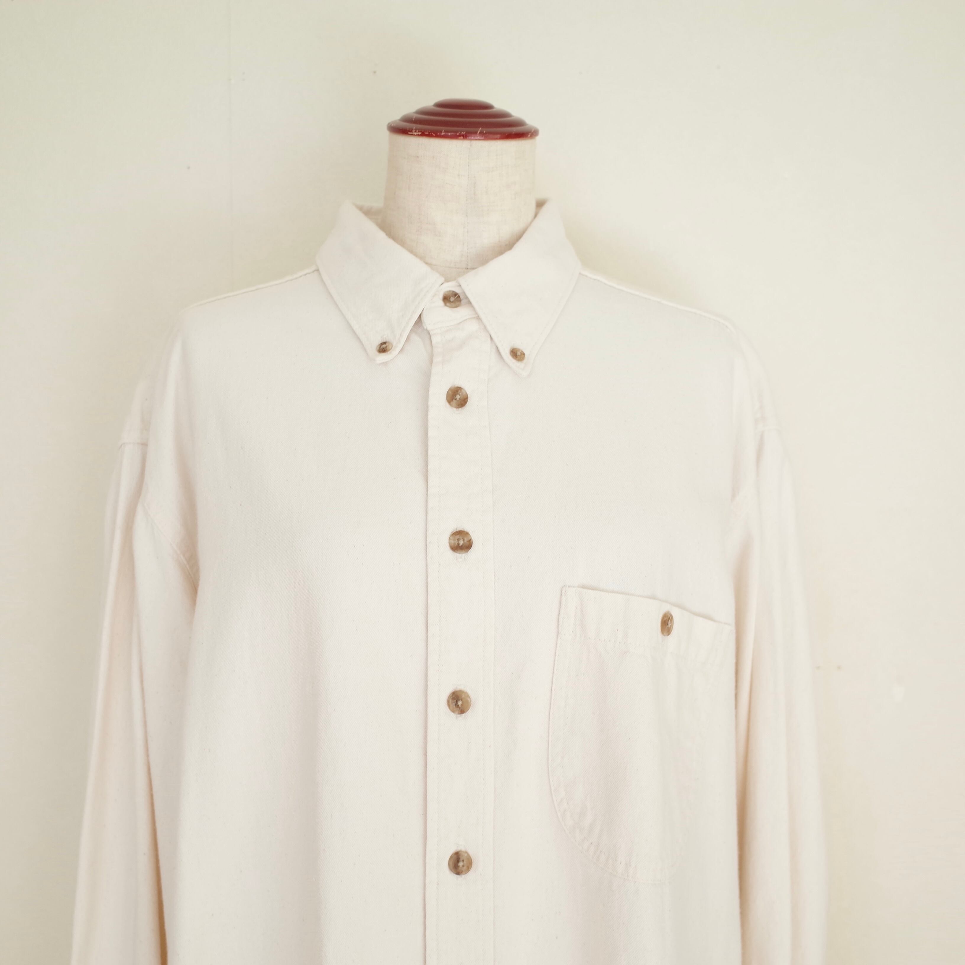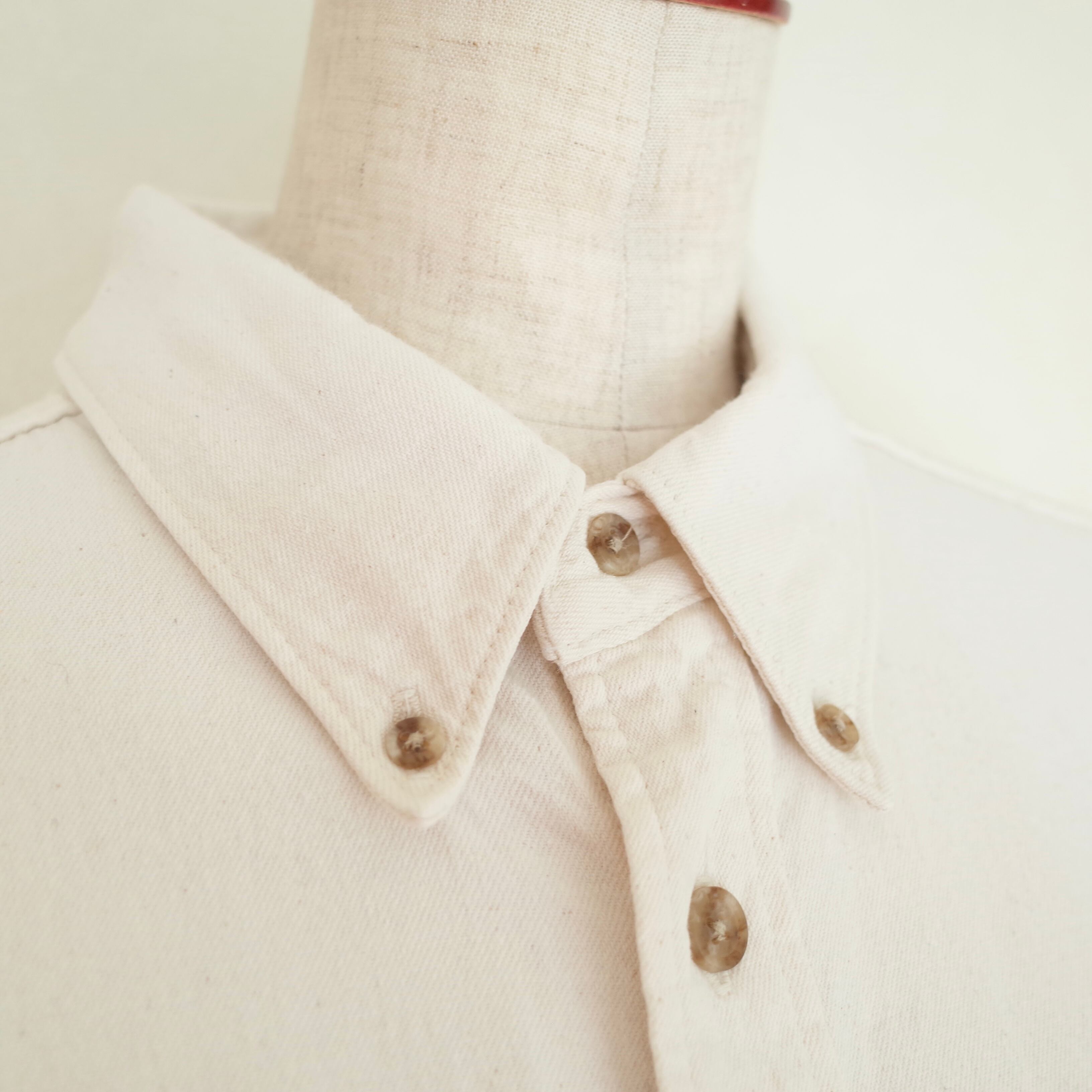 ボタンダウンのオックスフォードシャツは、カットソーの上にざっくり羽織ったり、ニットの下にレイヤーしてスタイリングするのに、あえてオーバーサイズをセレクトしました。スタンダードなアイテムだからこそ、一点物の古着を。さらに着込んで行くと味わいや雰囲気もより出てきます。