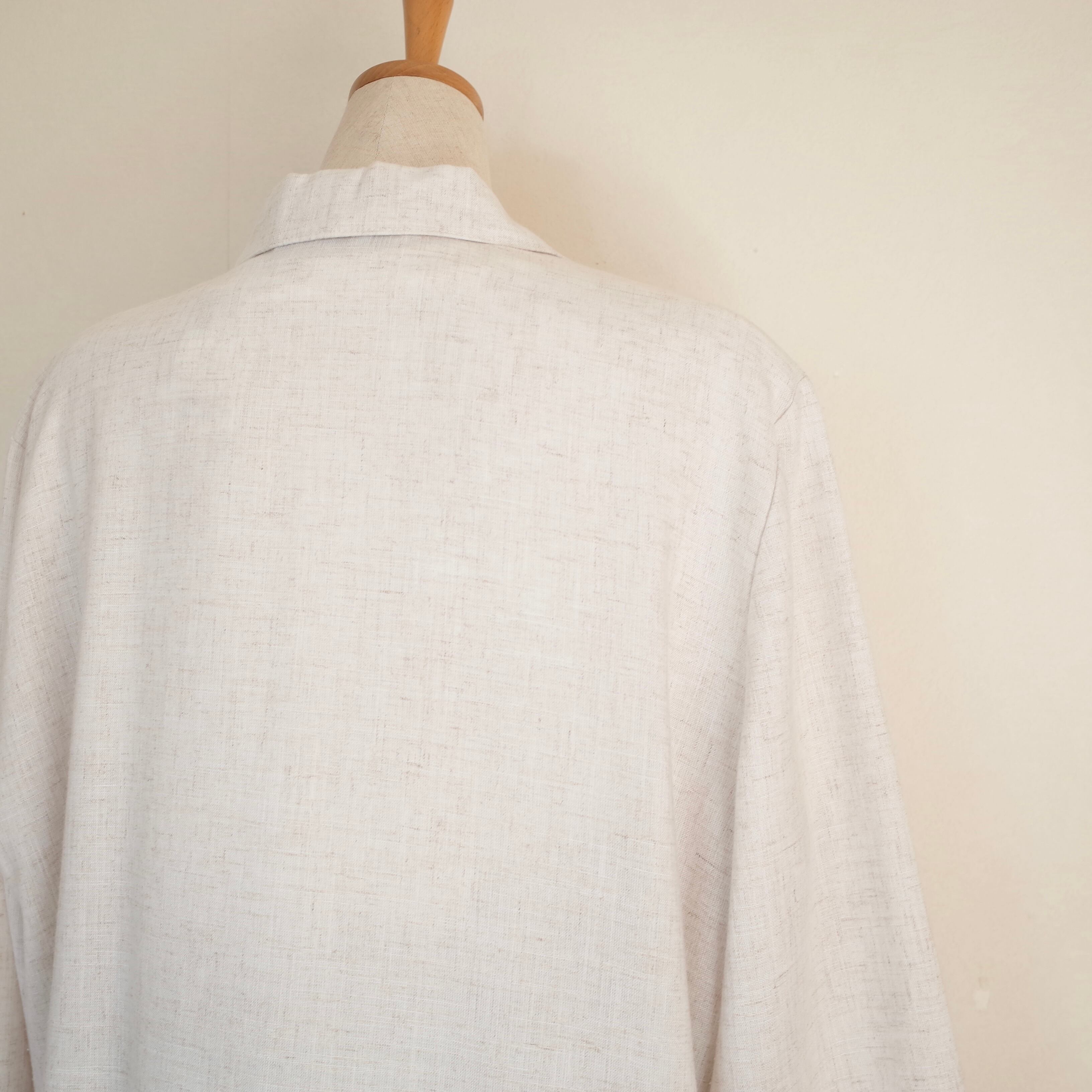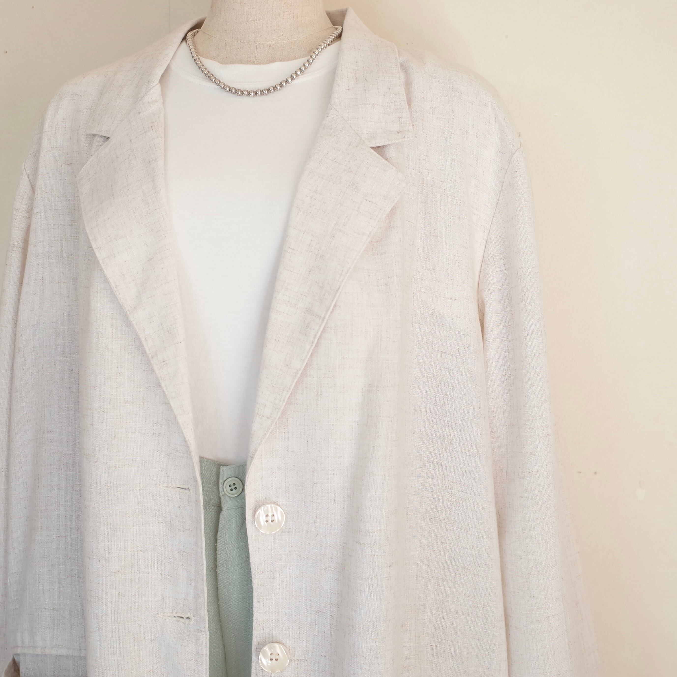 SAG HARBORのビックサイズのテーラードジャケット。裏地のない薄手の生地感で、気軽にばさっと羽織れるイージーな一枚。あえて振り切ったオーバーサイズで、袖をロールアップして着崩してほしいジャケットです。パンツスタイルはもちろん、ロングスカートやワンピースともバランスの良いジャケットです。