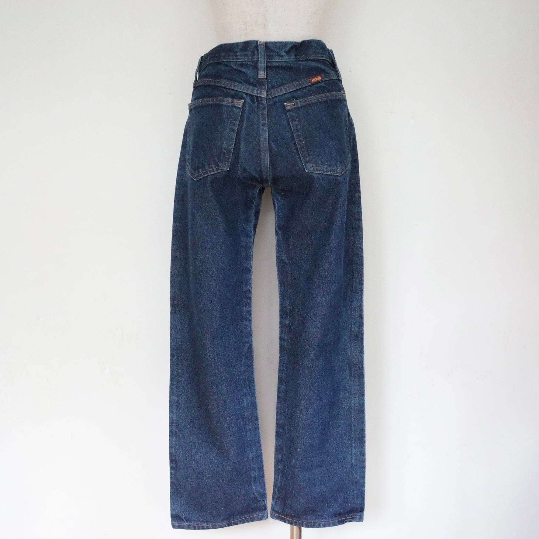 Wranglerのセカンドライン''RUSTLER''のデニムパンツ。股上は深めのストレートレングスで、細すぎず、太すぎずな絶妙なシルエット。レングスは長いので折り返しても可愛く好みの長さにカットしても。まだまだしっかりブルーが残っている、育て甲斐ある一本です。