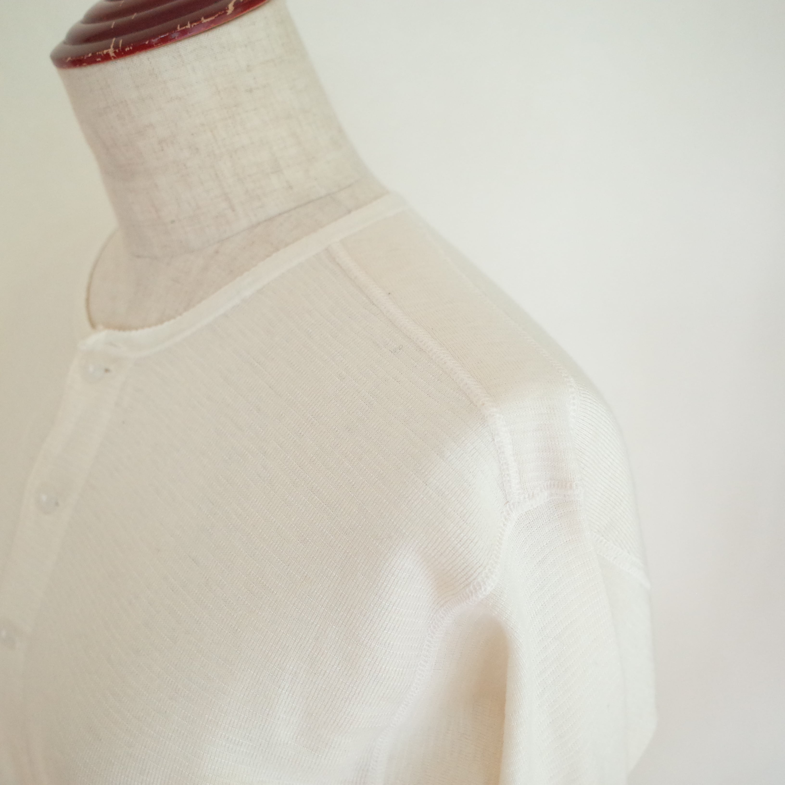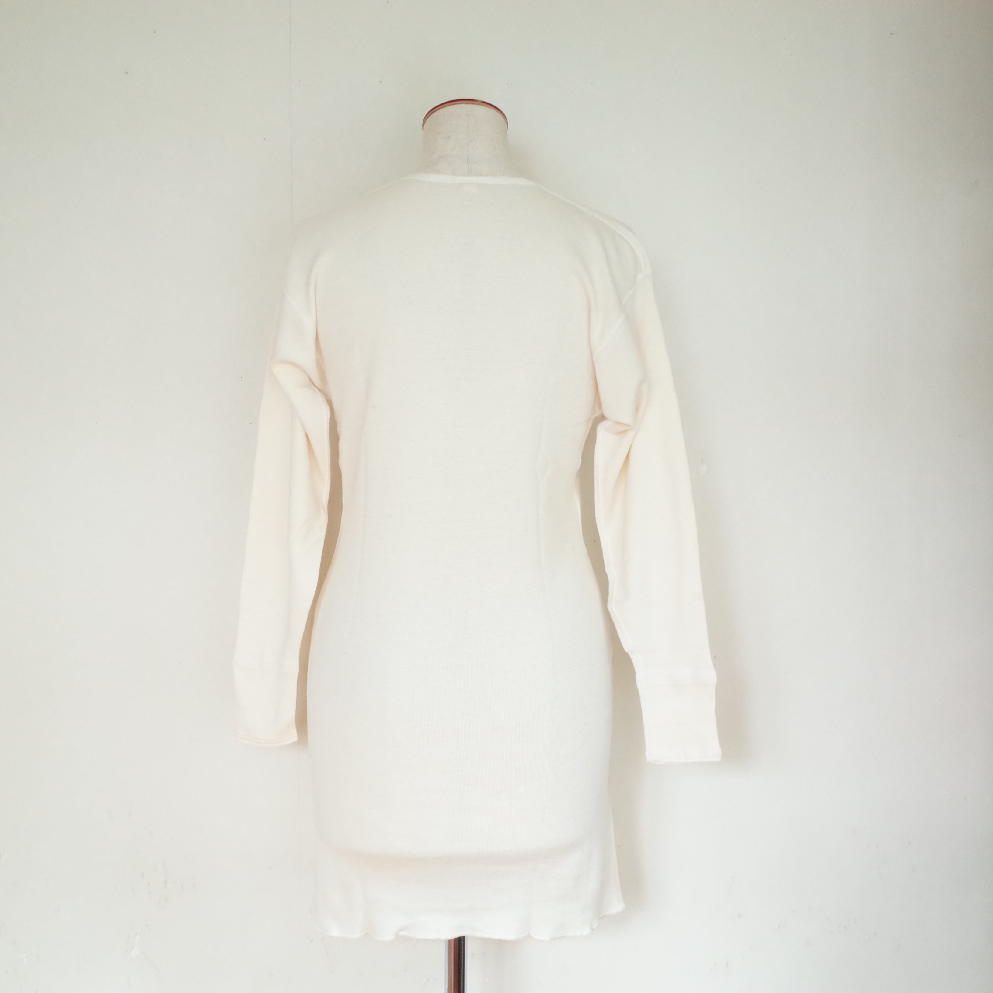 ヴィンテージのアンダーシャツ。伸縮性があり、インナーとしても使い勝手の良い一枚。お尻がすっぽり隠れる長めの丈なので、スウェットやニットの下からチラ見せしたり、ジャケットスタイルのレイヤーとしても活躍してくれます◎