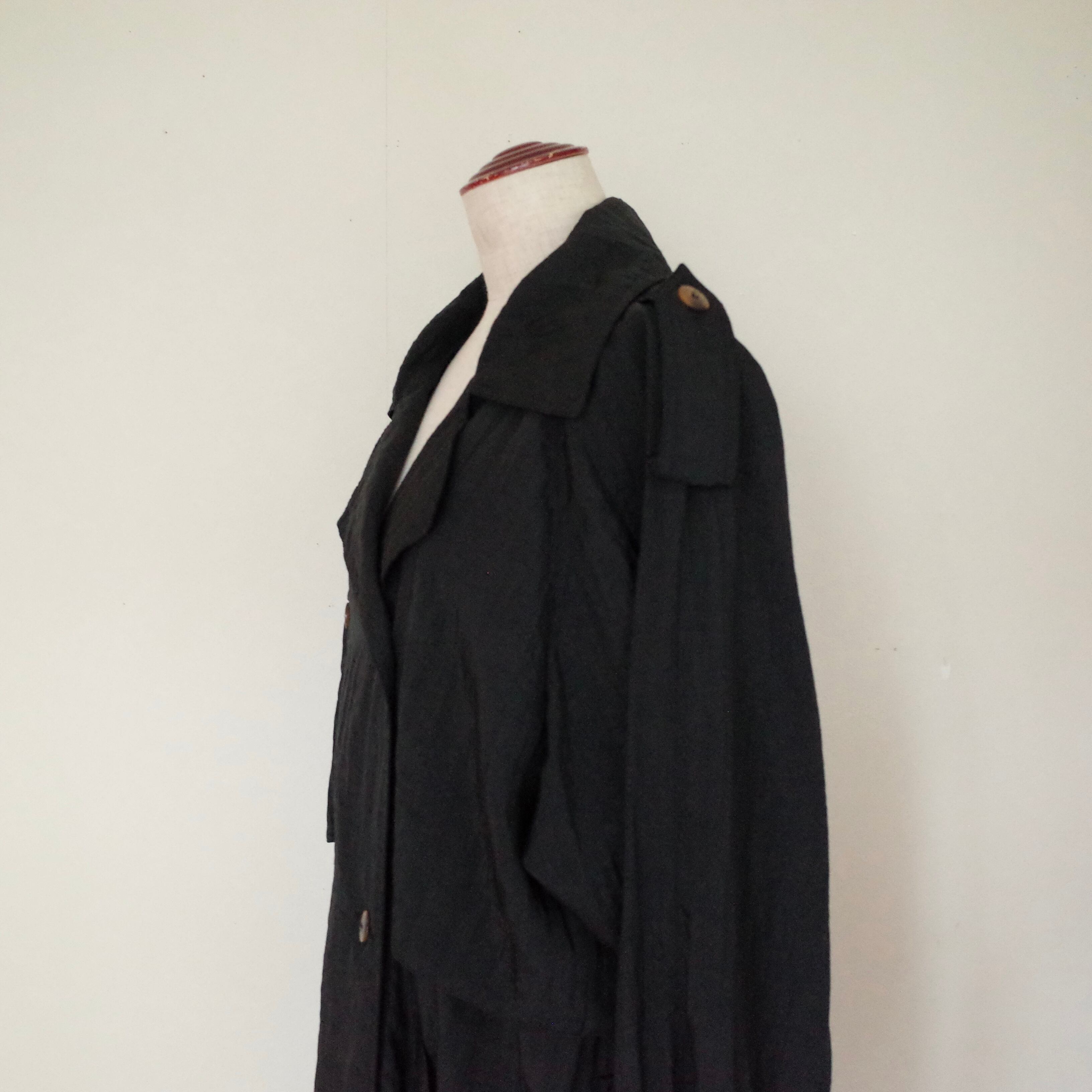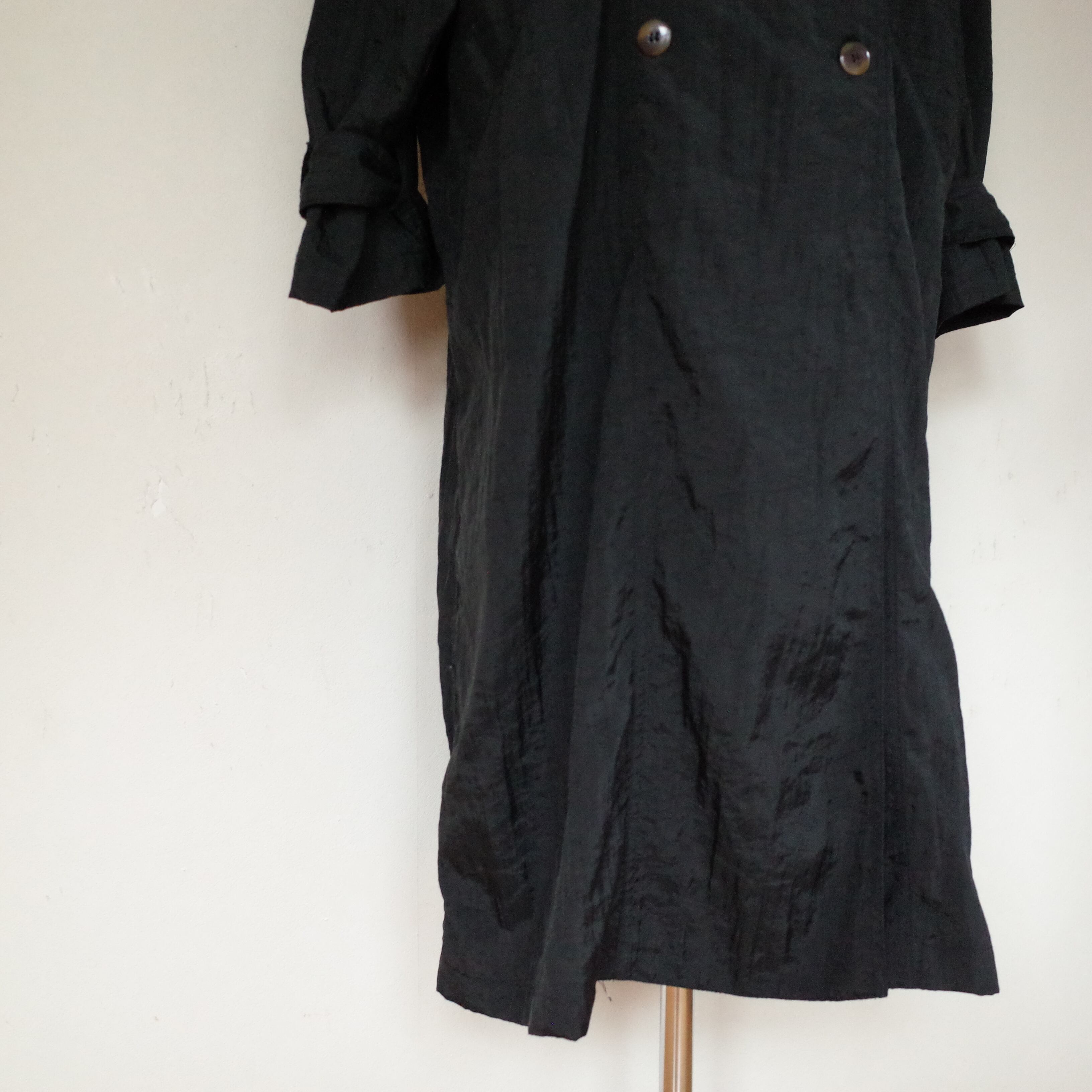 WINCHのトレンチコート。ナイロン製で、シワ加工が施された一枚。ロング丈で雰囲気あるコートです。ラグランスリーブでアームもゆったりしているので厚手のニットの上からも羽織ることが出来、長いシーズンで活躍してくれます。ベルトが無いので手持ちのベルトでウエストマークするのも素敵です。どんなスタイルにも取り入れやすく、長く愛用出来るアウターです。