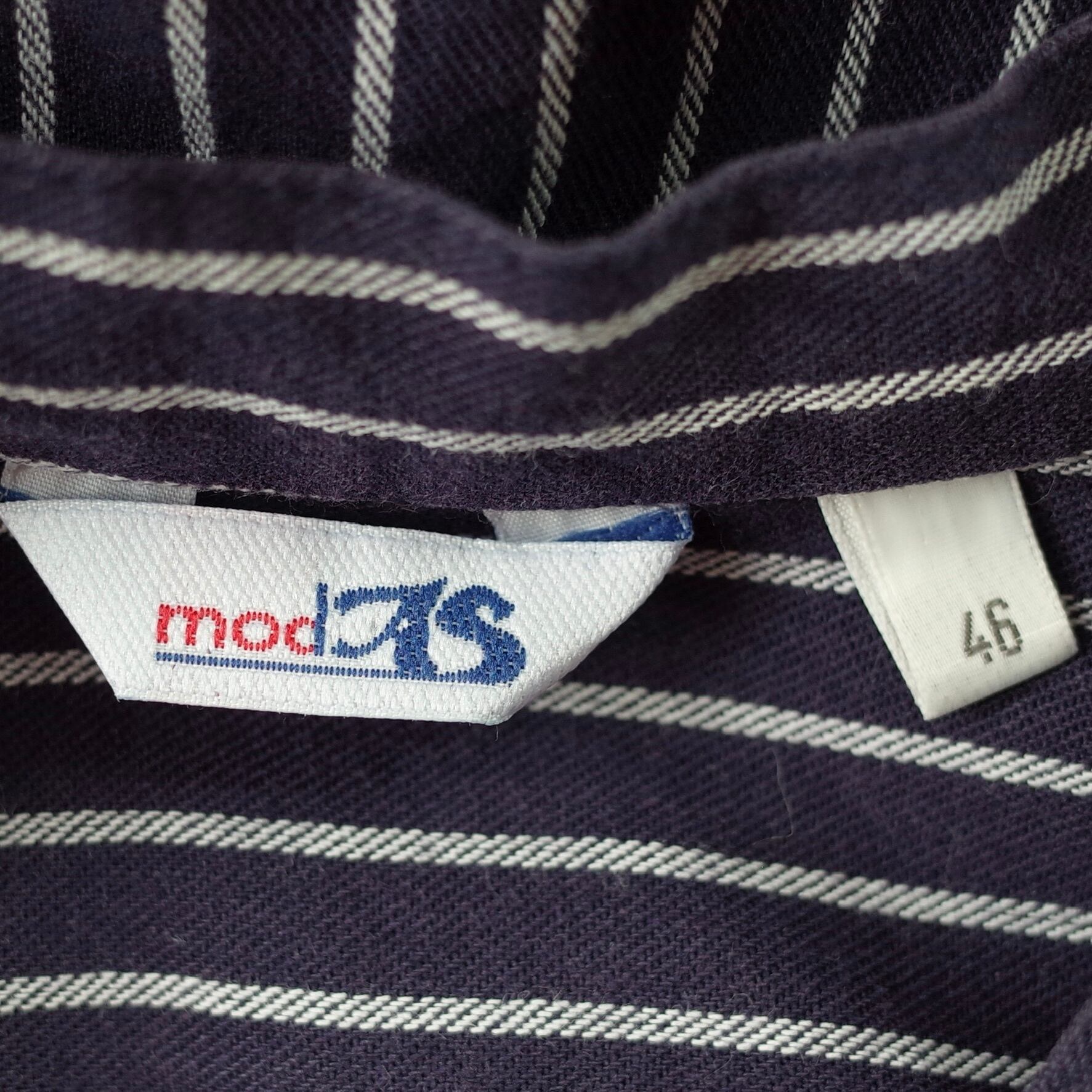 mod ASはドイツ北部で、主に海洋関係のワークウェアやデイリーウェアを作るメーカーです。しっかりしたコットン素材のストライプ柄で、プルオーバーデザインがgoodなスモック。ニットの下にレイヤードして、裾を覗かせても◎