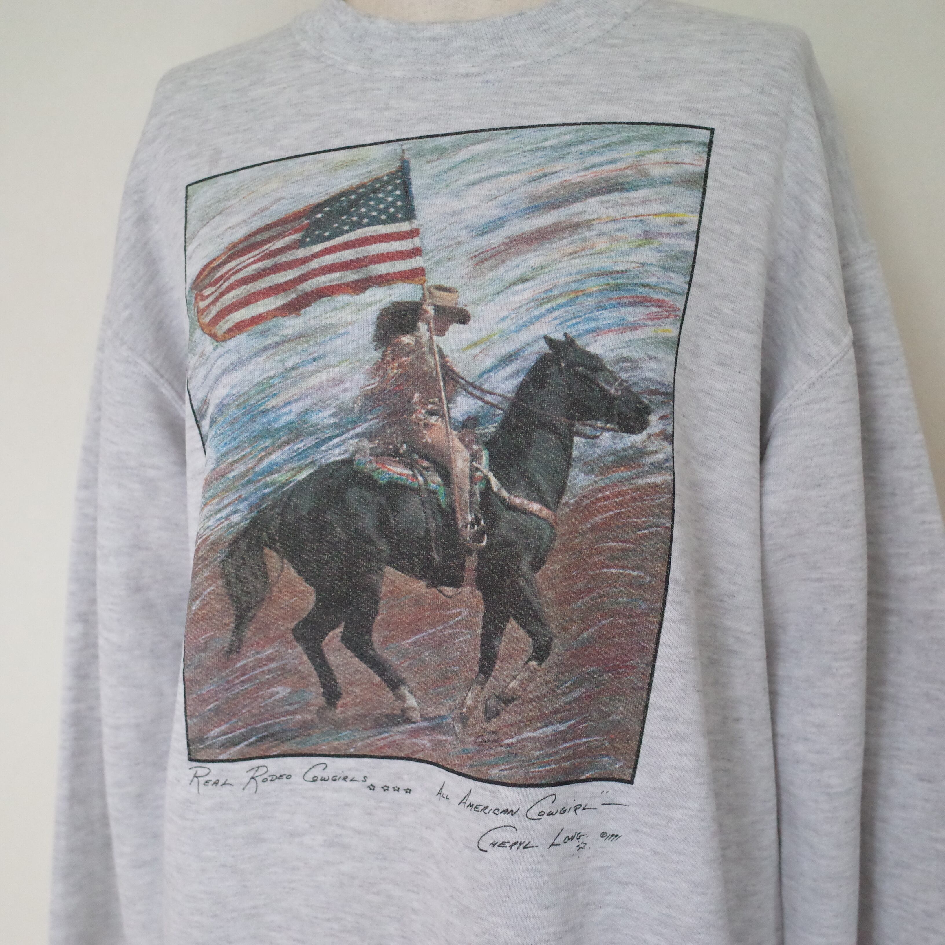 90年代アメリカ製カウガールの絵がプリントされたスウェットです。