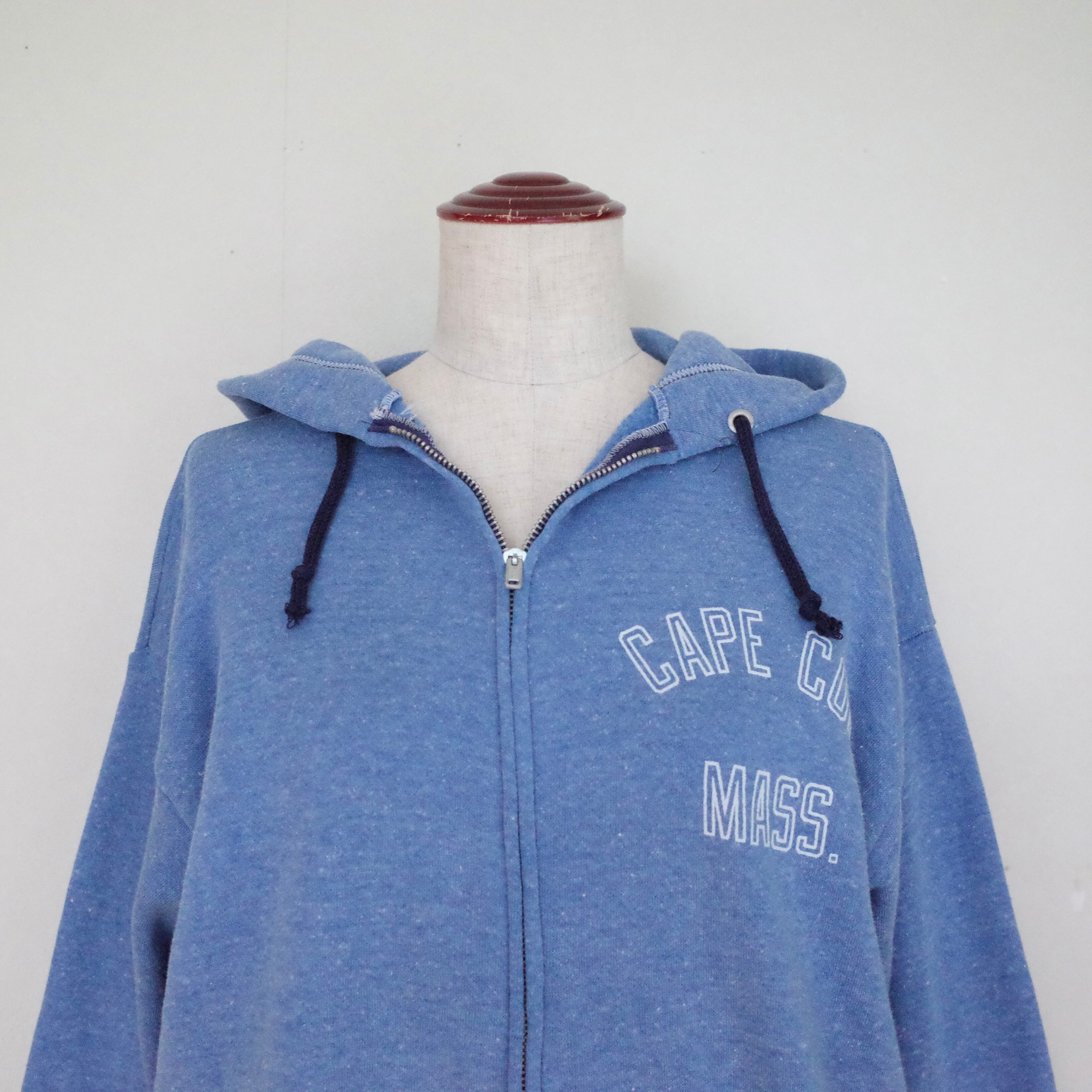 杢ブルーの質感の良い、フルジップパーカー。着込まれた風合いで味があります。現行のものとはひと味もふた味も違う、雰囲気ある一枚です。