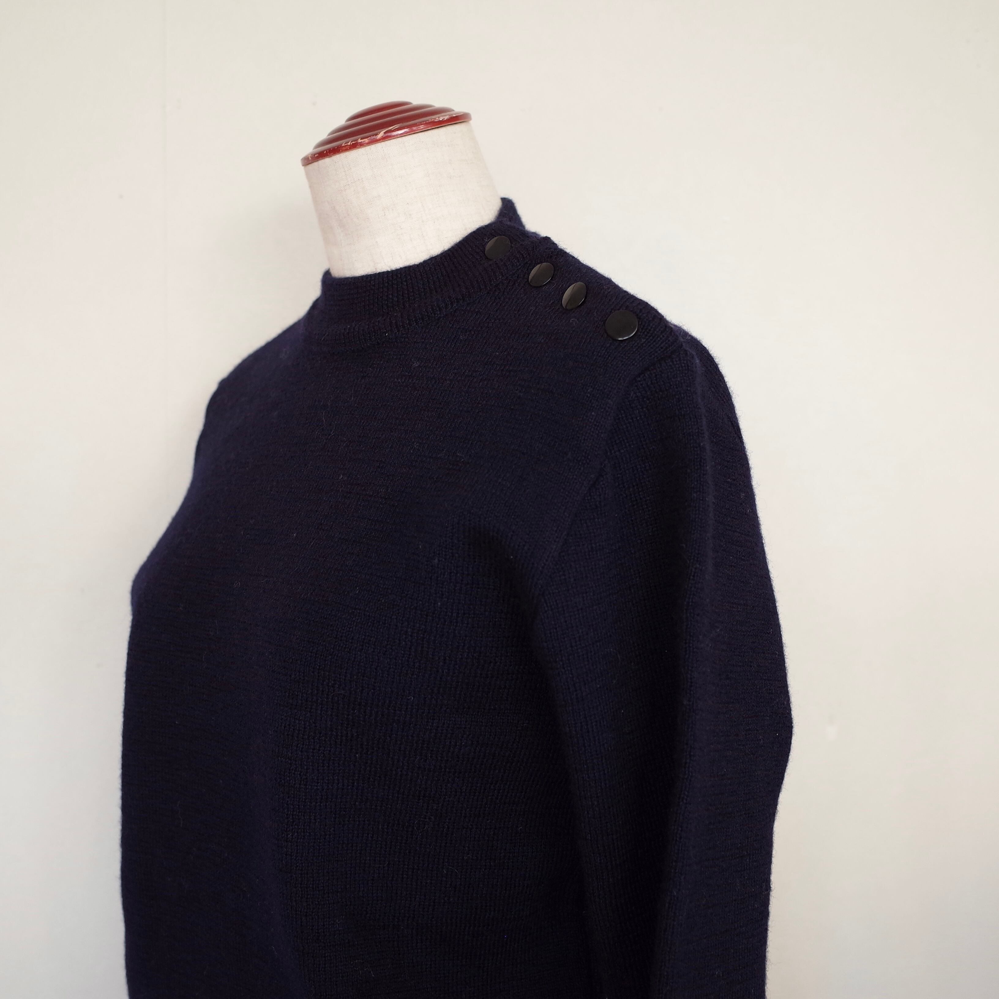 肩のボタンがかわいいユーロミリタリーのセーターです。