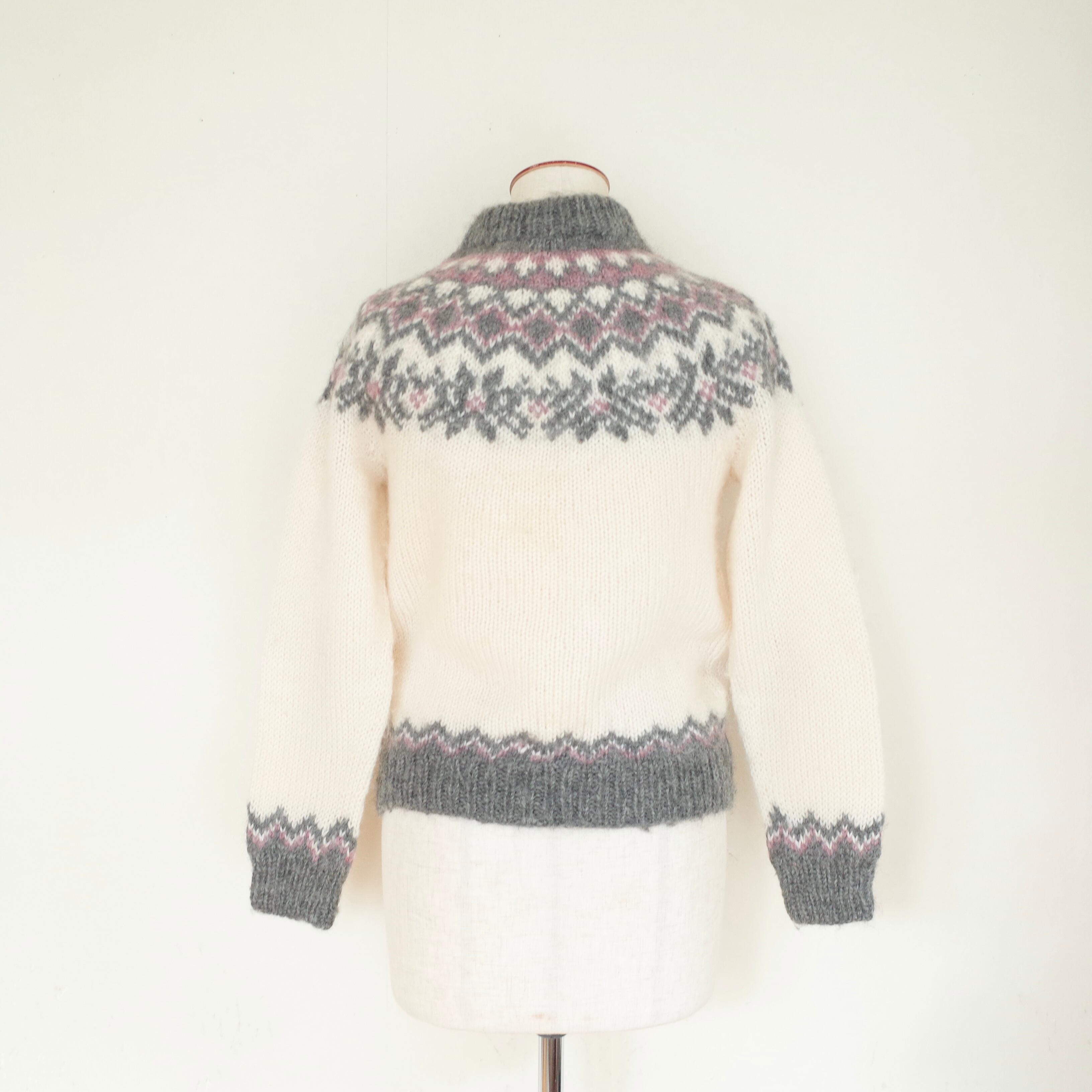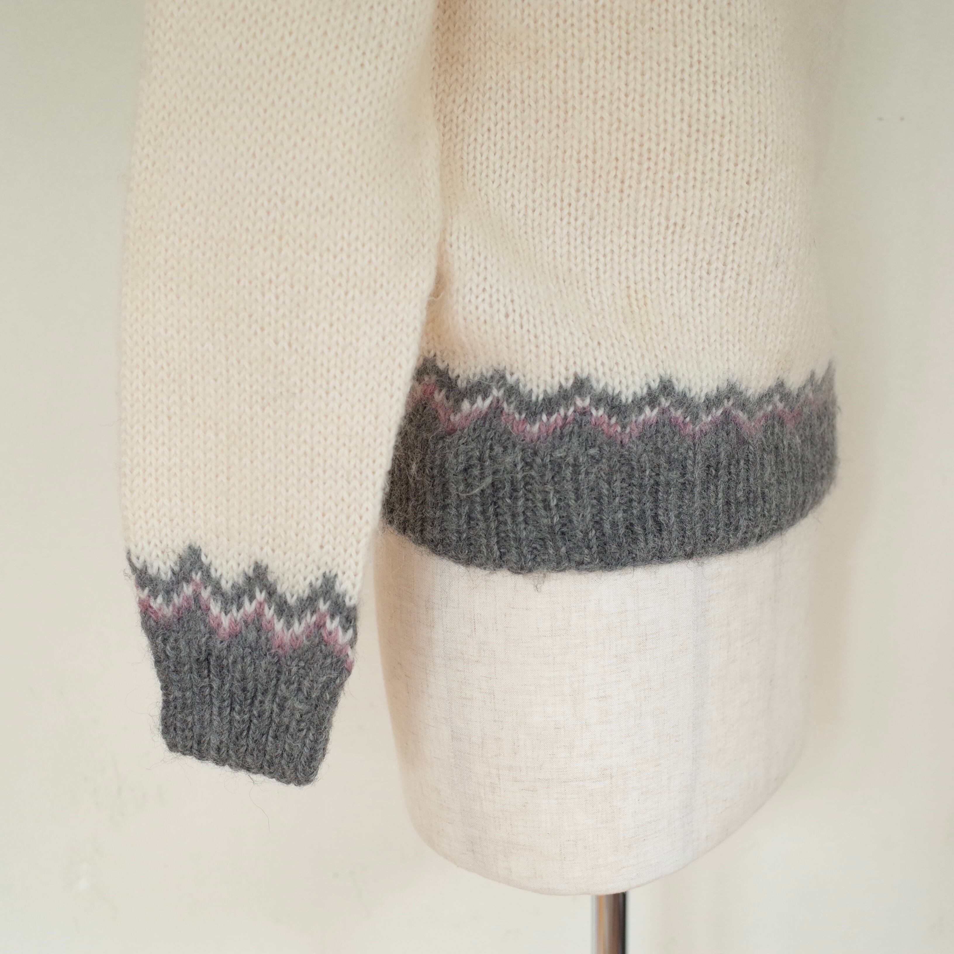 ホワイトカラーにピンクの差し色が可愛いフェアアイル柄セーター。