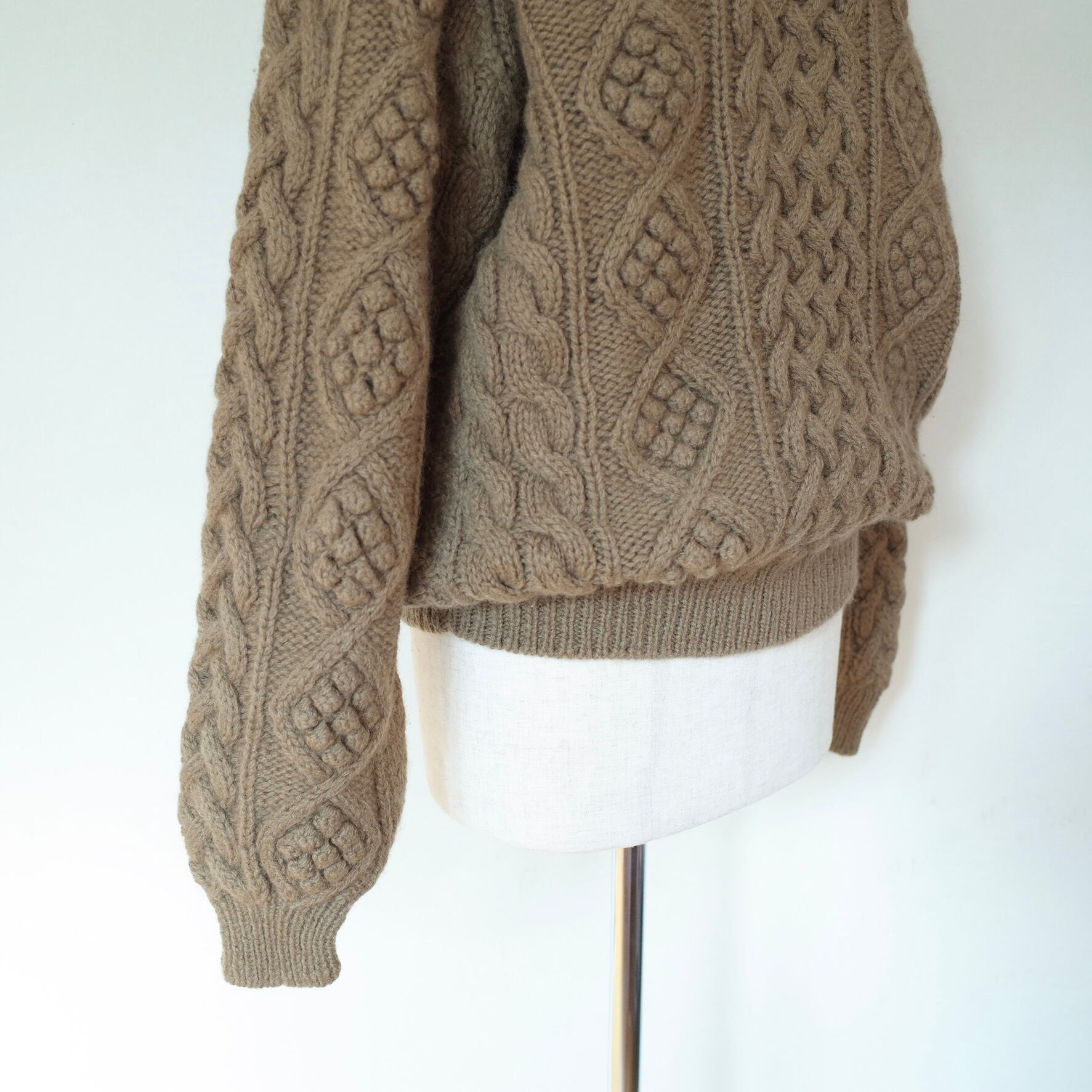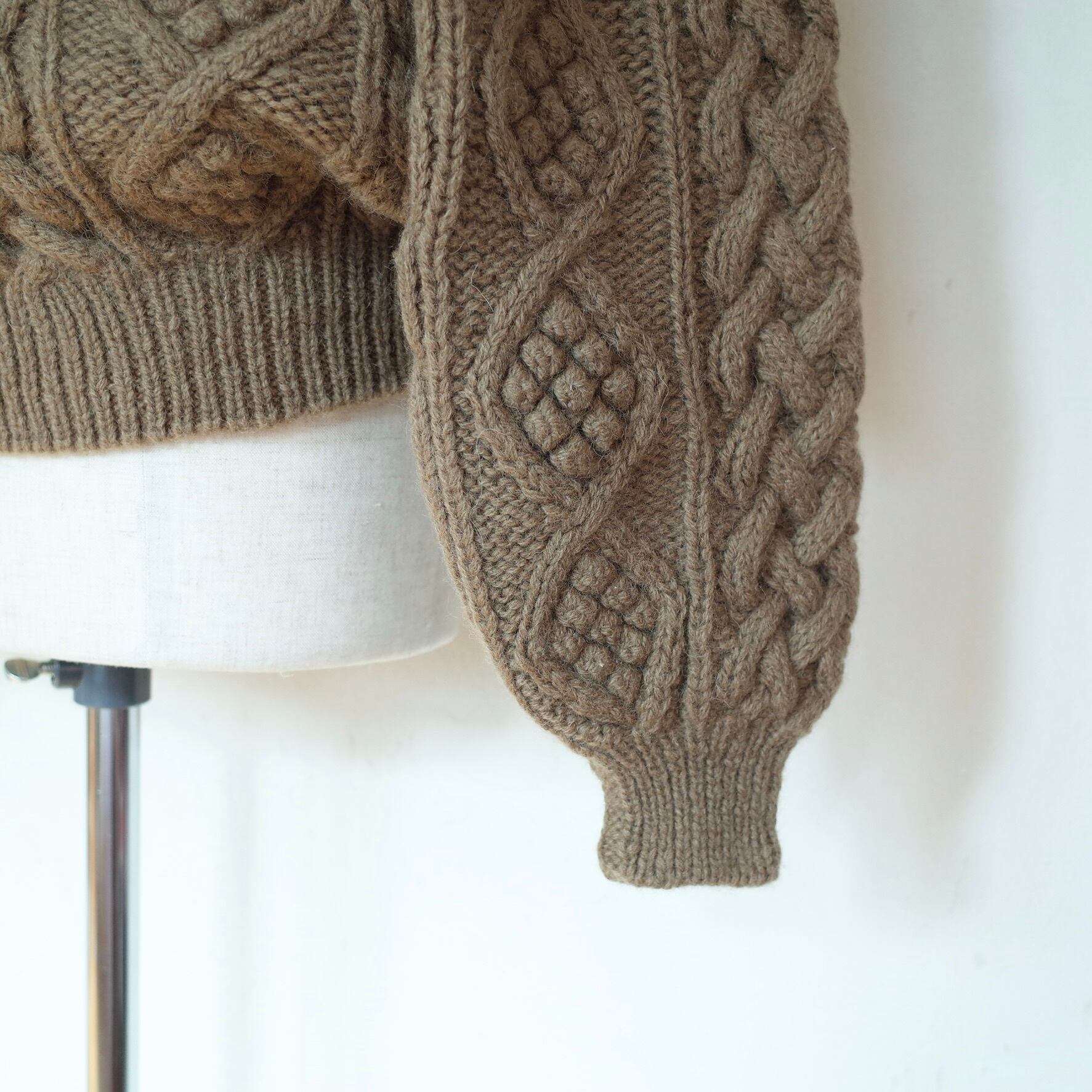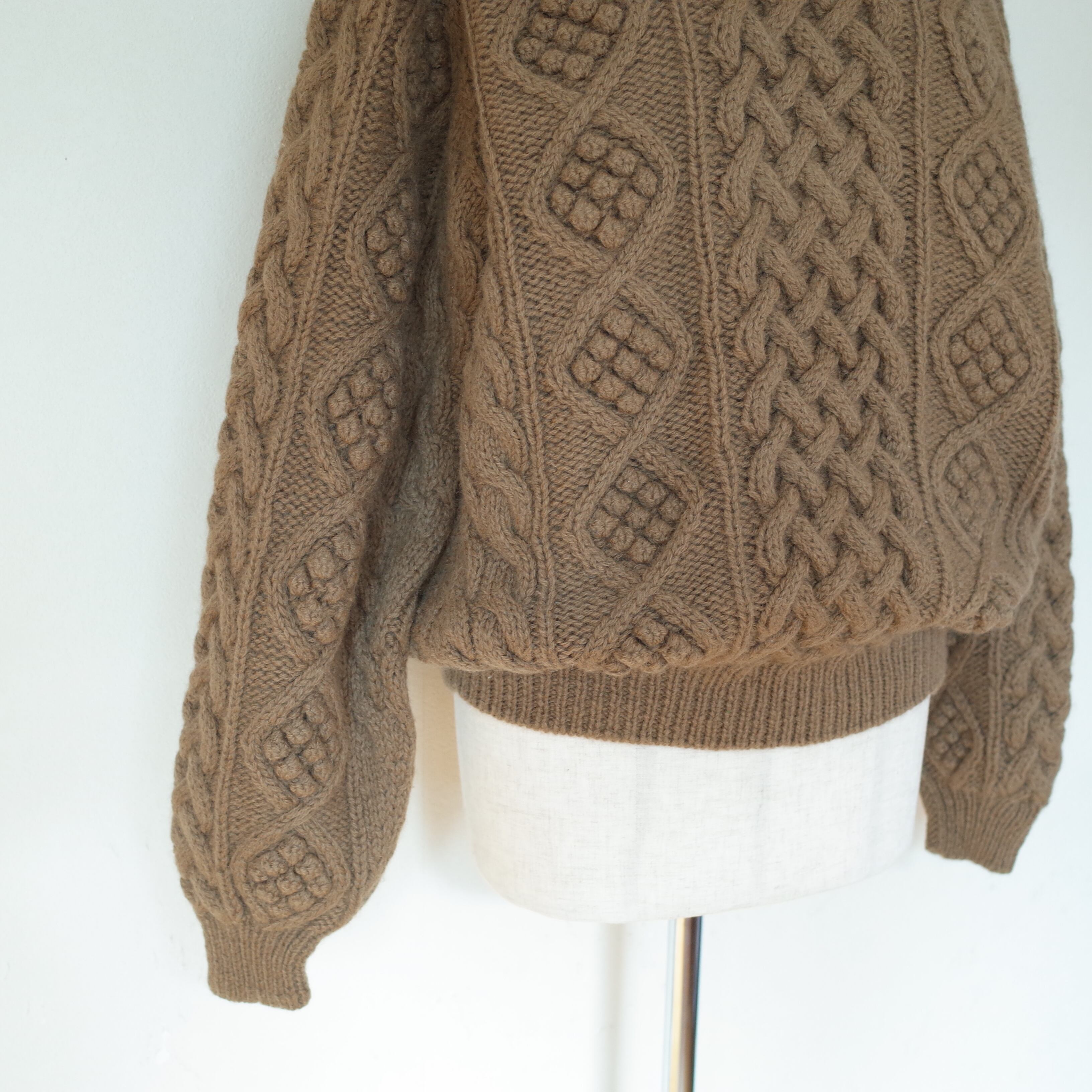 ブラウンカラーがかわいい、フィッシャーマンセーター。編みのバランスもgoodです。