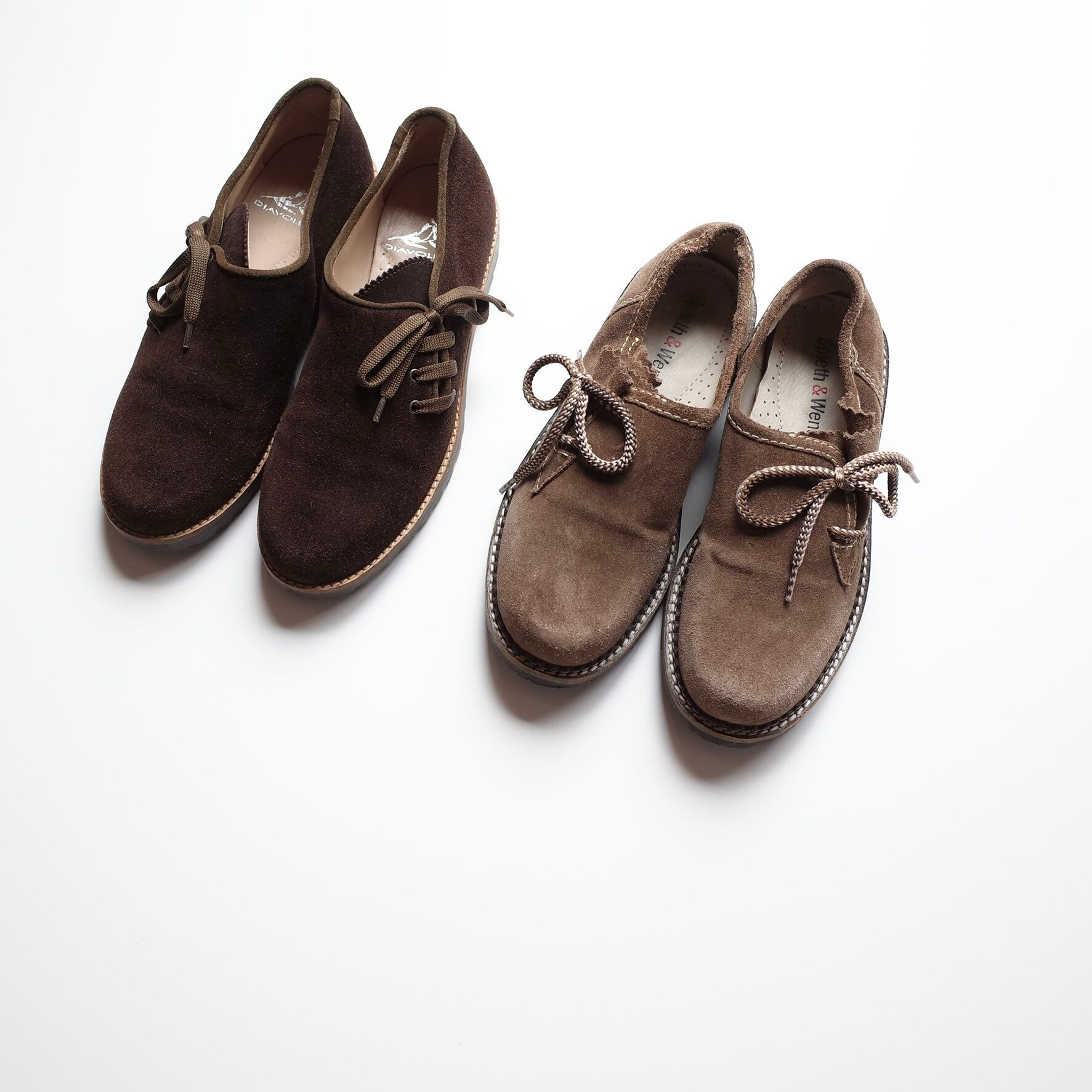 サイドのシューレースホールが特徴的なチロリアンシューズ。伝統的なHaferlshuhe(ハーフェルシューエ)という形の靴で、もともと登山靴として作られていました。パラブーツが採用しているノルウェージャン製法というグリップ力のあるソールで、無骨でありながらもポテッとした愛らしさのある靴です。デニムはもちろん、スラックスにも◎様々なスタイリングに対応する、伝統的なシューズです。