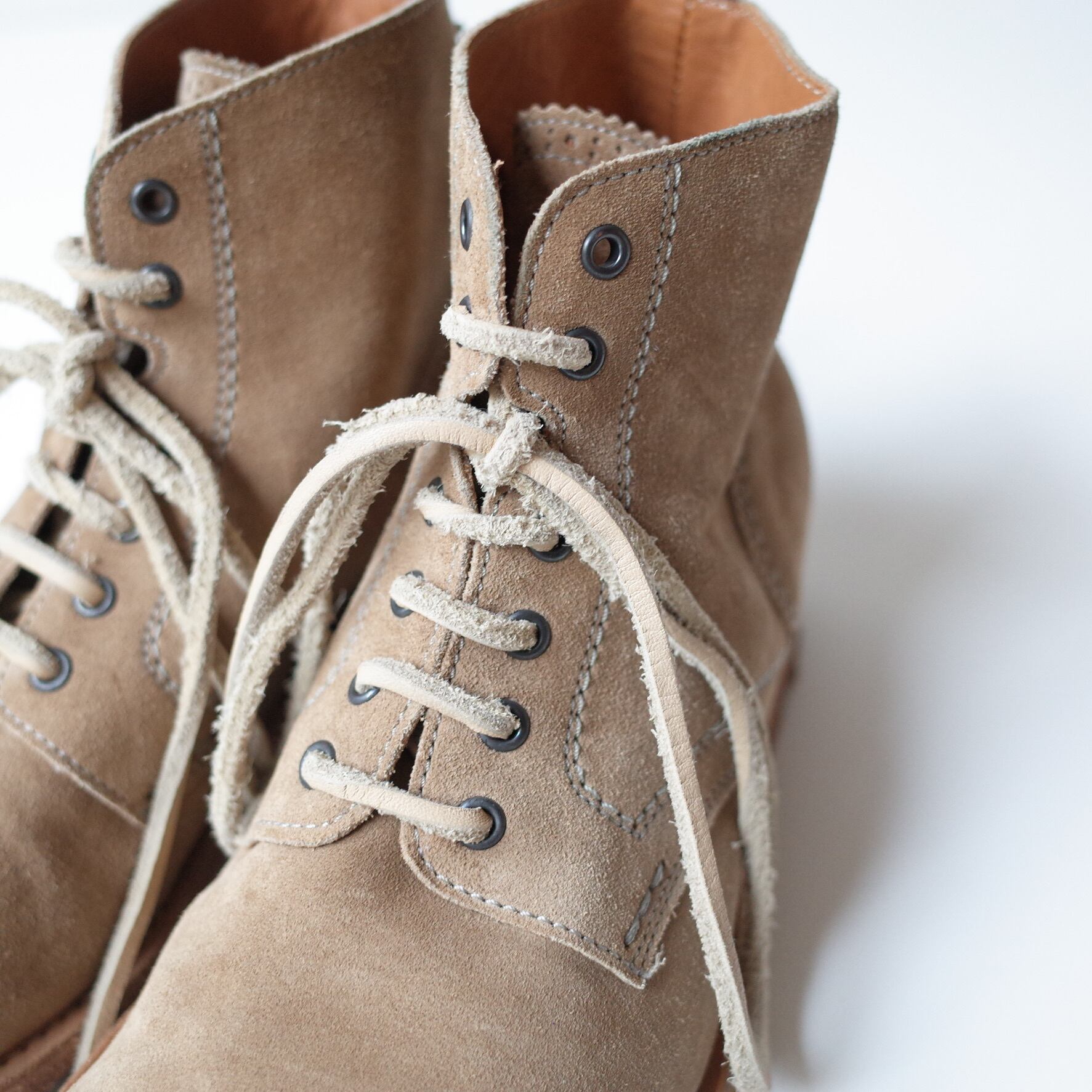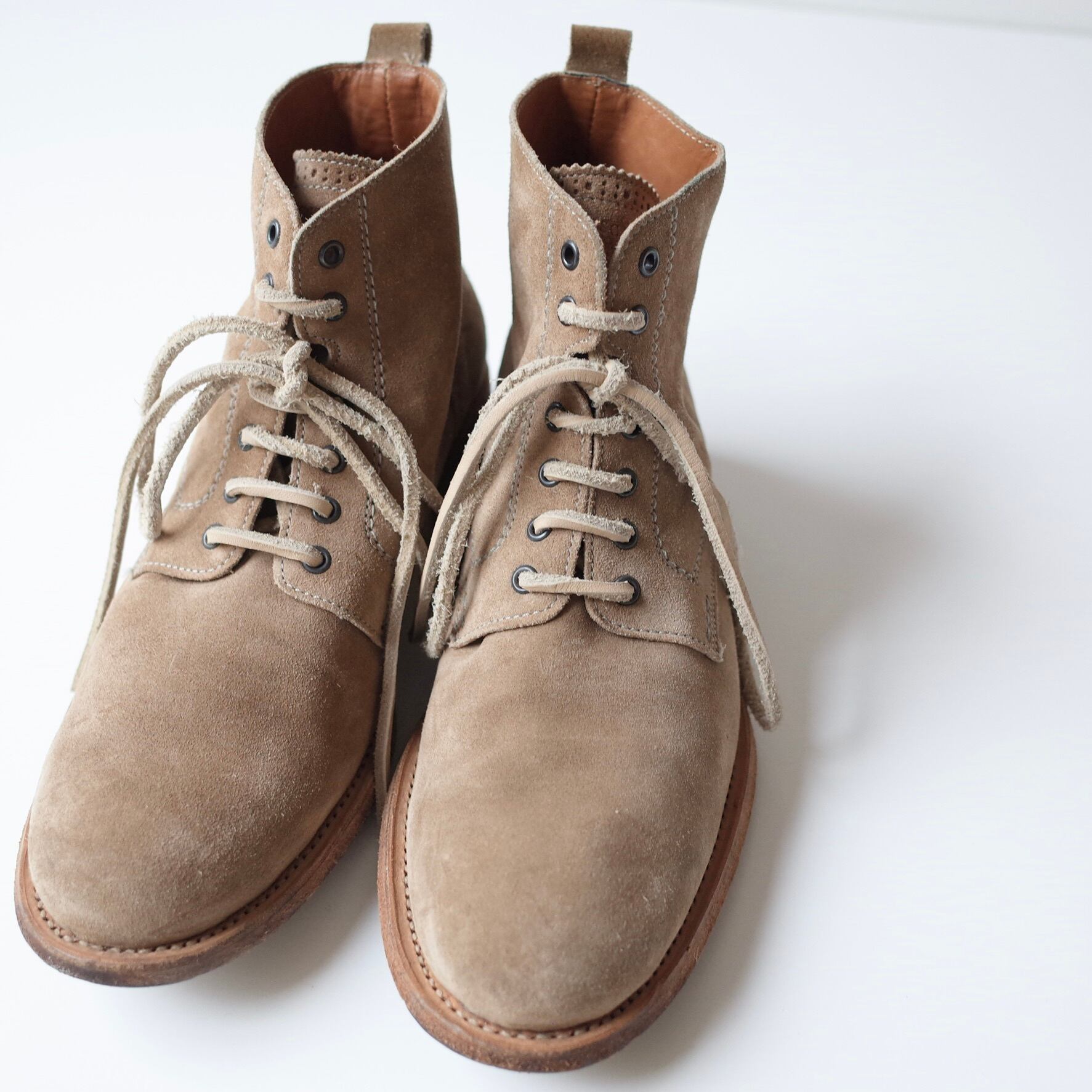 レースアップのショートブーツ。レザーのシューレースが雰囲気ある一足。フレアのパンツやロングスカートとの合わせもおすすめです。