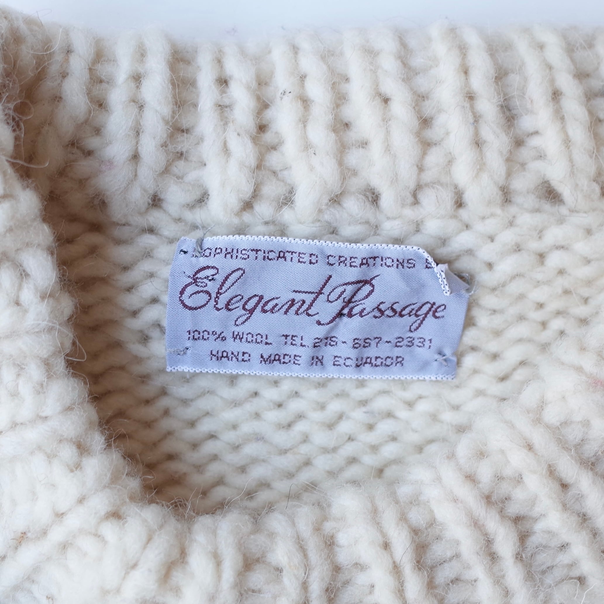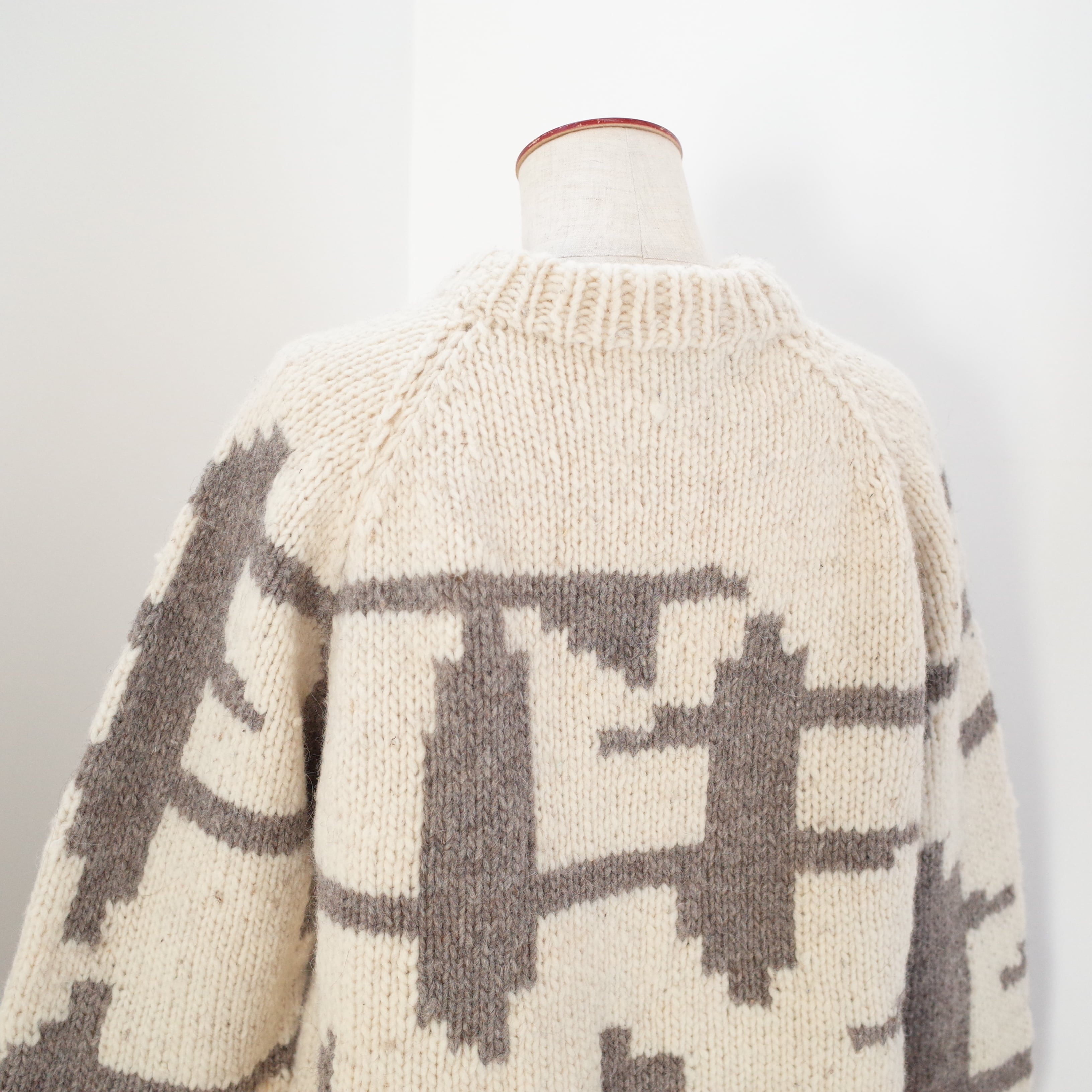 エクアドル製のハンドニットセーター。大きめサイズのざっくりとしたシルエットです。ホワイト地にグレーのパターンが可愛い一枚。下にボタンダウンのシャツやタートルネックのカットソーをレイヤードしても◎